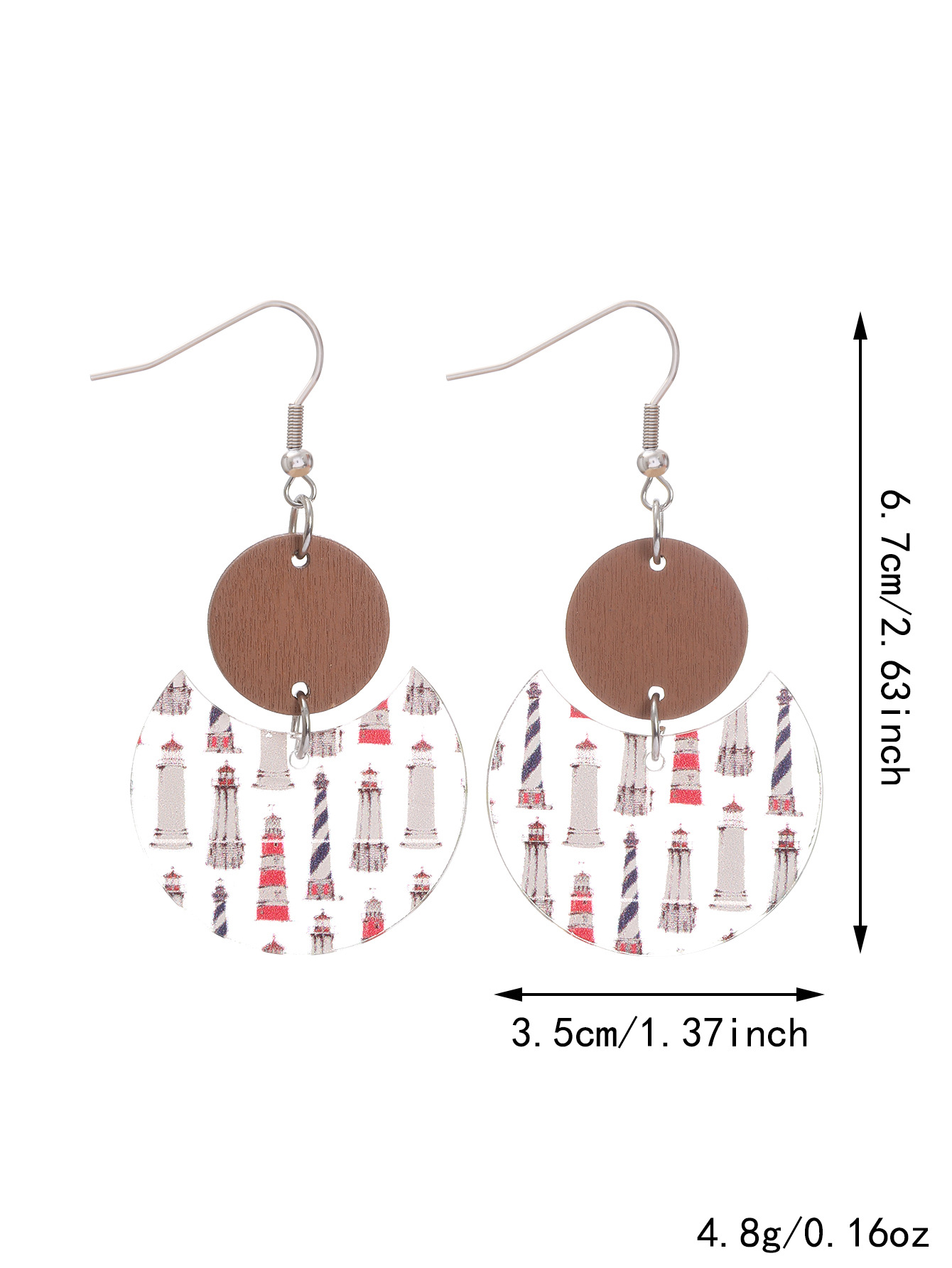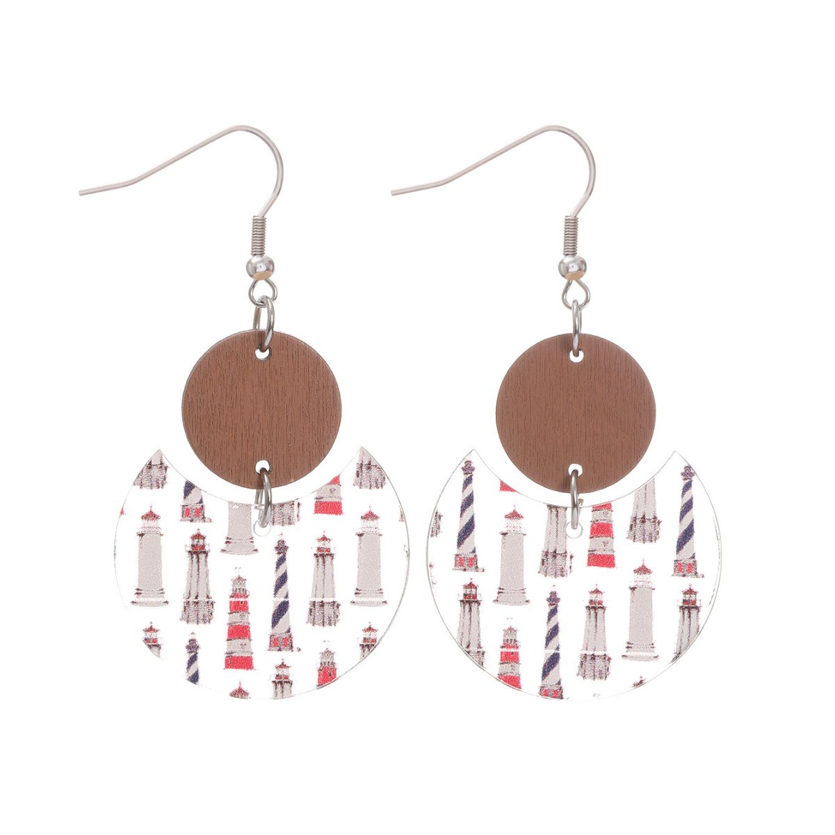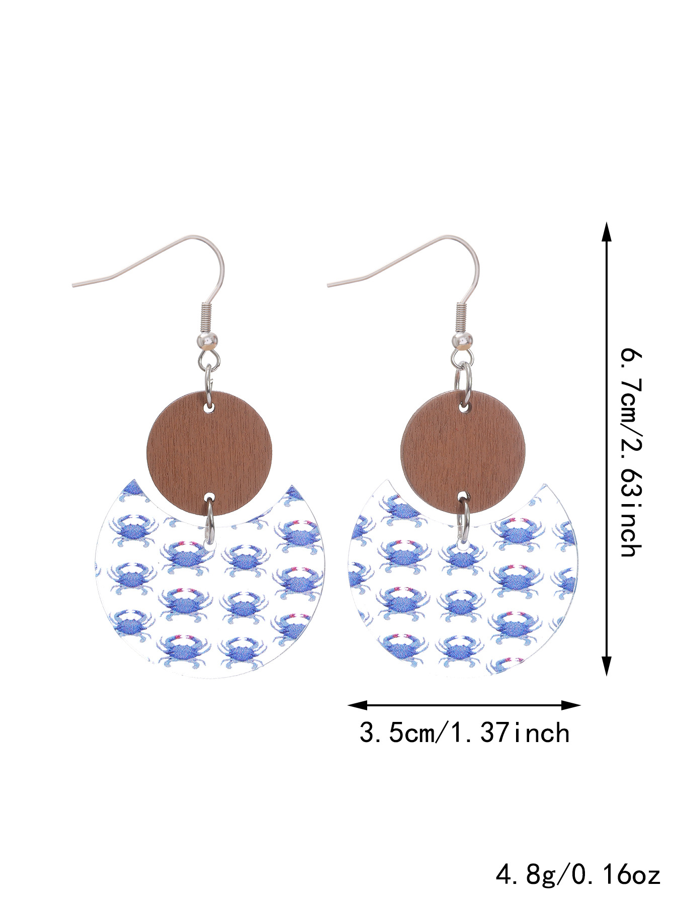新款海边灯塔螃蟹夏日度假风亚克力拼接木片耳环清晰月牙耳饰耳坠