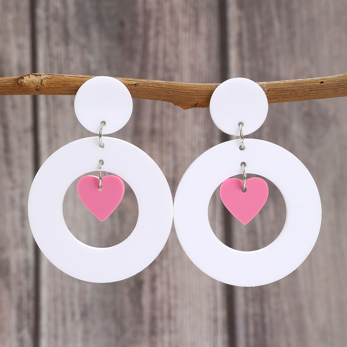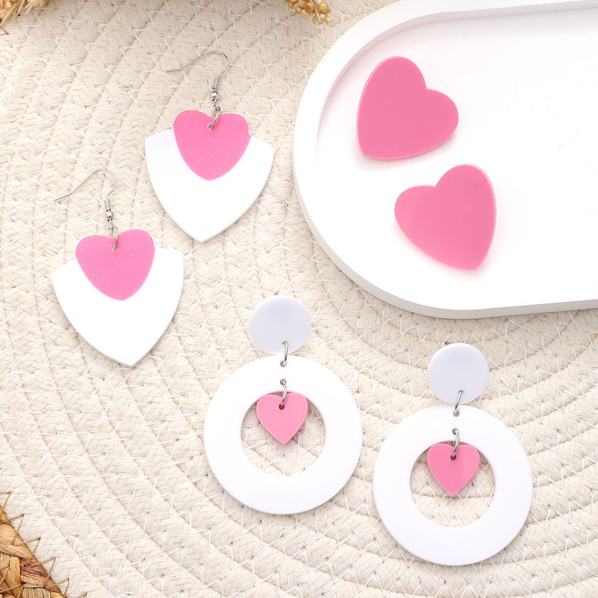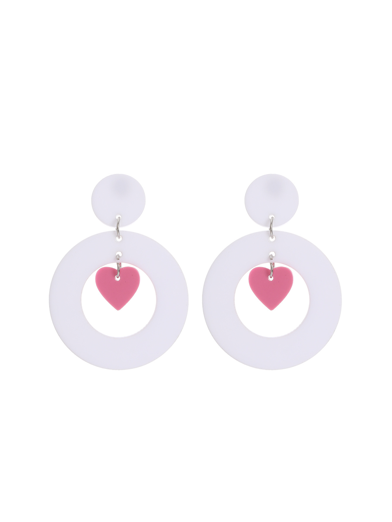 新款I情人节撞色夸张可爱时尚爱心镂空白色陶泥质感亚克力耳环