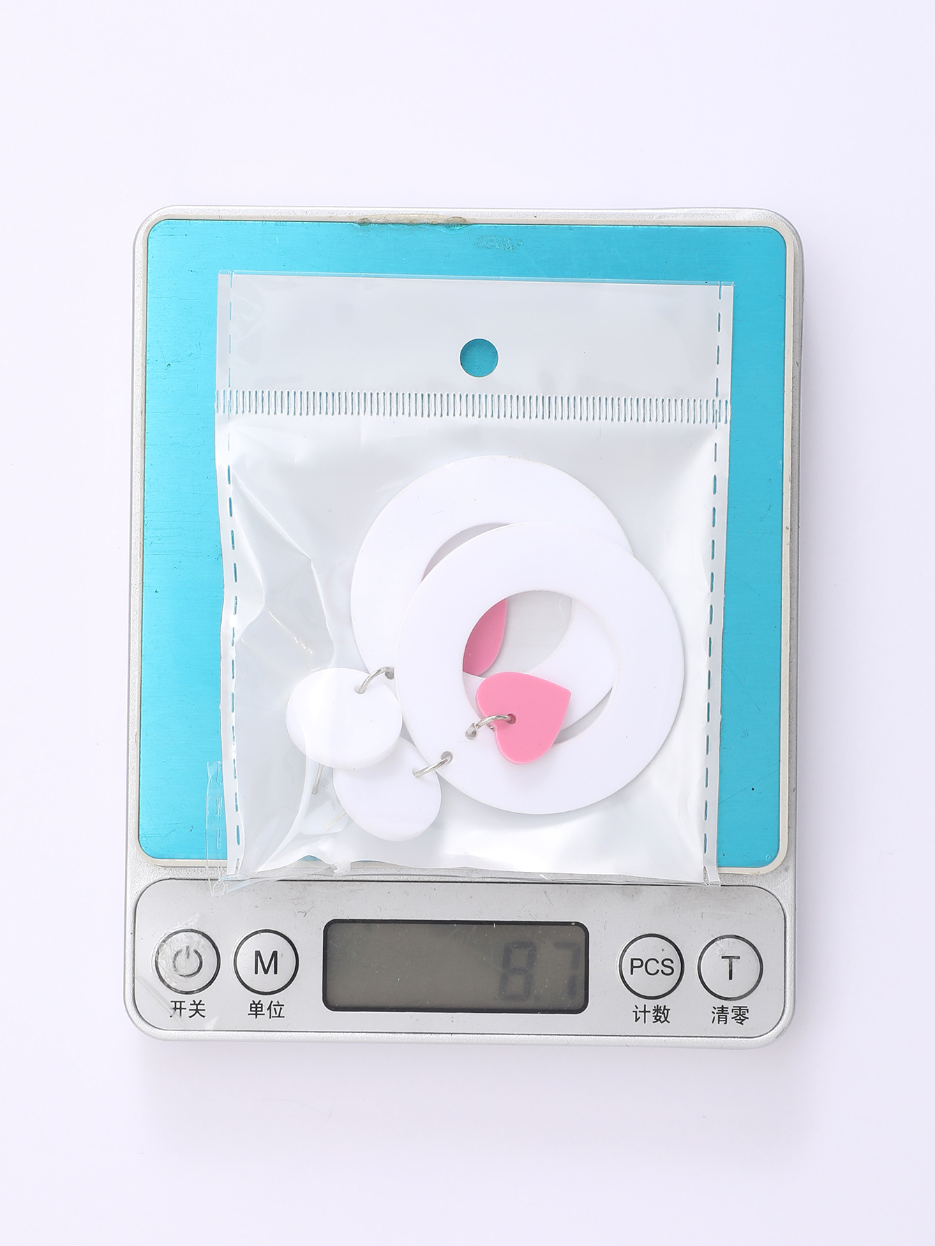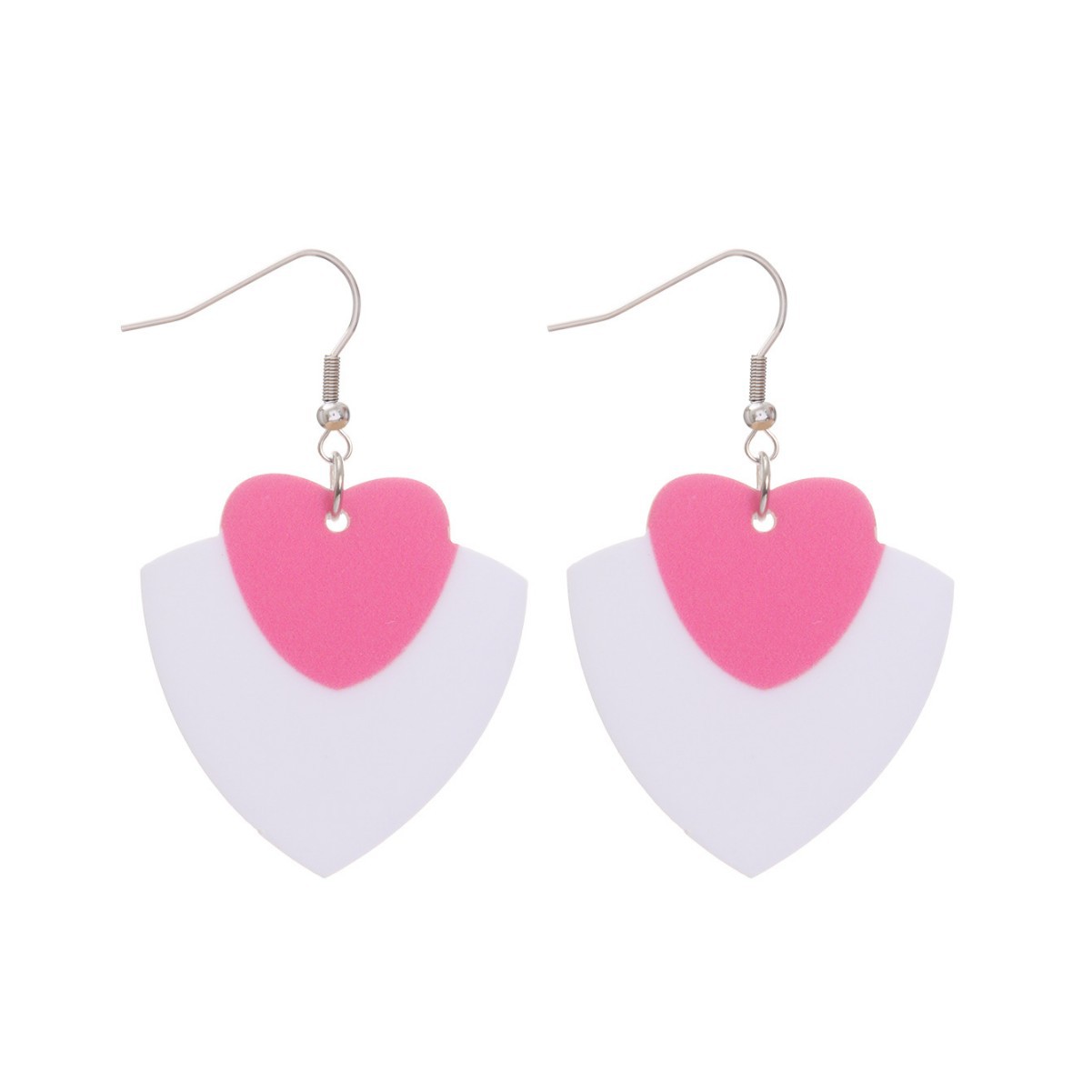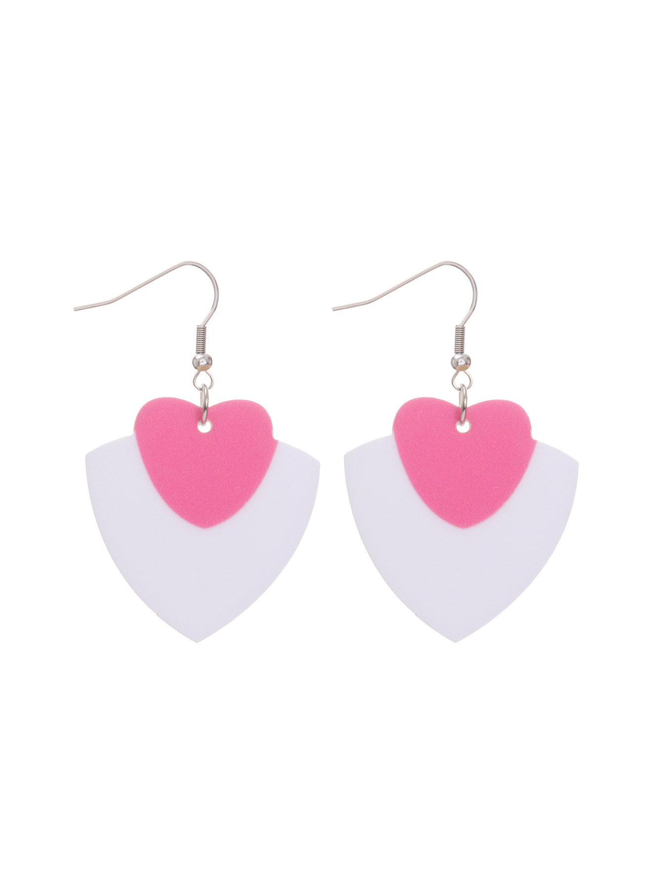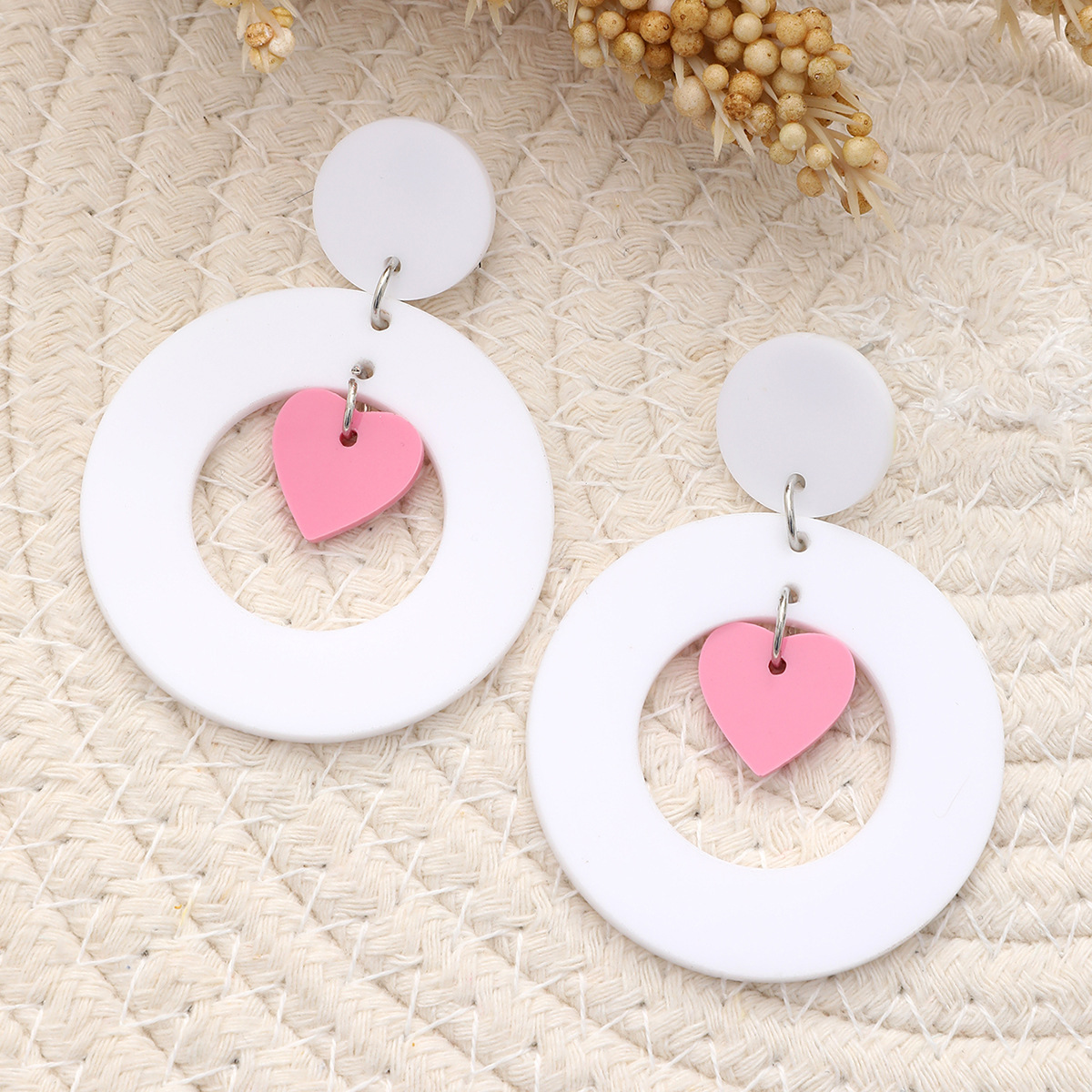新款I情人节撞色夸张可爱时尚爱心镂空白色陶泥质感亚克力耳环