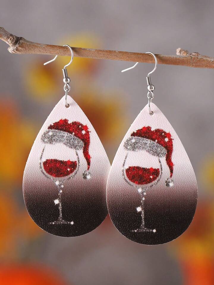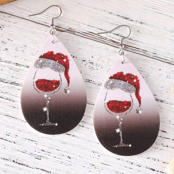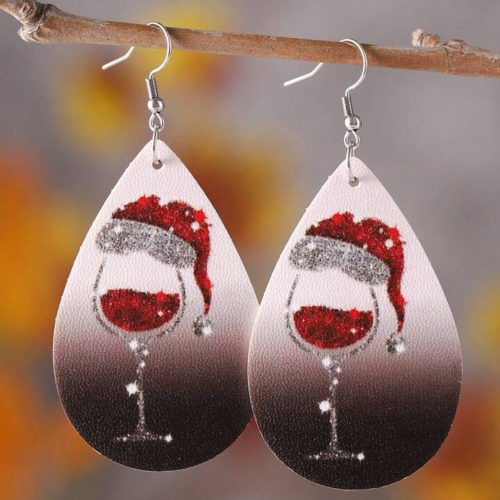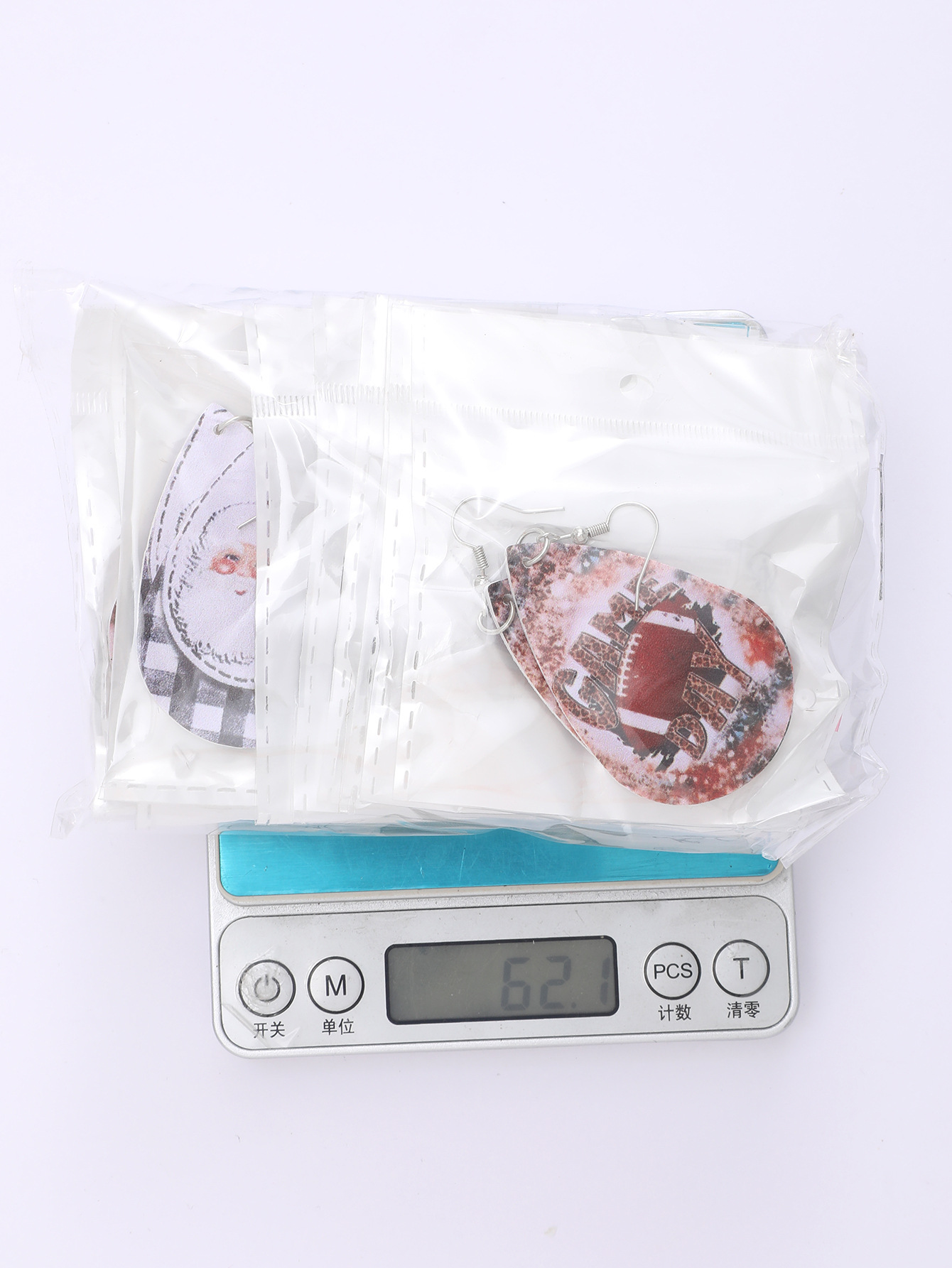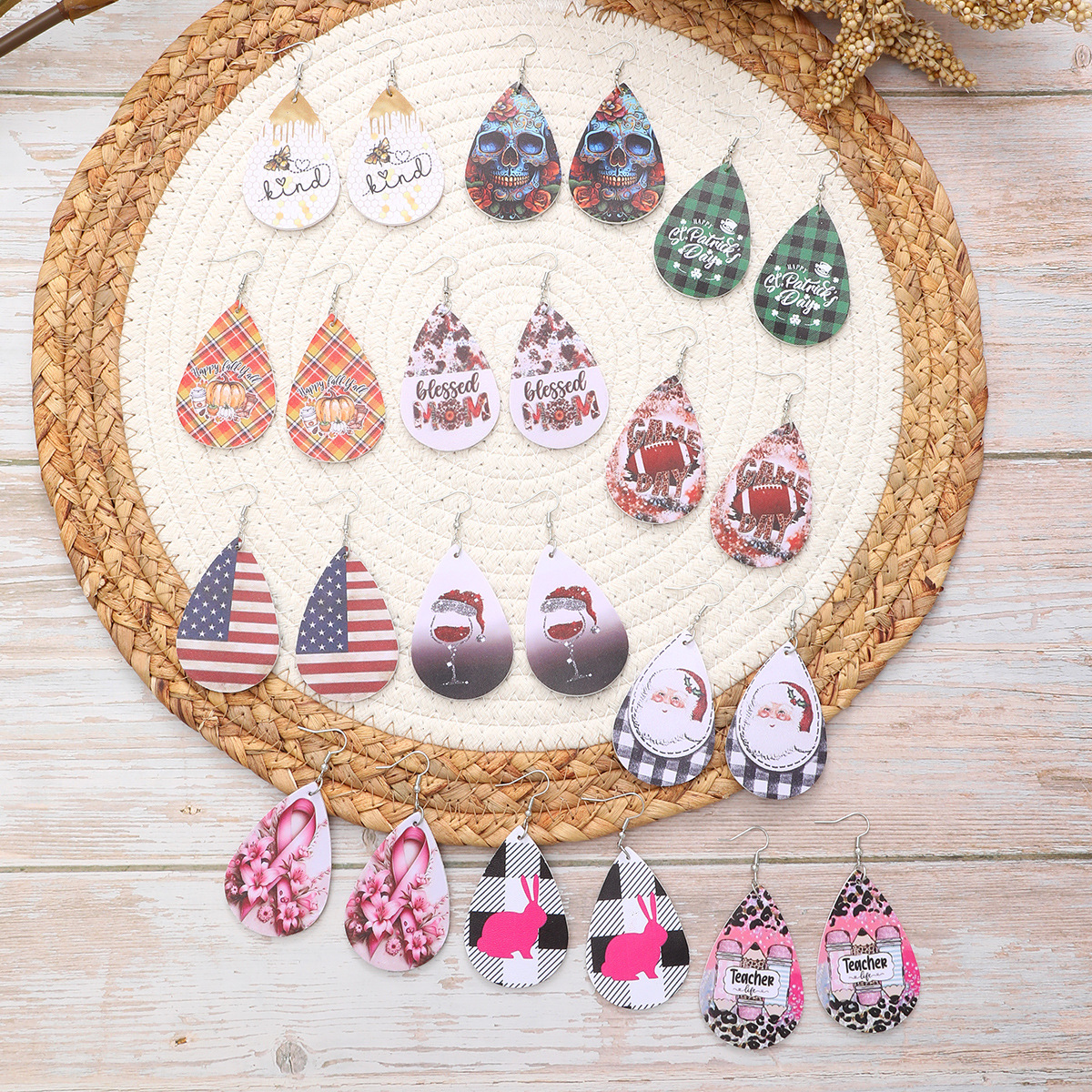 新款圣诞节万圣节独立日水滴形皮革耳环骷髅头红酒杯橄榄球耳坠