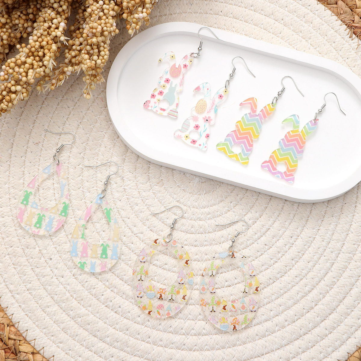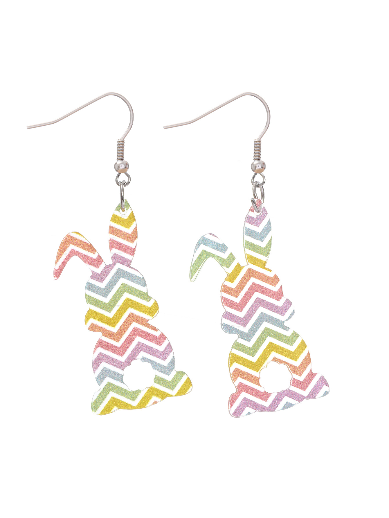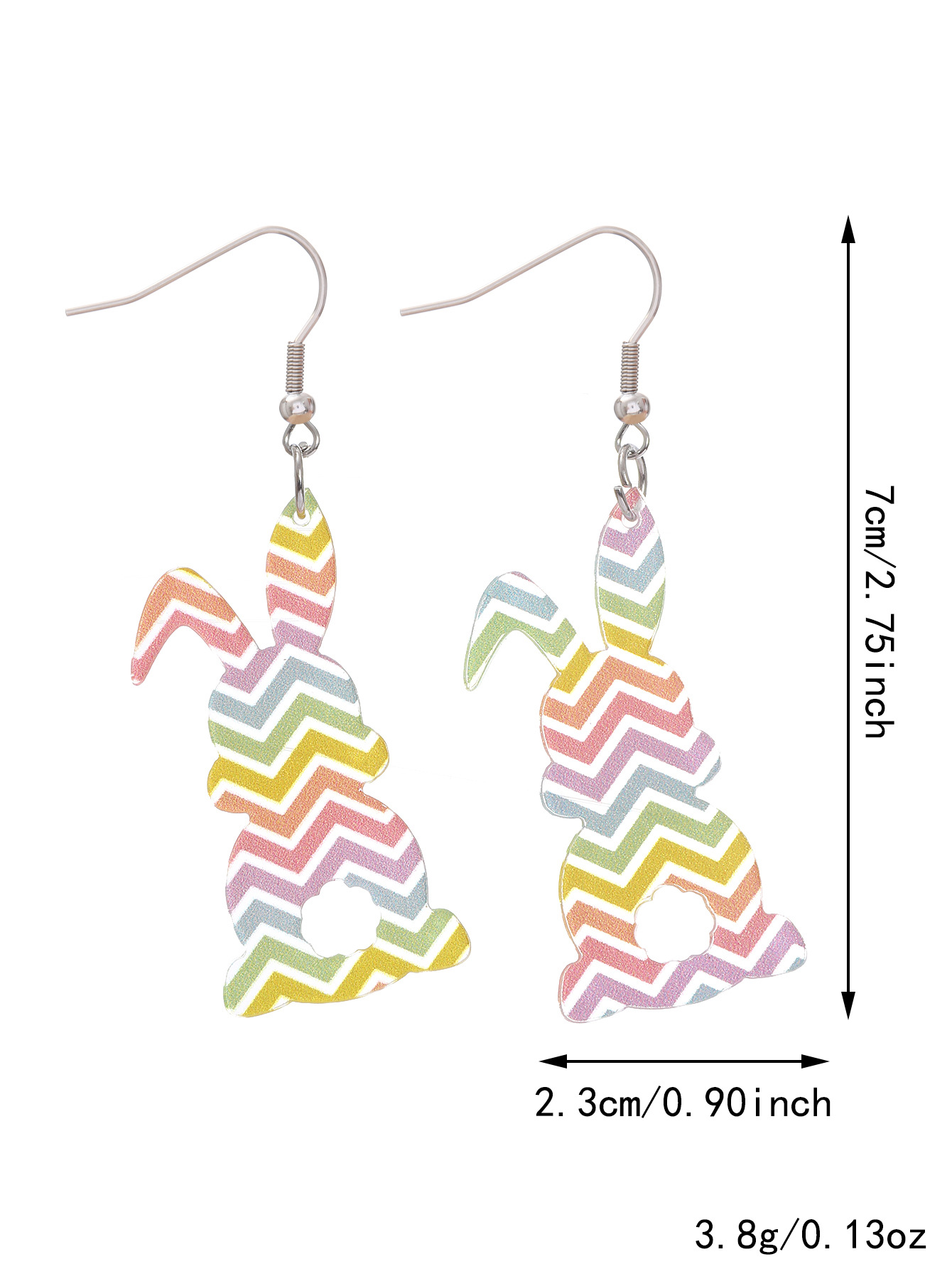 新款复活节亚克力印花兔子条纹爱心耳钉耳环时尚撞色个性耳坠耳饰