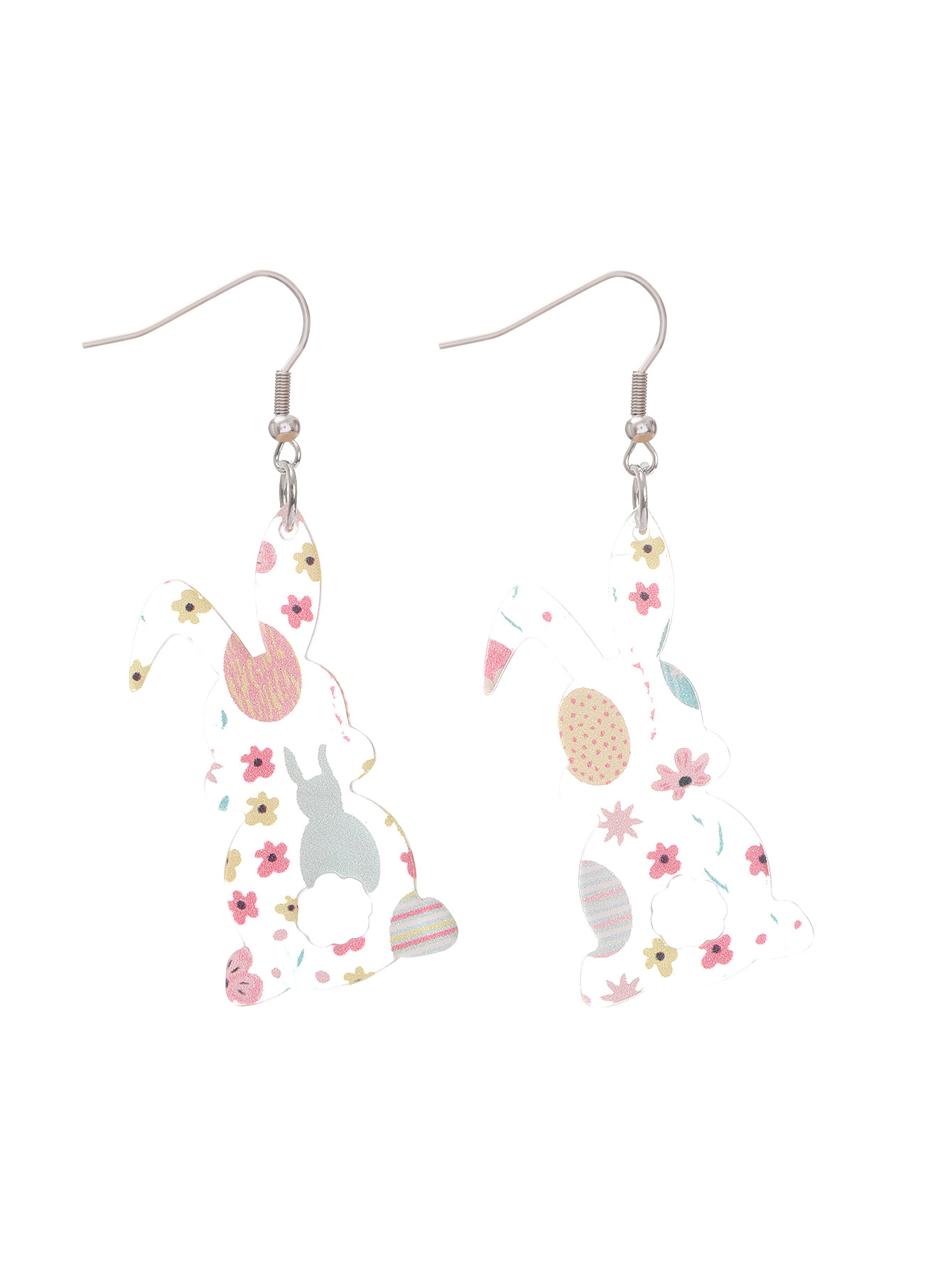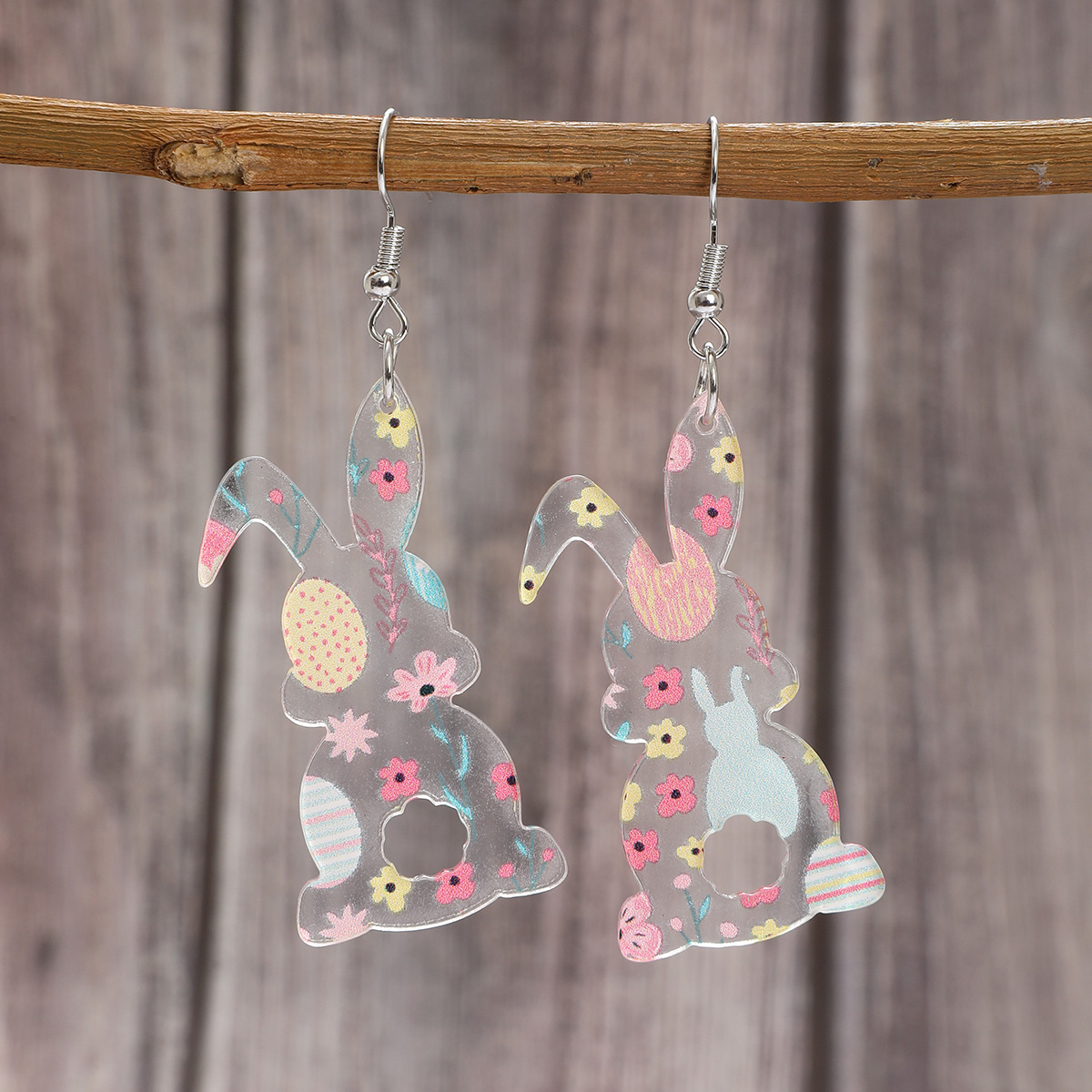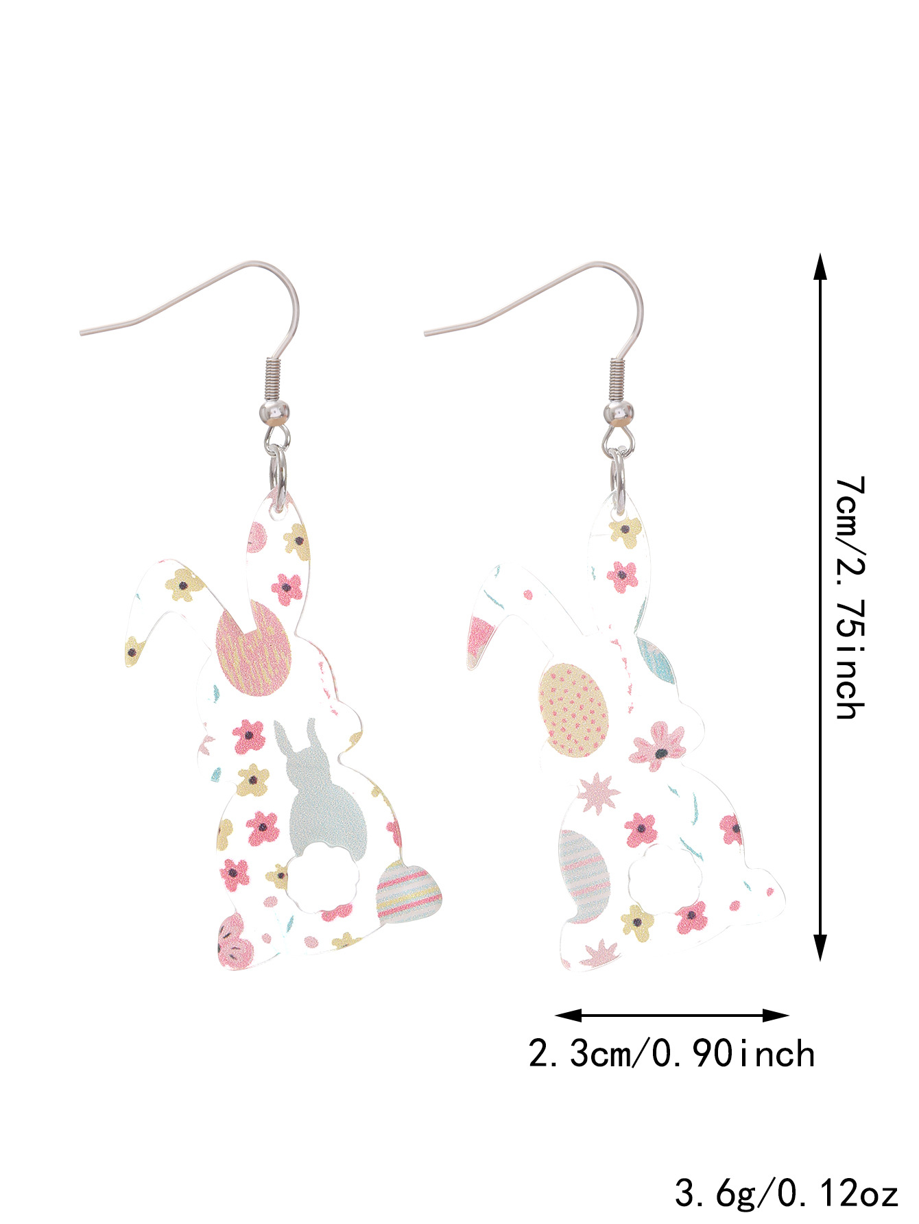 新款复活节亚克力印花兔子条纹爱心耳钉耳环时尚撞色个性耳坠耳饰