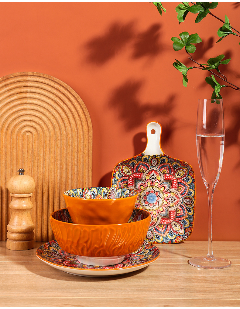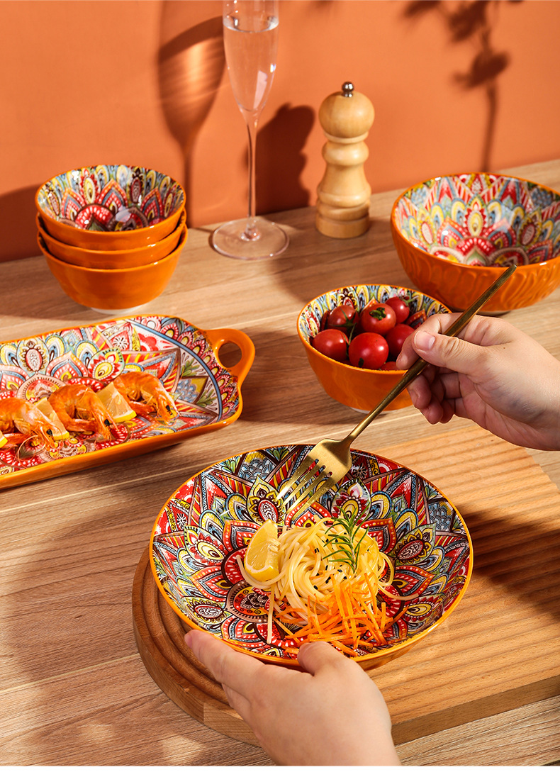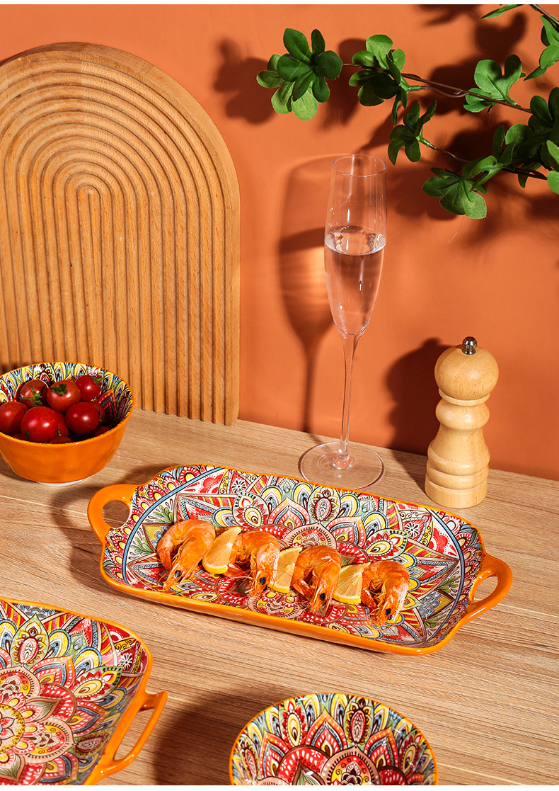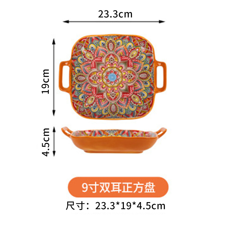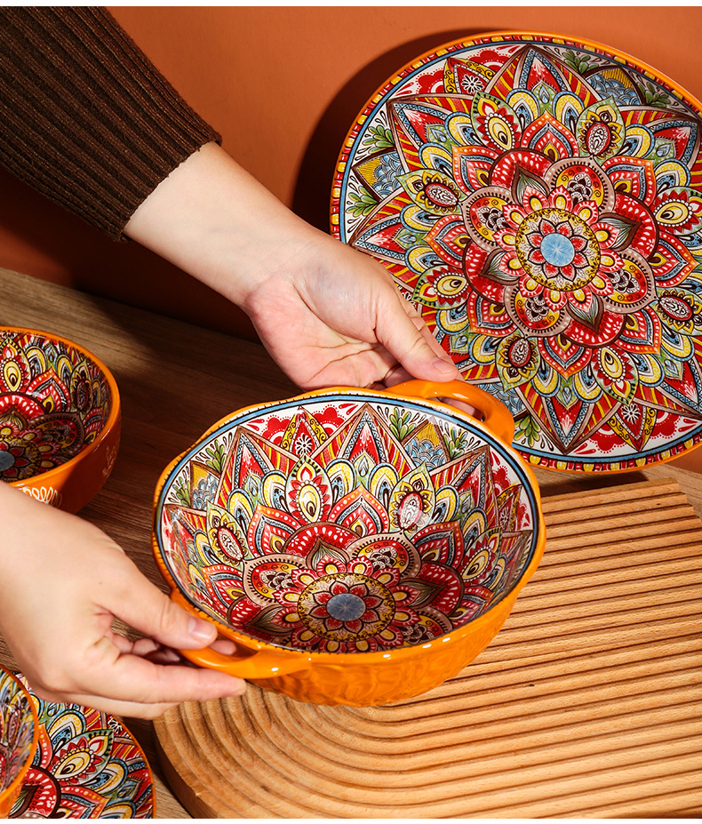 波西米亚网红陶瓷餐具饭碗汤碗手柄盘烤盘厨房酒店用品