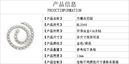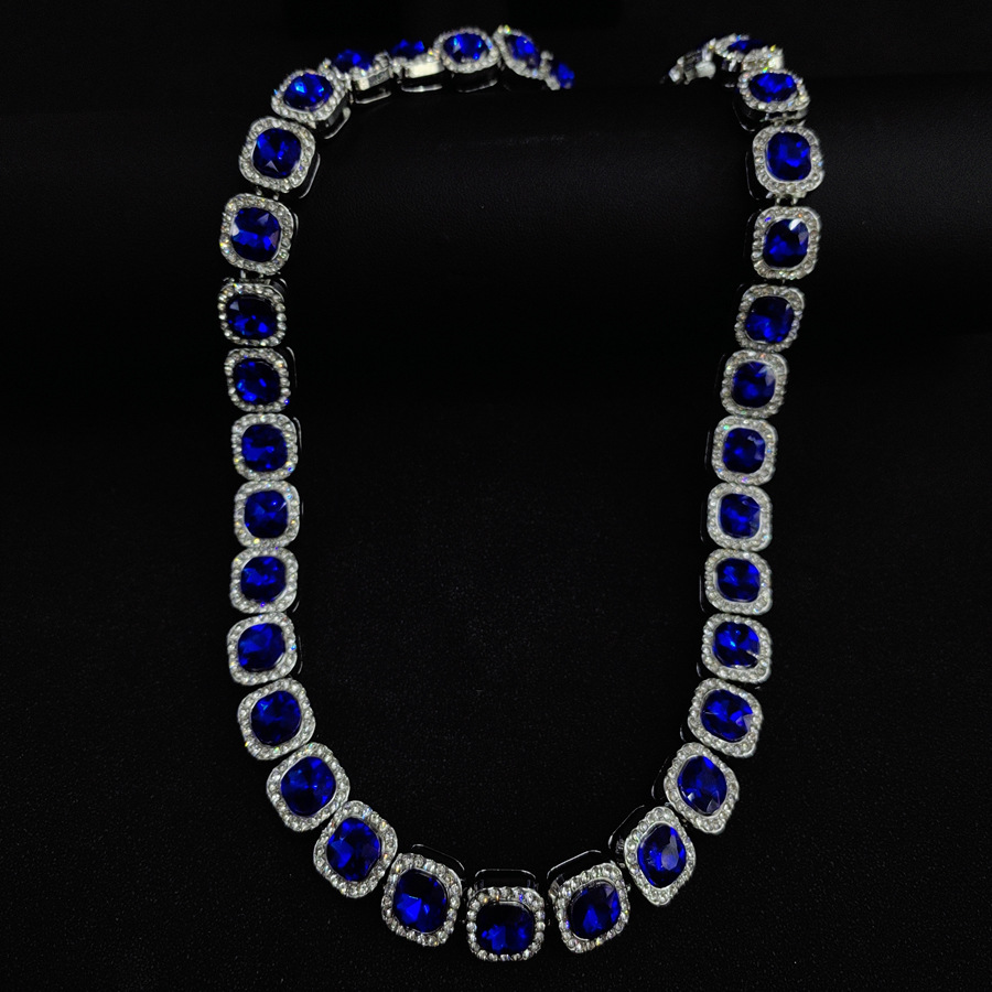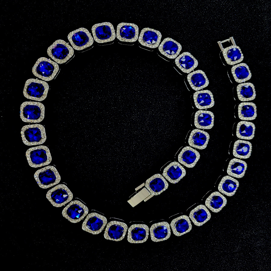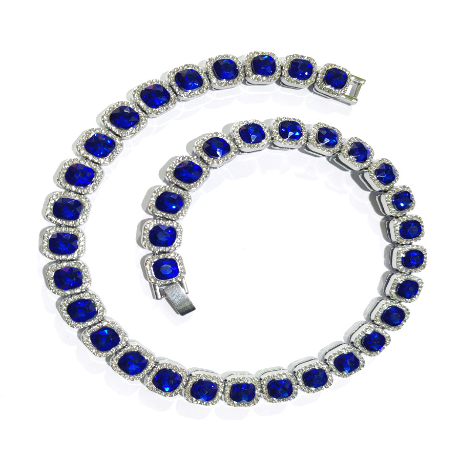 跨境四方形蓝宝石个性镶钻项链合金高级冰糖钻项链男女同款颈链