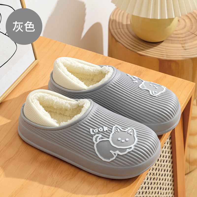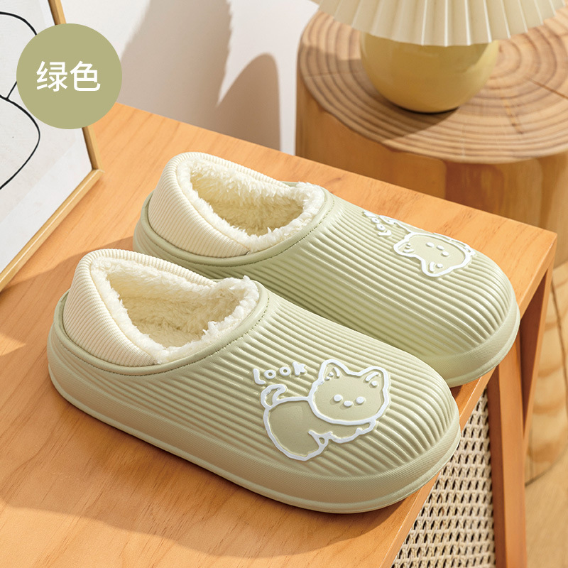 秋冬季情侣防水厚软底棉拖鞋女包跟月子鞋保暖室内家居家用外穿男