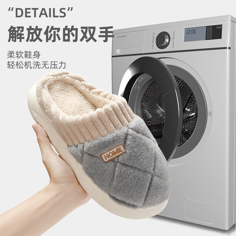 棉拖鞋男士秋冬季居家户外穿厚底毛绒保暖防滑舒适半包跟月子鞋女