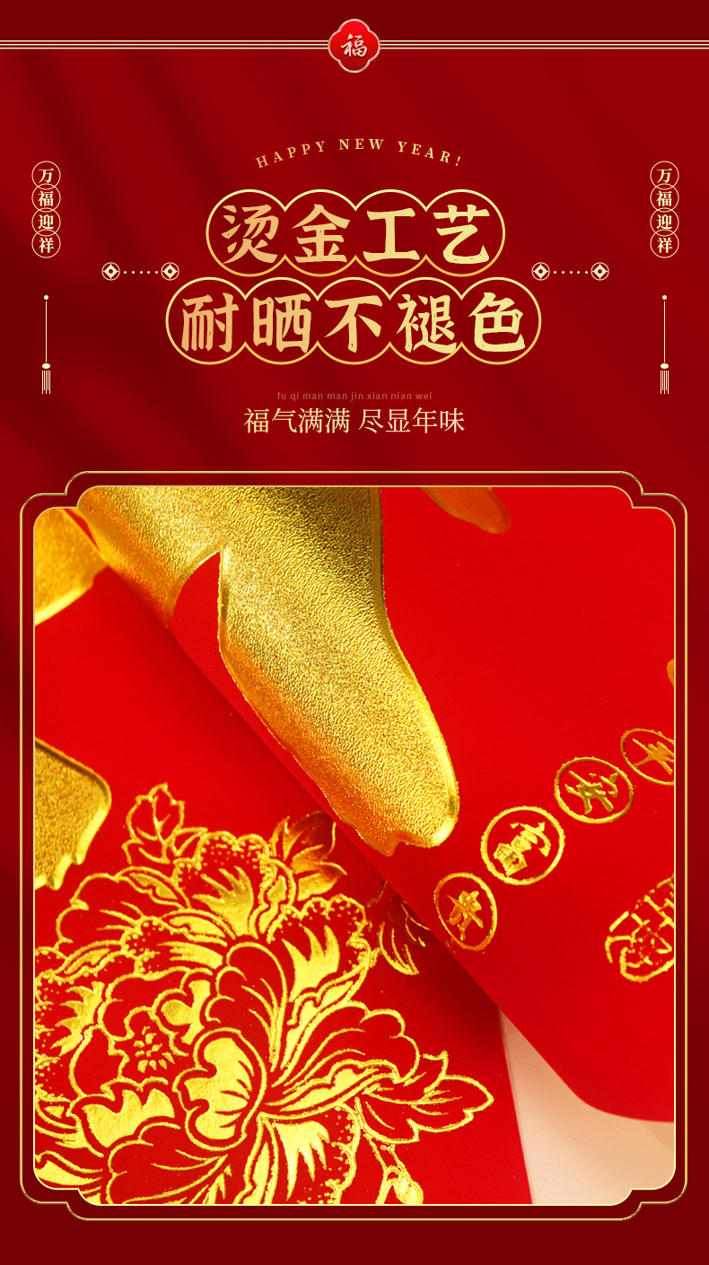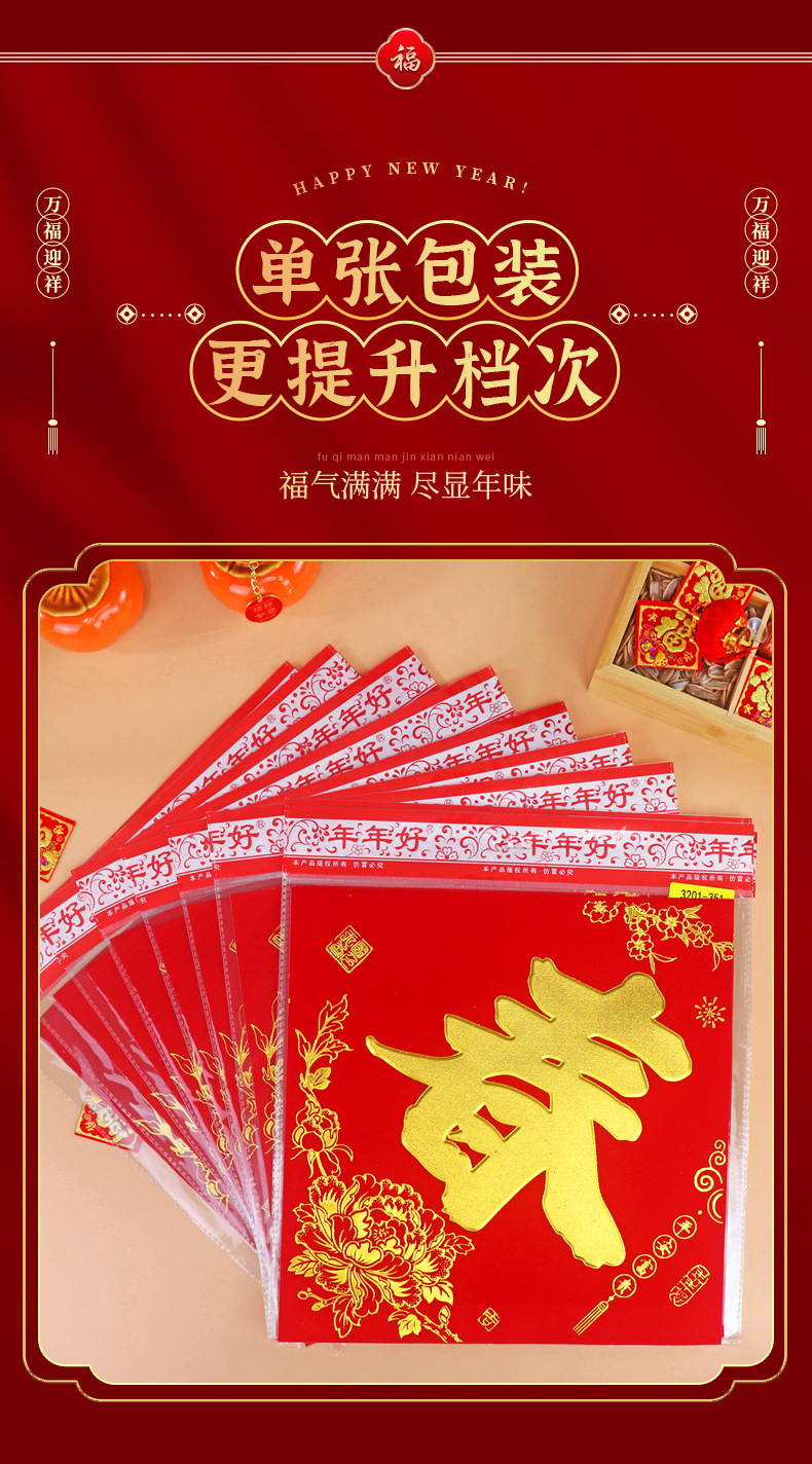 2025新款年年好书法烫金春字自粘独立装新年门贴用品厂家批发蛇