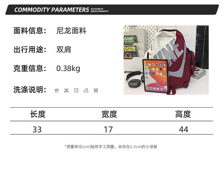 新款休闲出行背包男女字母学生上课背包运动收纳双肩背包