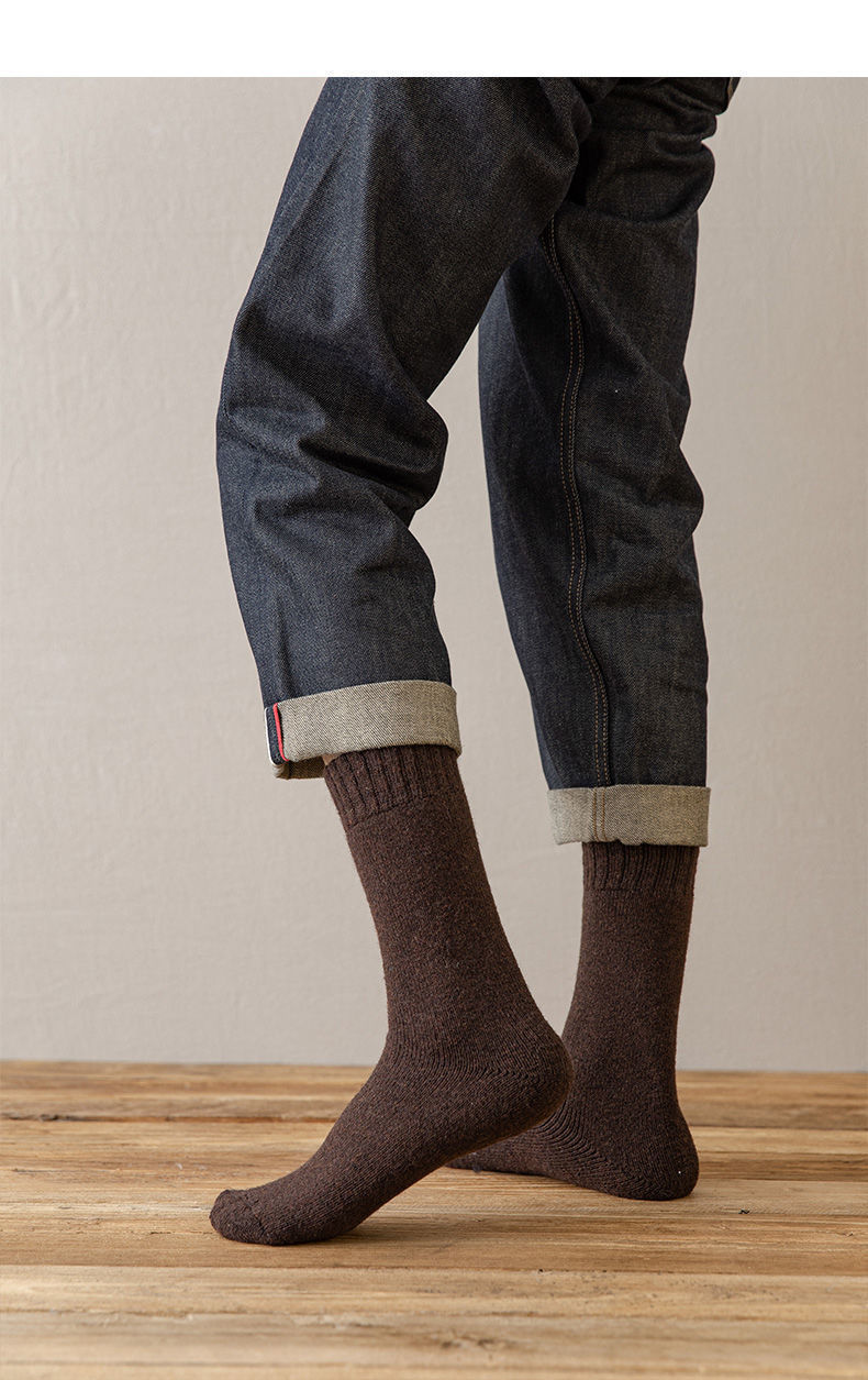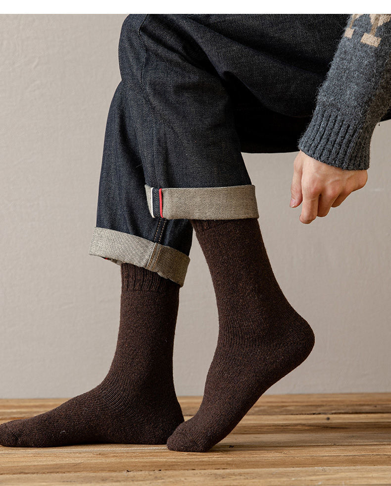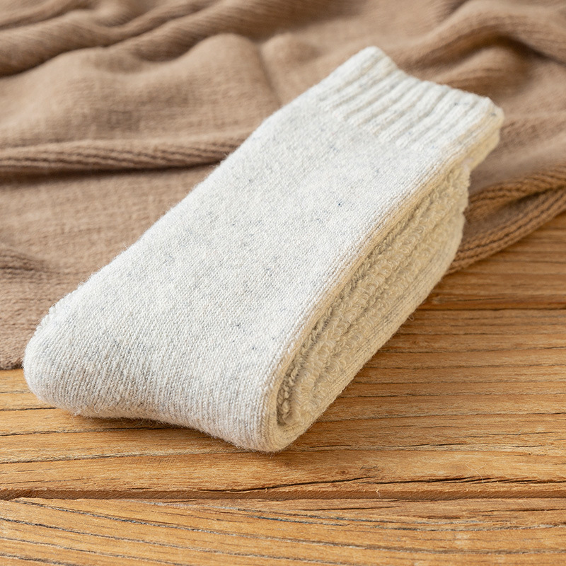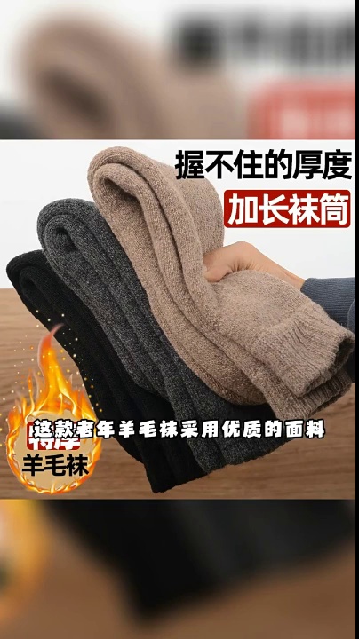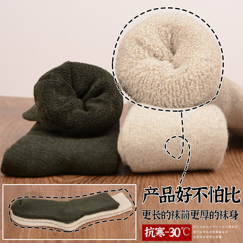 老年人羊毛袜男加长冬高筒超厚女东北加绒袜大码长筒松口防寒棉袜