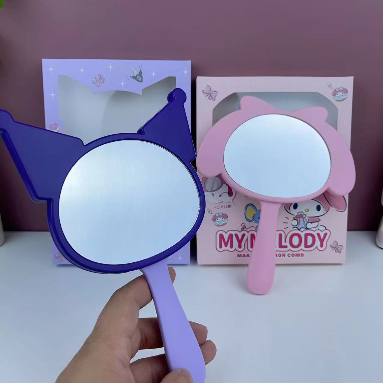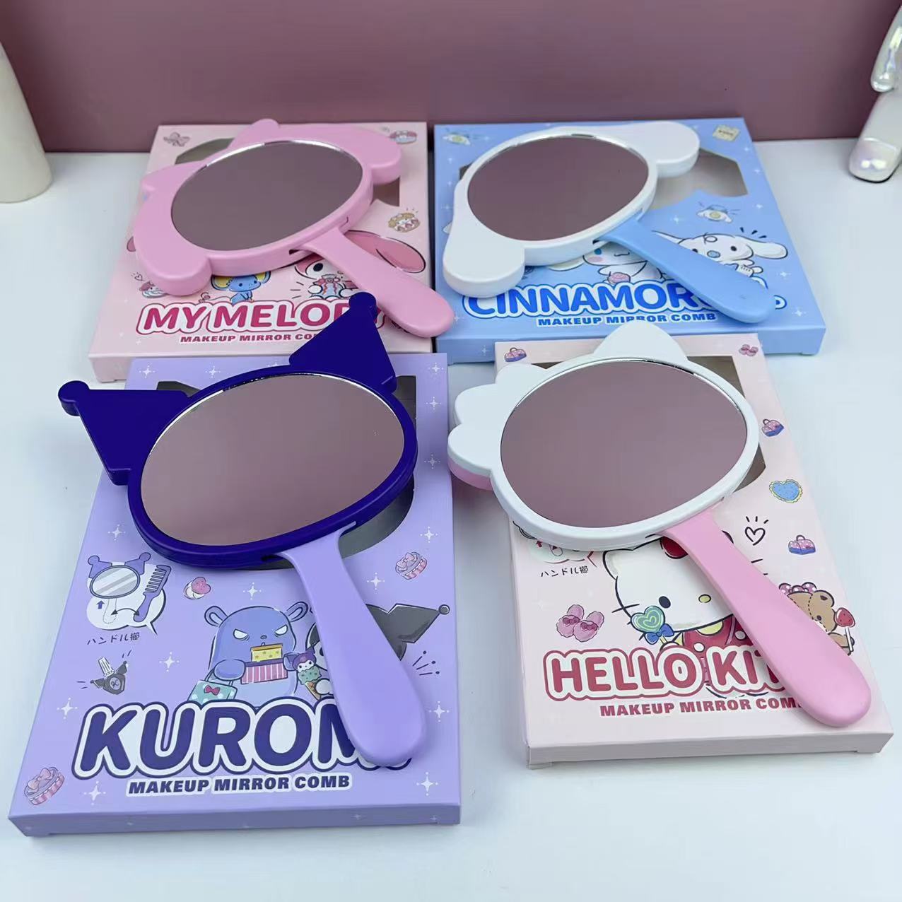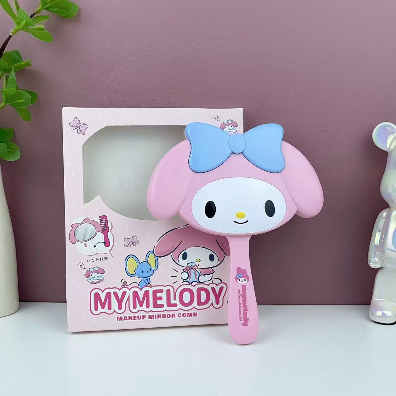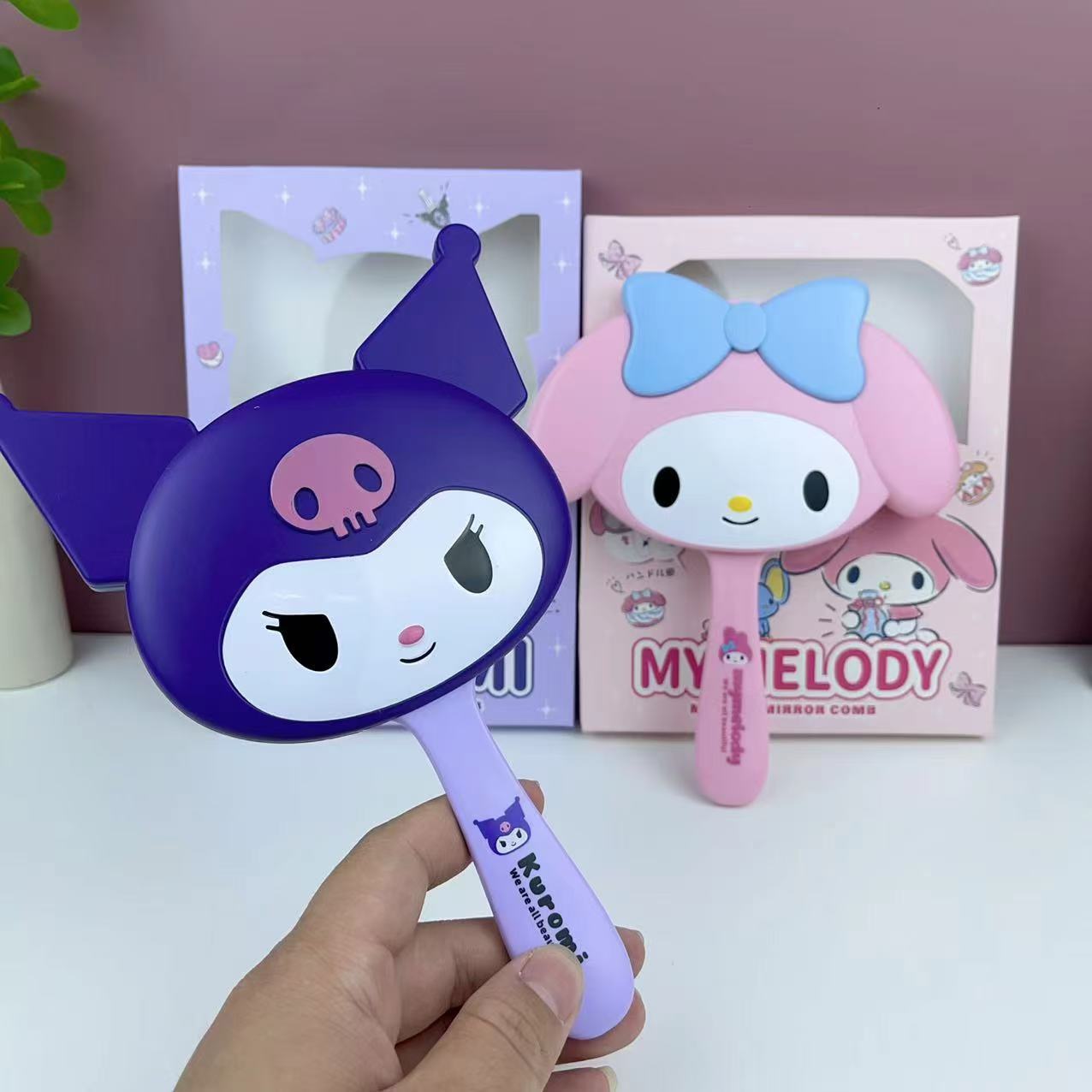 跨境三丽鸥梳镜二合一手持镜库洛米手柄镜宿舍便捷式卡通化妆镜子