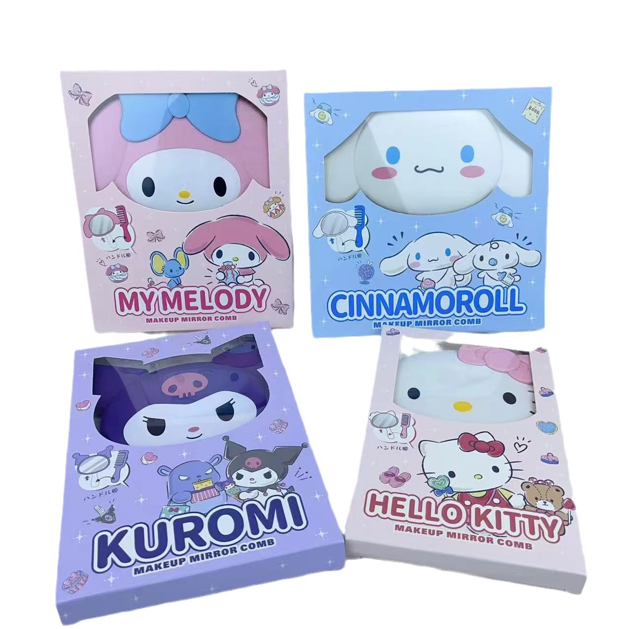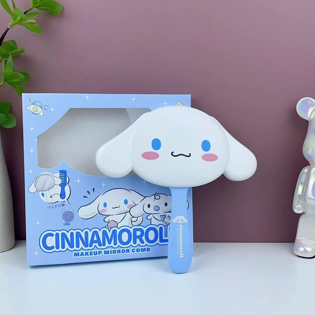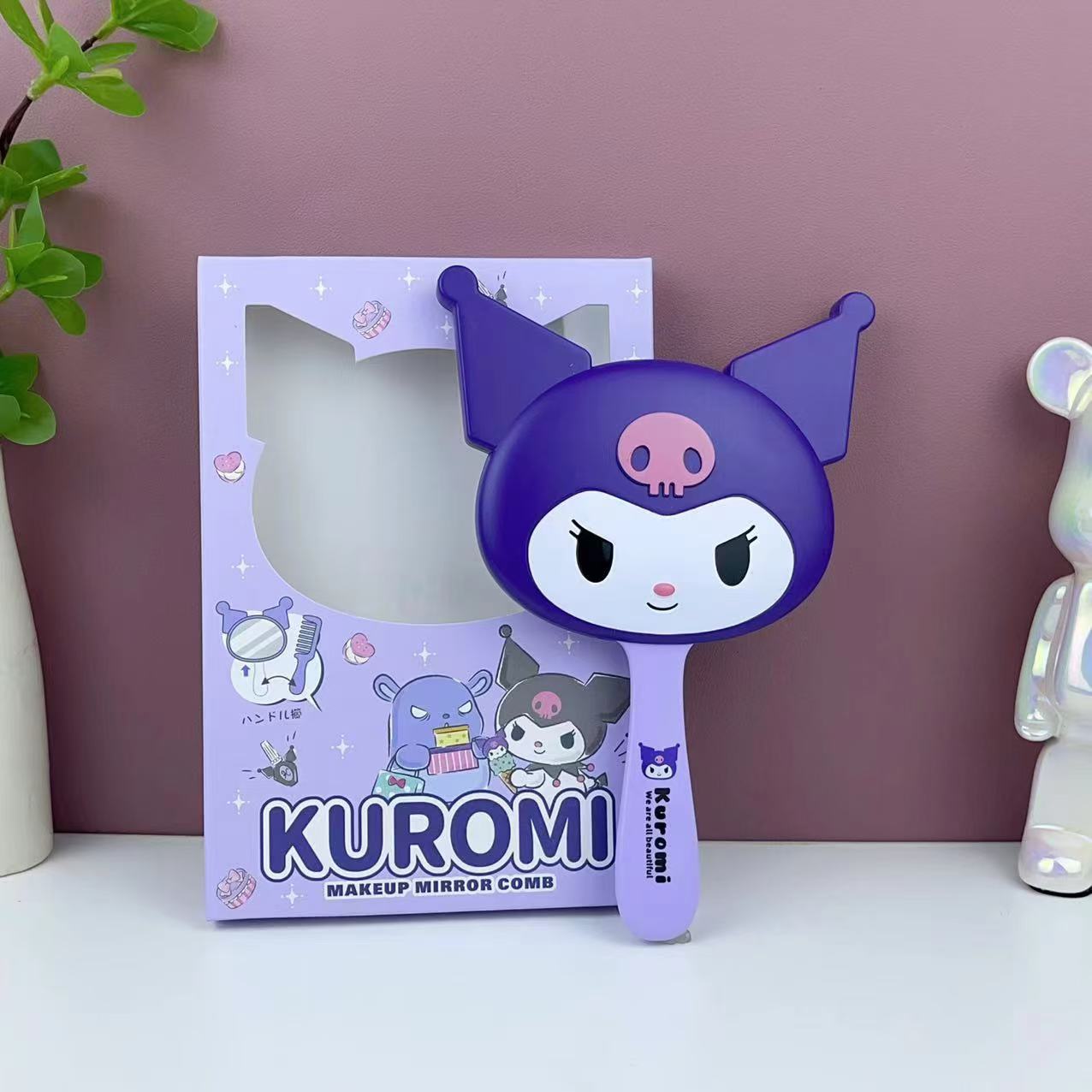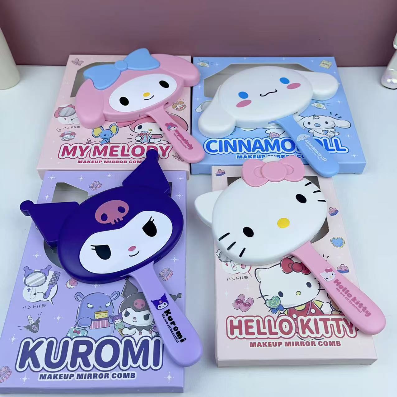 跨境三丽鸥梳镜二合一手持镜库洛米手柄镜宿舍便捷式卡通化妆镜子