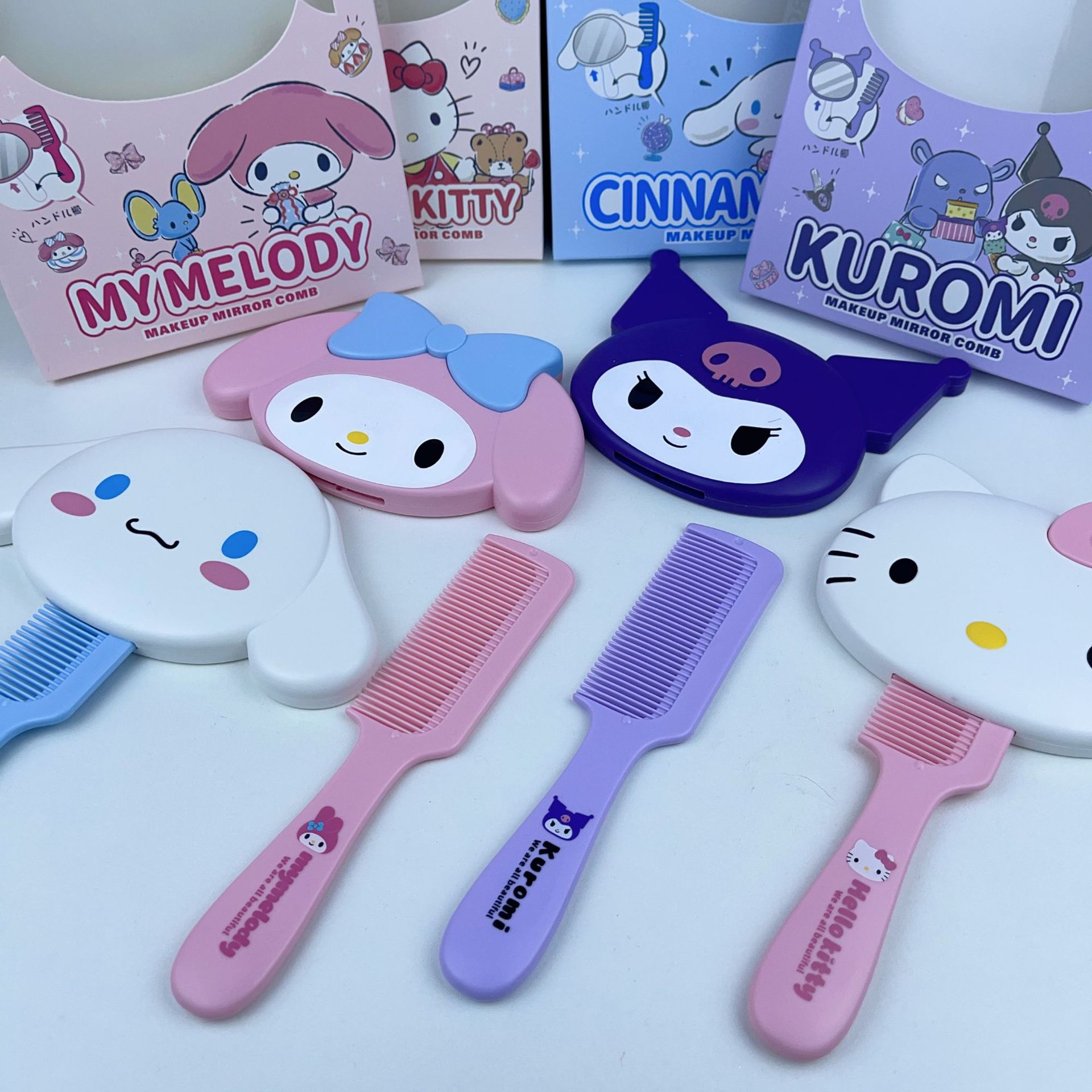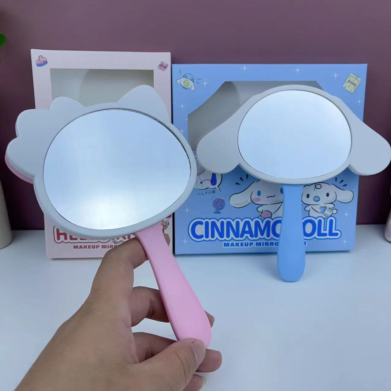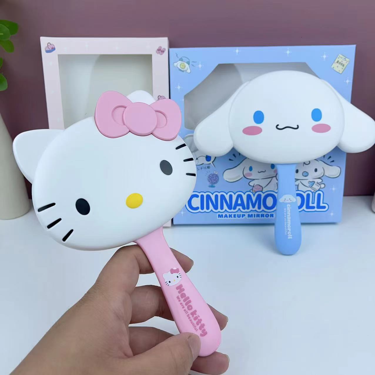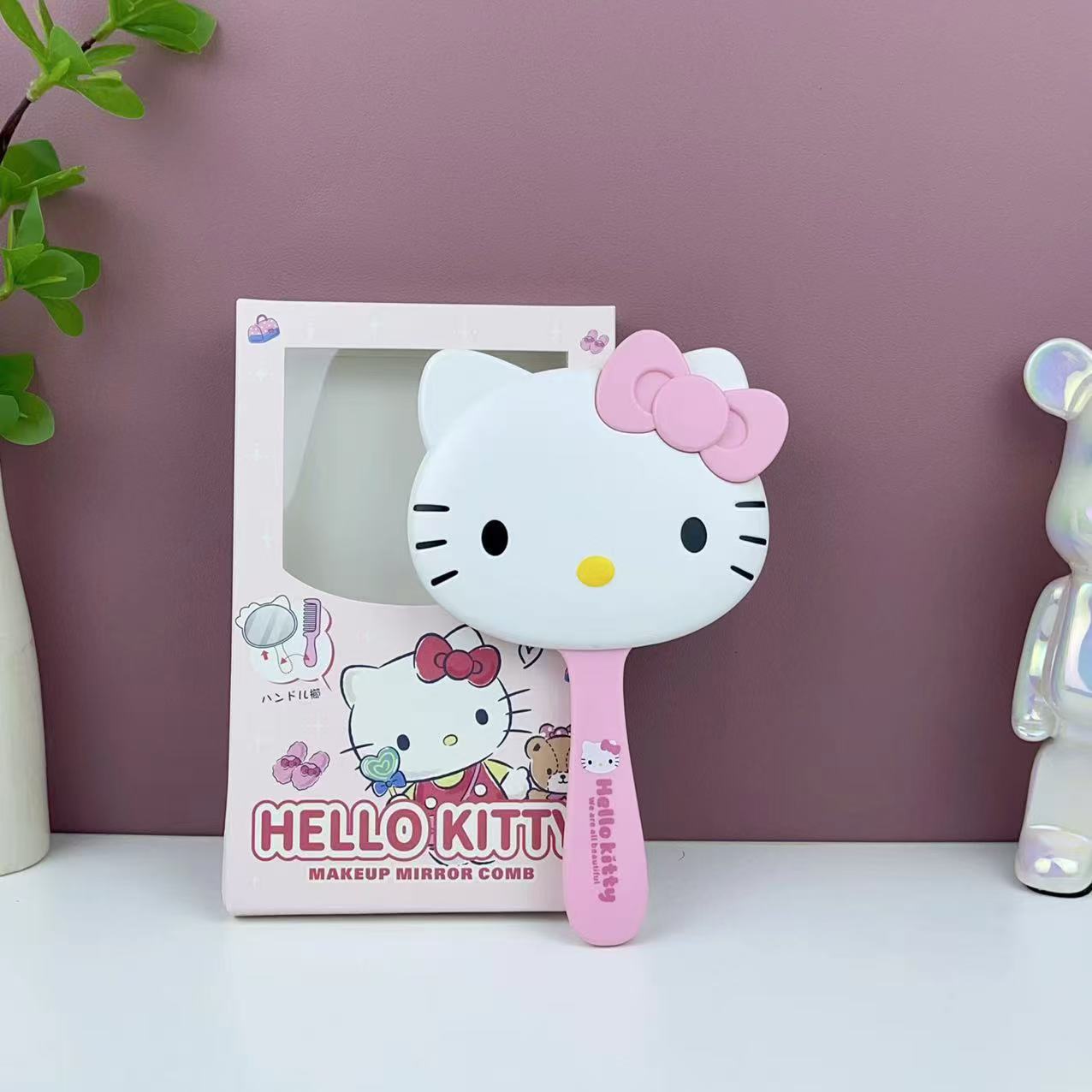 跨境三丽鸥梳镜二合一手持镜库洛米手柄镜宿舍便捷式卡通化妆镜子