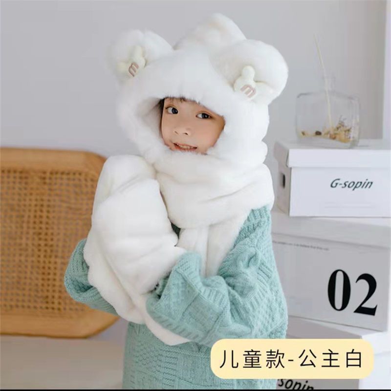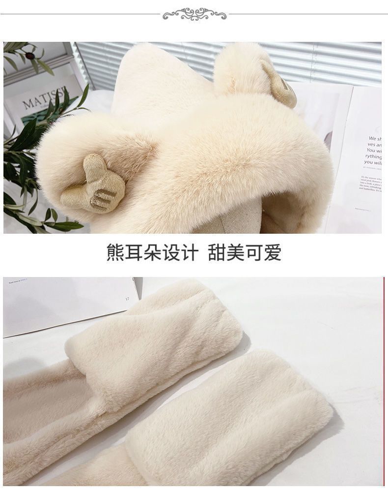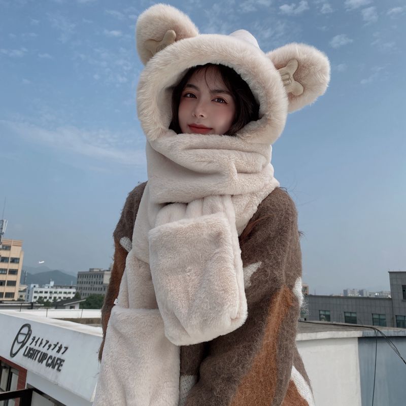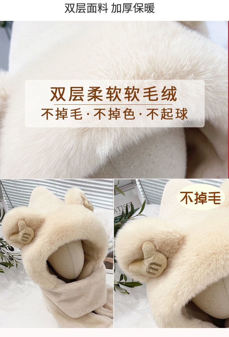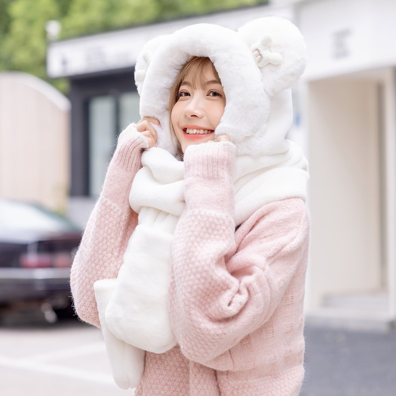 小熊帽子女三件套韩版可爱米奇连帽围巾一体保暖手套护耳围脖冬季
