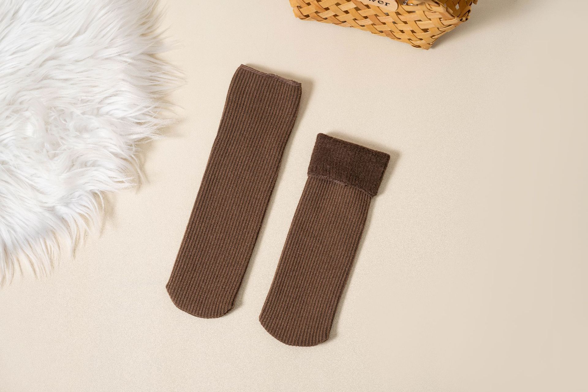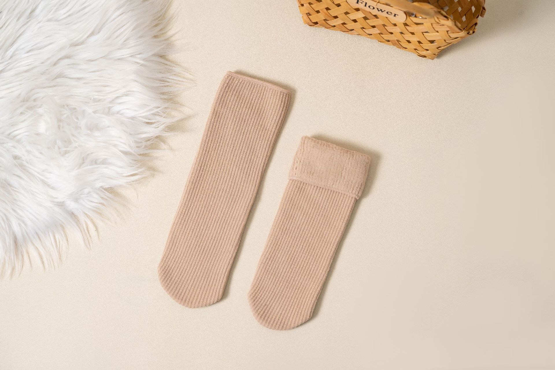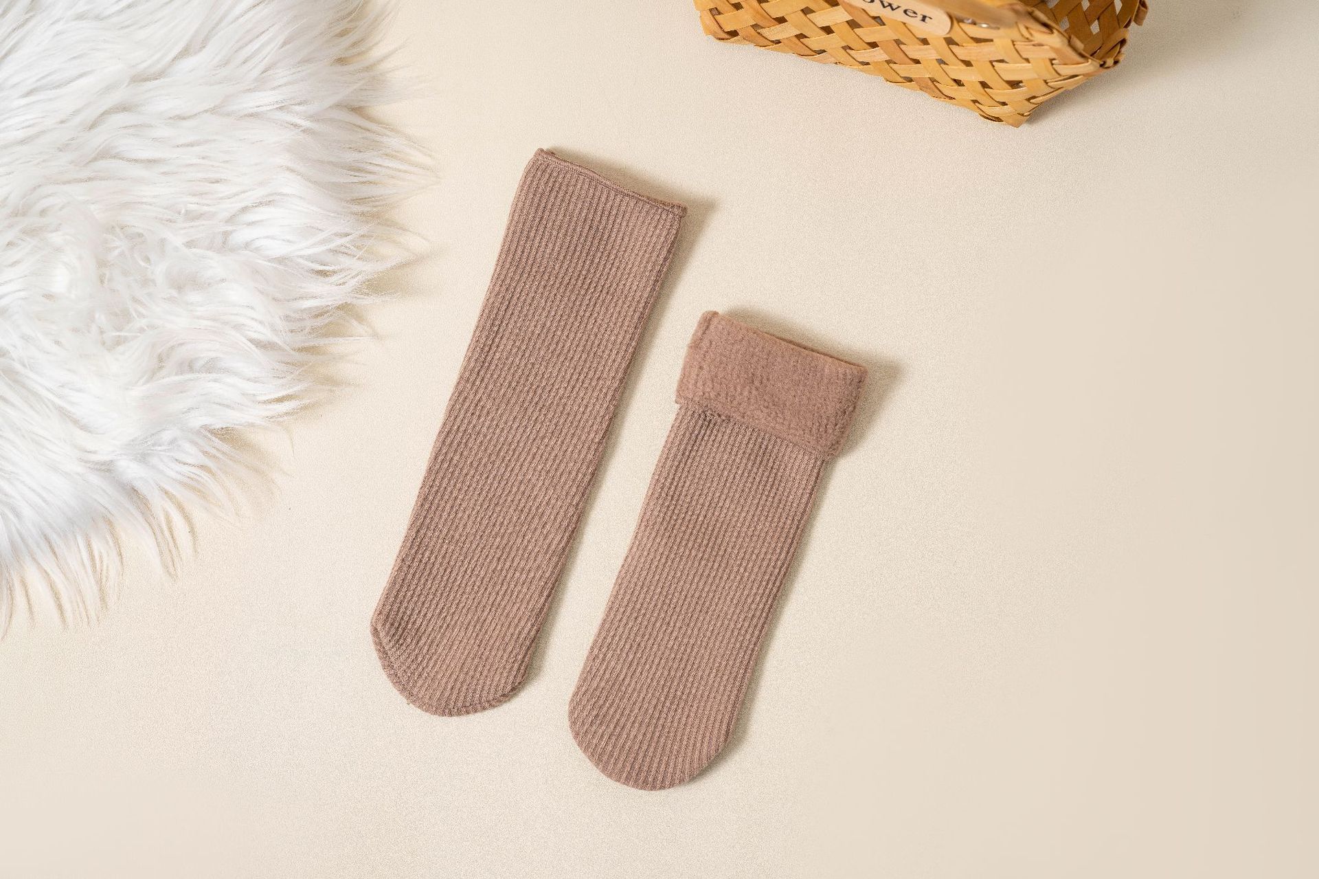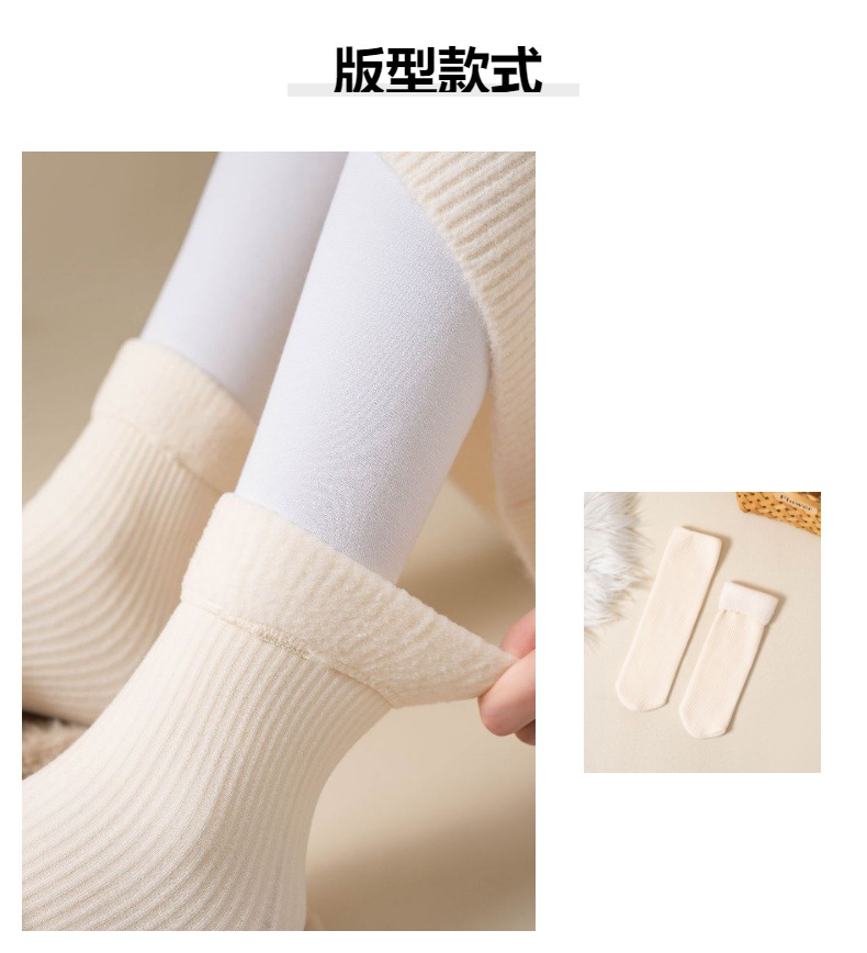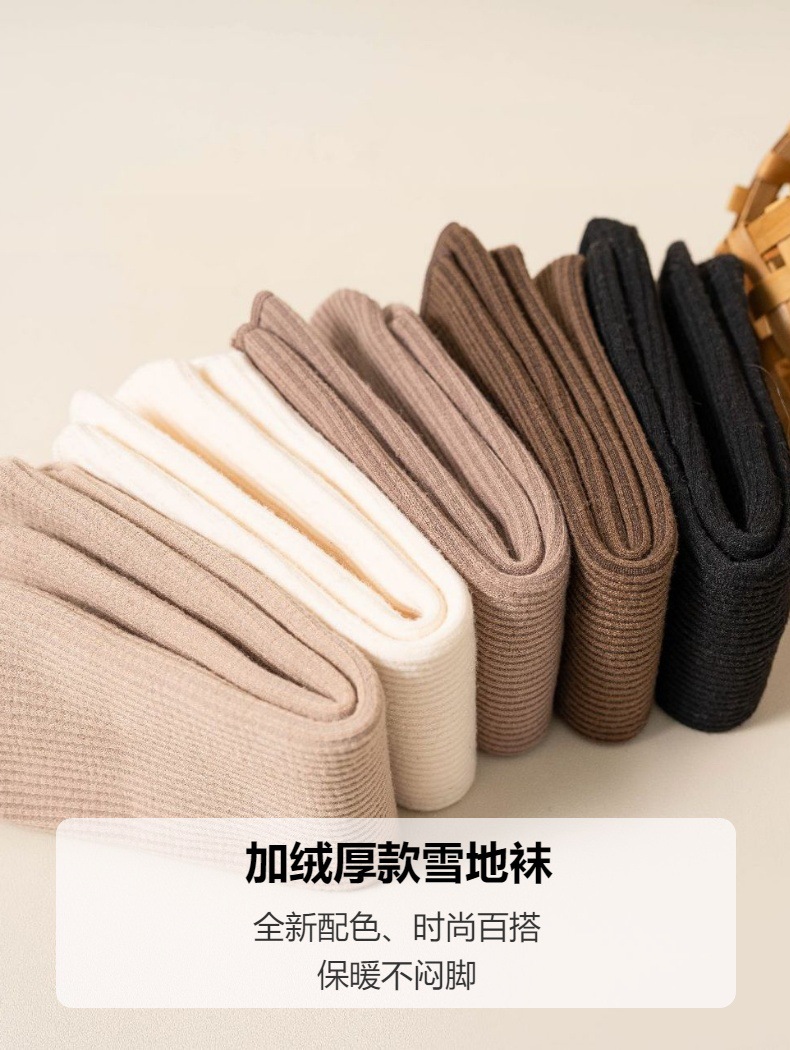 秋冬季雪地袜加绒加厚袜子女防寒袜保暖中筒袜纯色睡眠地板袜批发