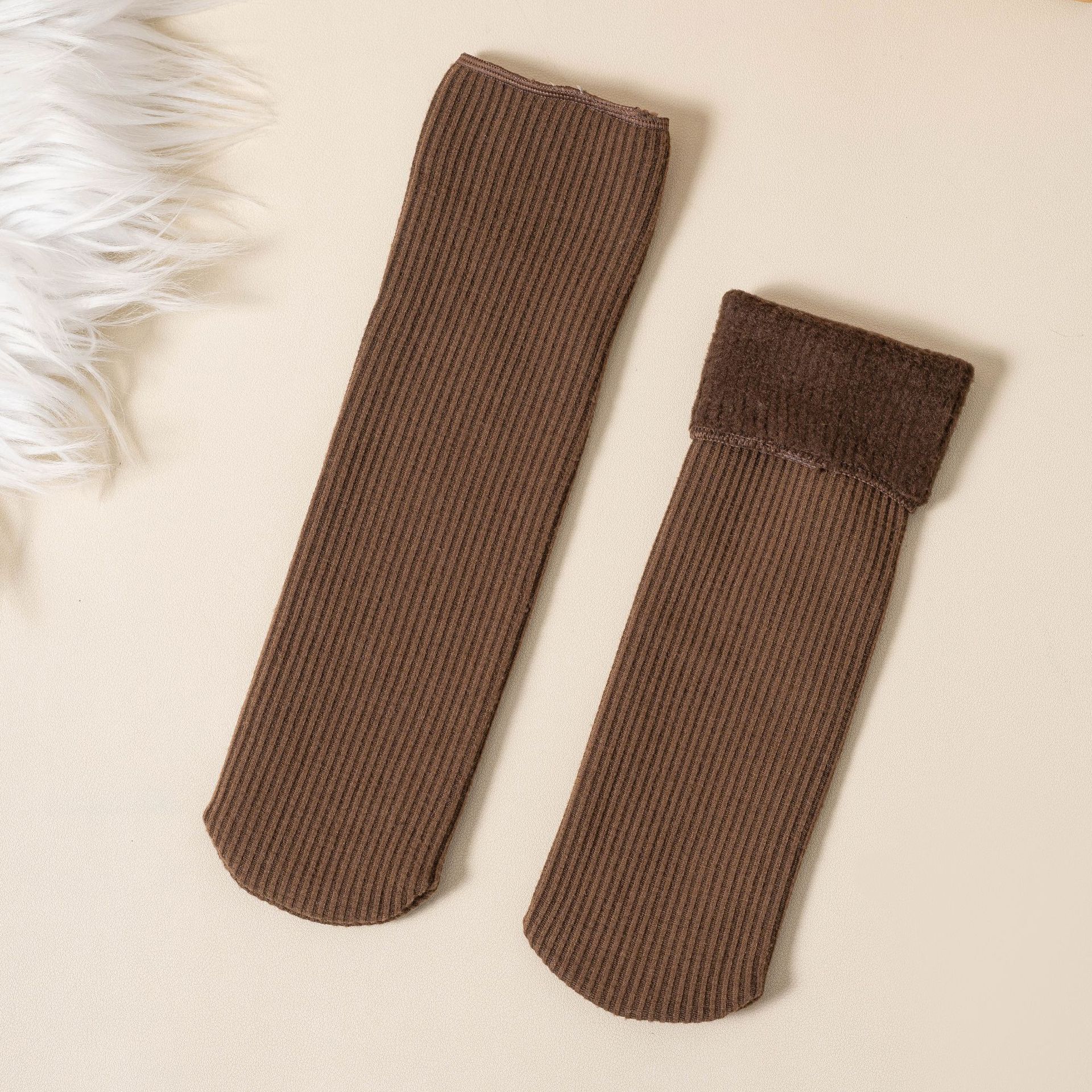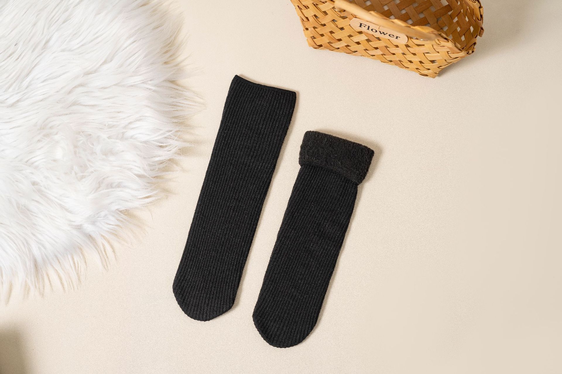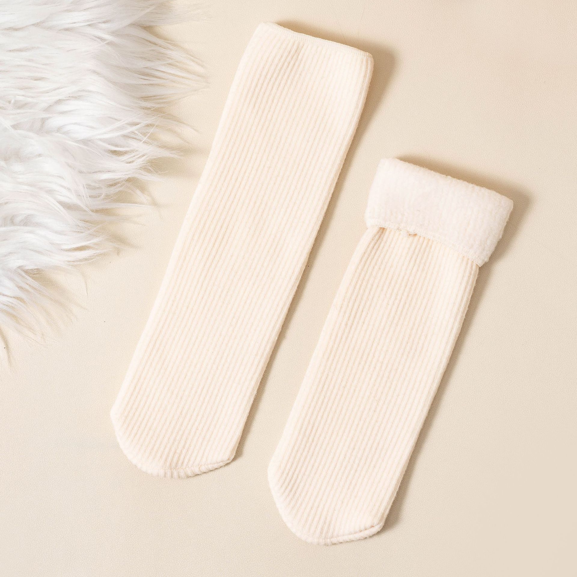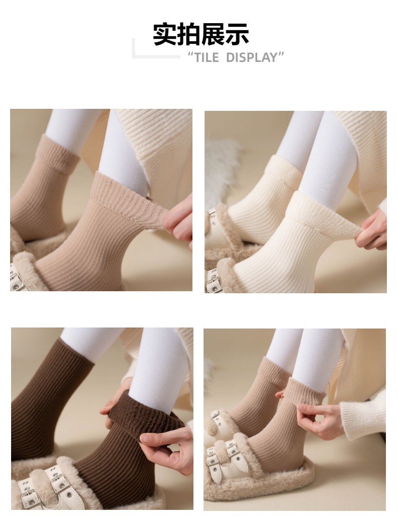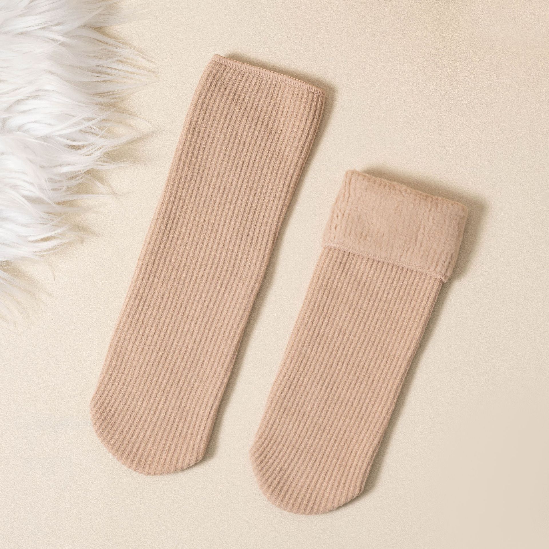 秋冬季雪地袜加绒加厚袜子女防寒袜保暖中筒袜纯色睡眠地板袜批发