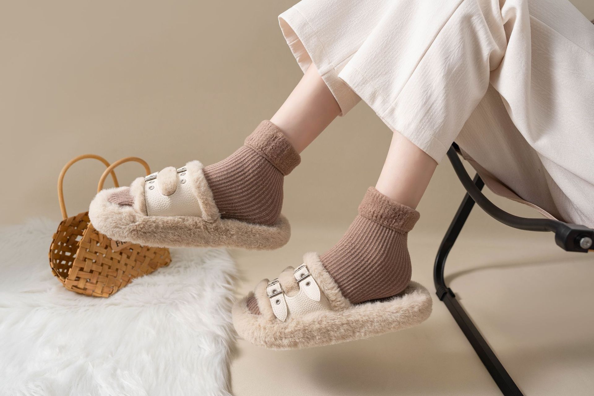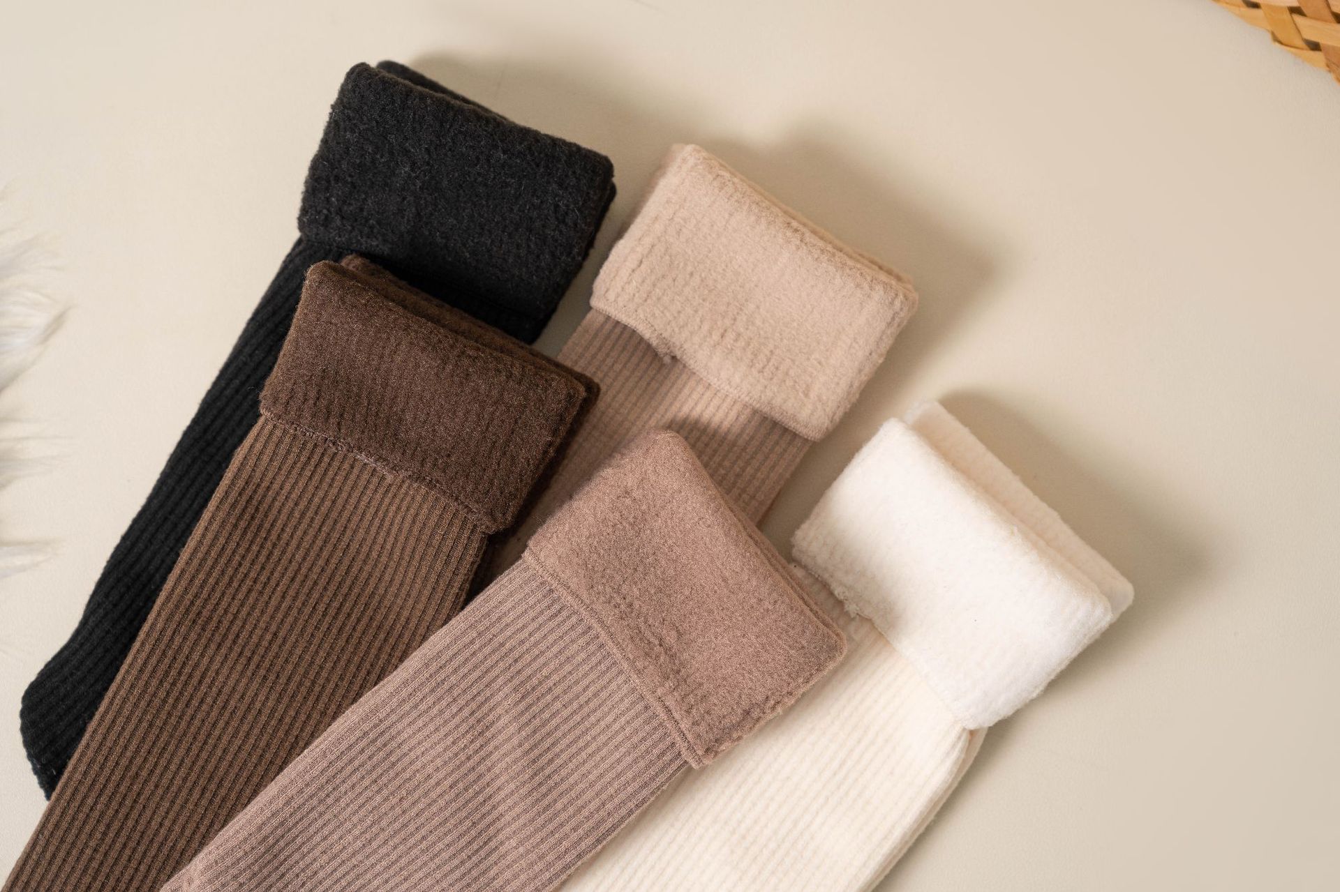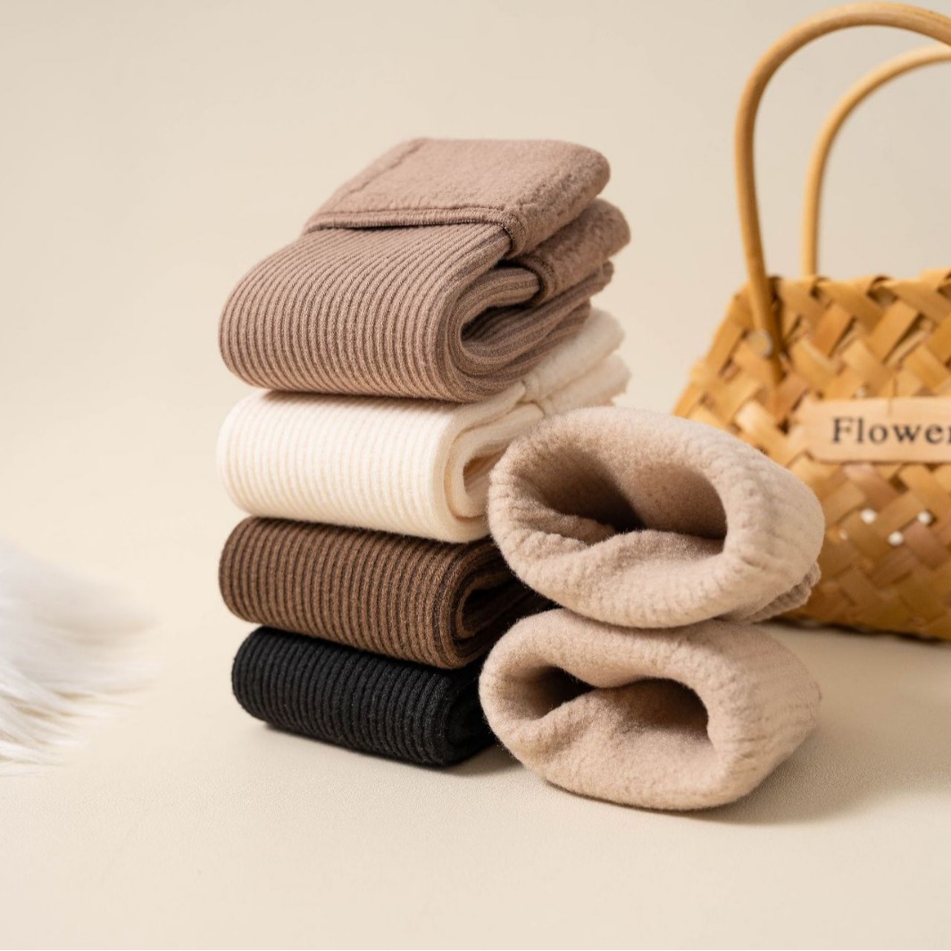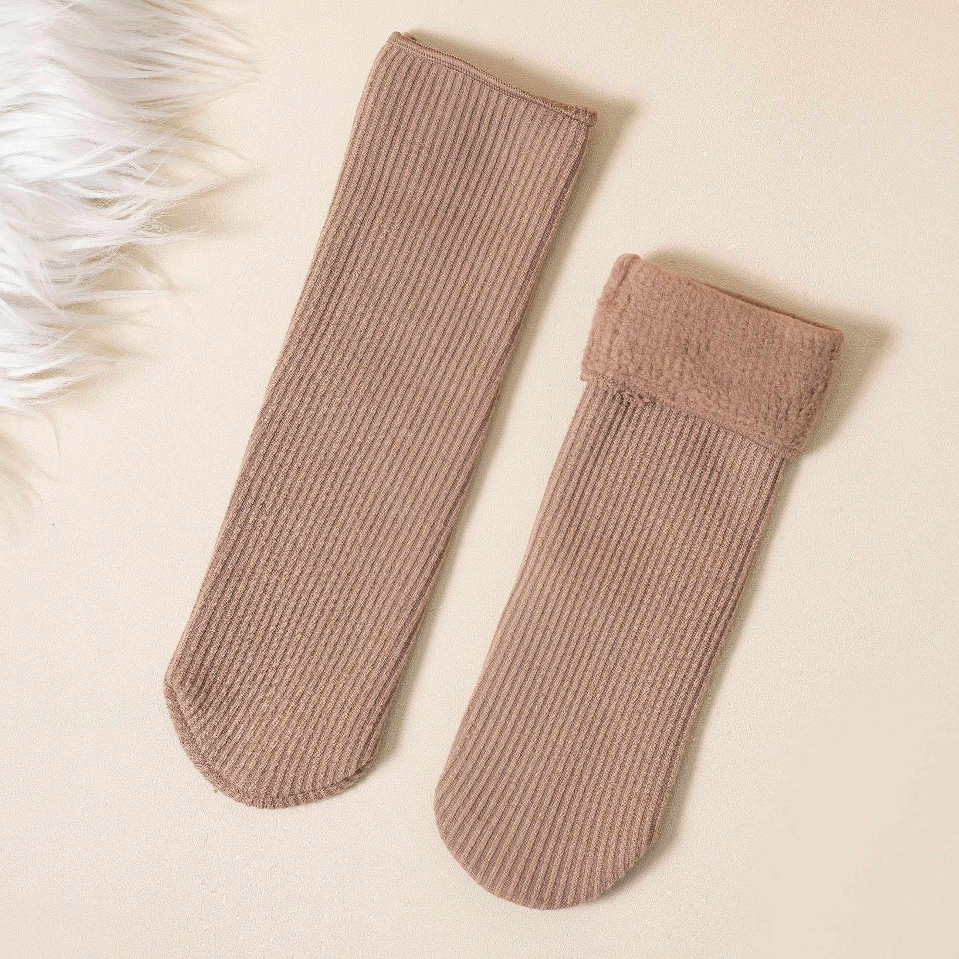 秋冬季雪地袜加绒加厚袜子女防寒袜保暖中筒袜纯色睡眠地板袜批发