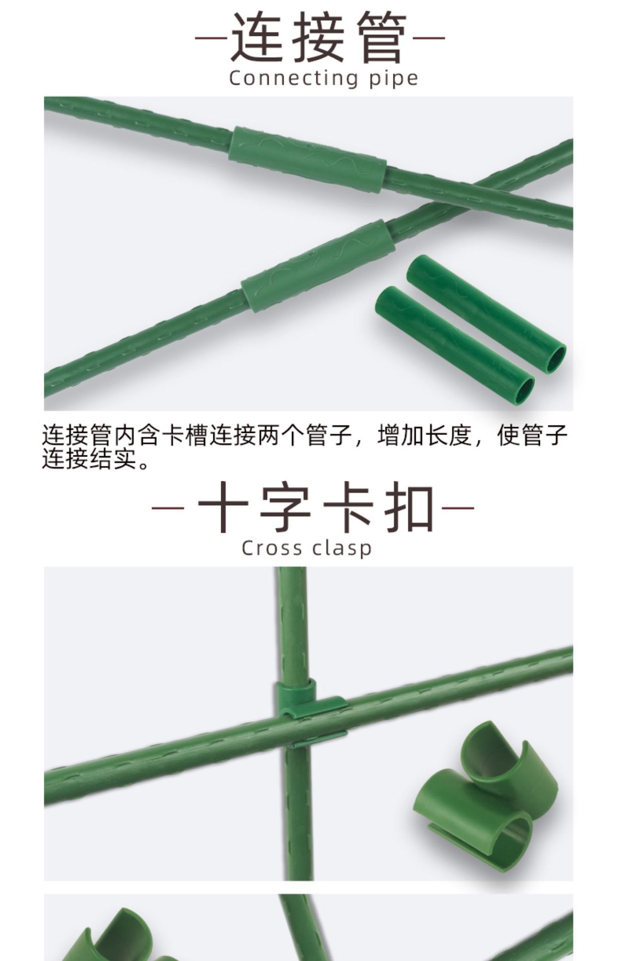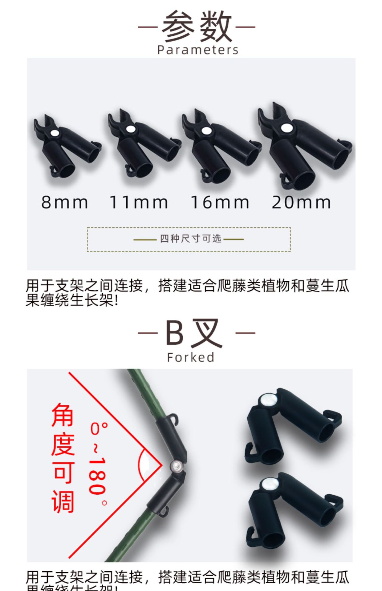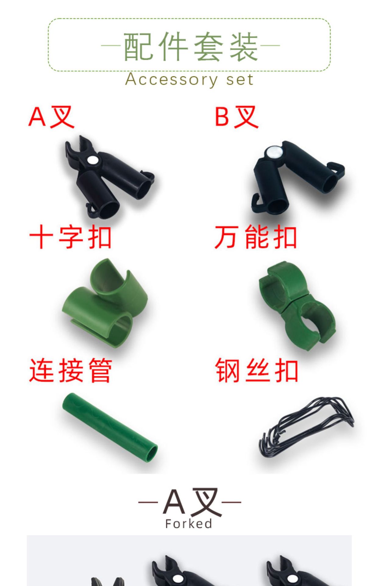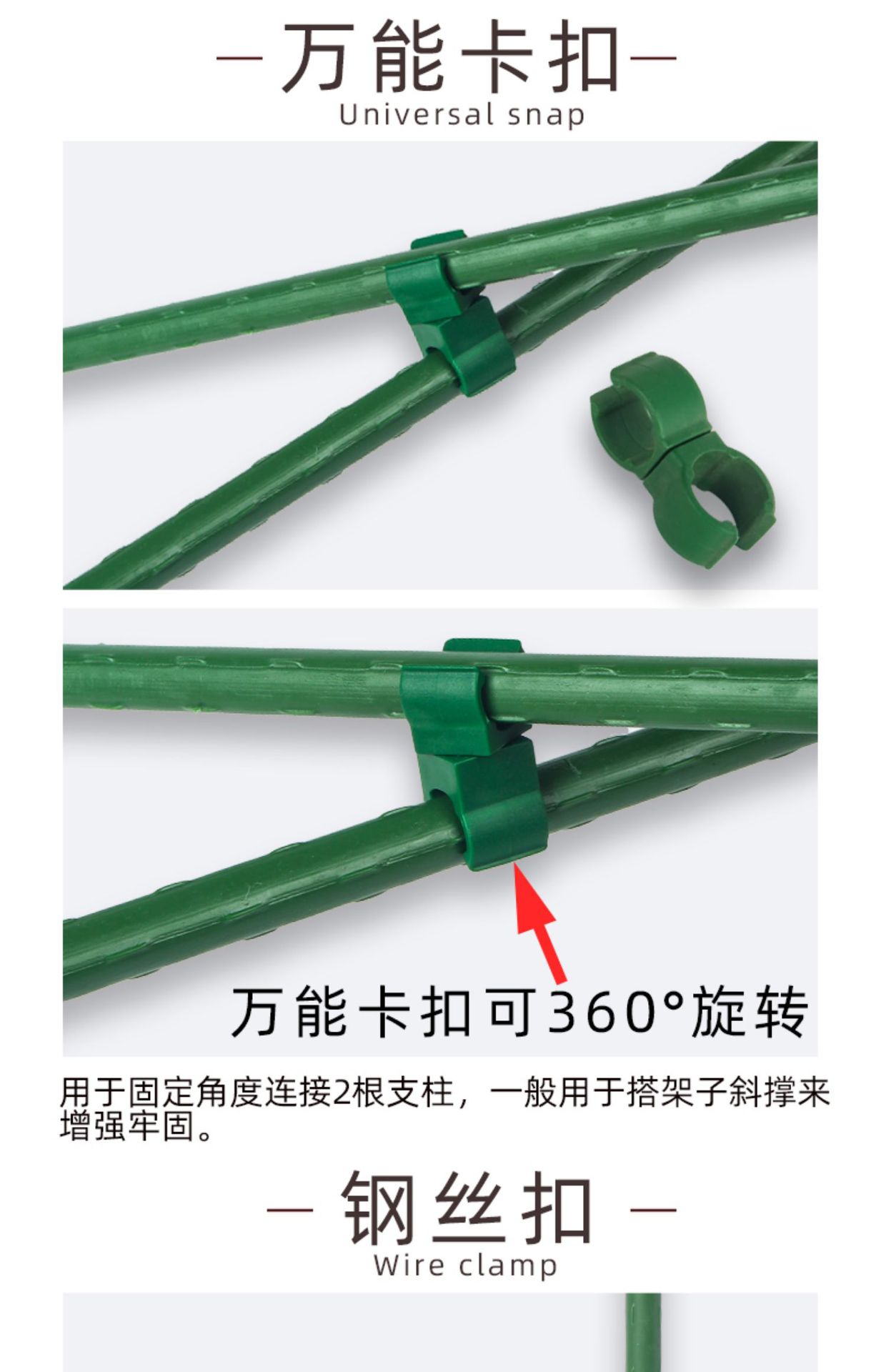包塑钢管爬藤架配件支架支柱连接管AB叉万能卡扣十字扣固定弹簧扣