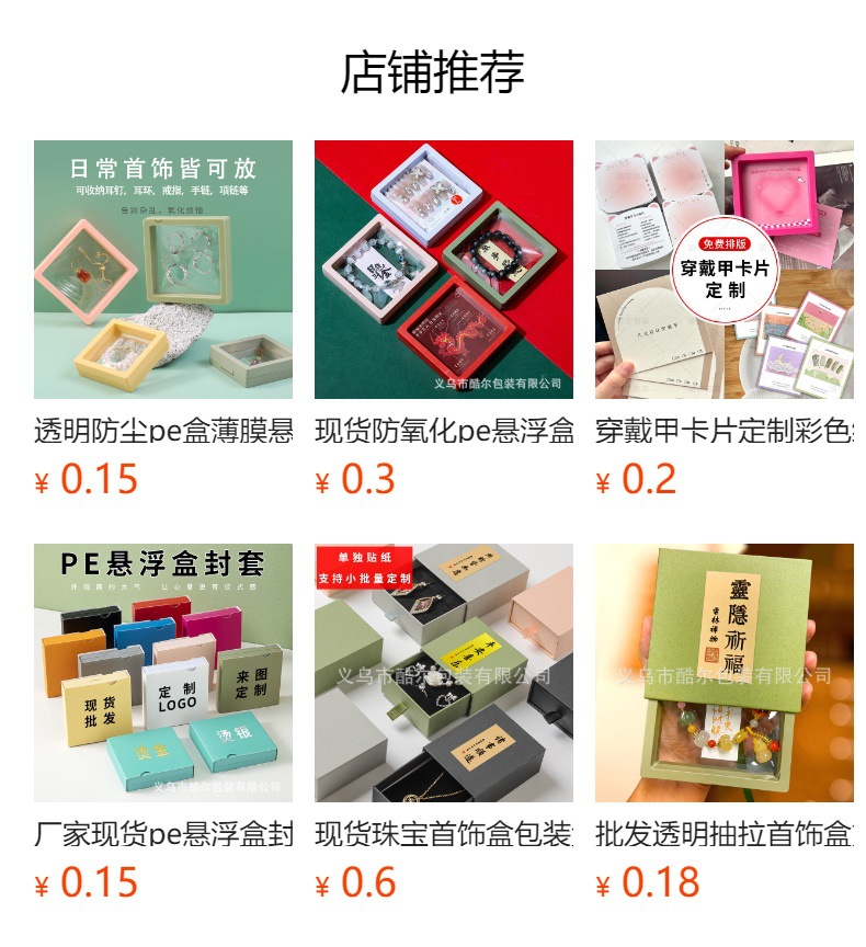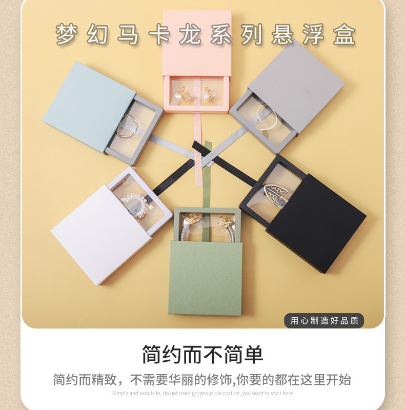 现货防氧化pe膜首饰收纳盒 彩色薄膜悬浮盒饰品穿戴甲包装盒批发