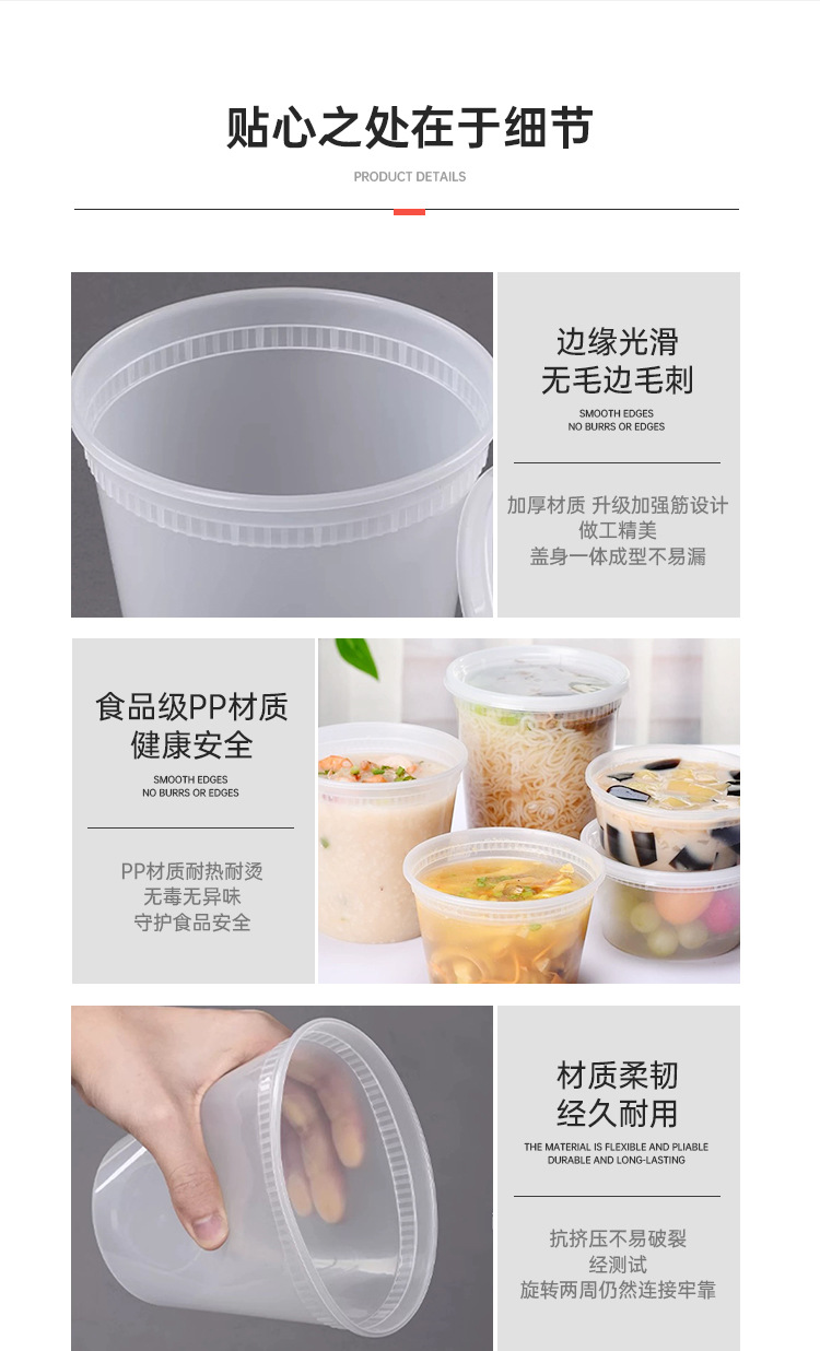 一次性汤杯打包圆形带盖碗杯粥桶食品级外卖餐盒塑料加厚防漏汤杯