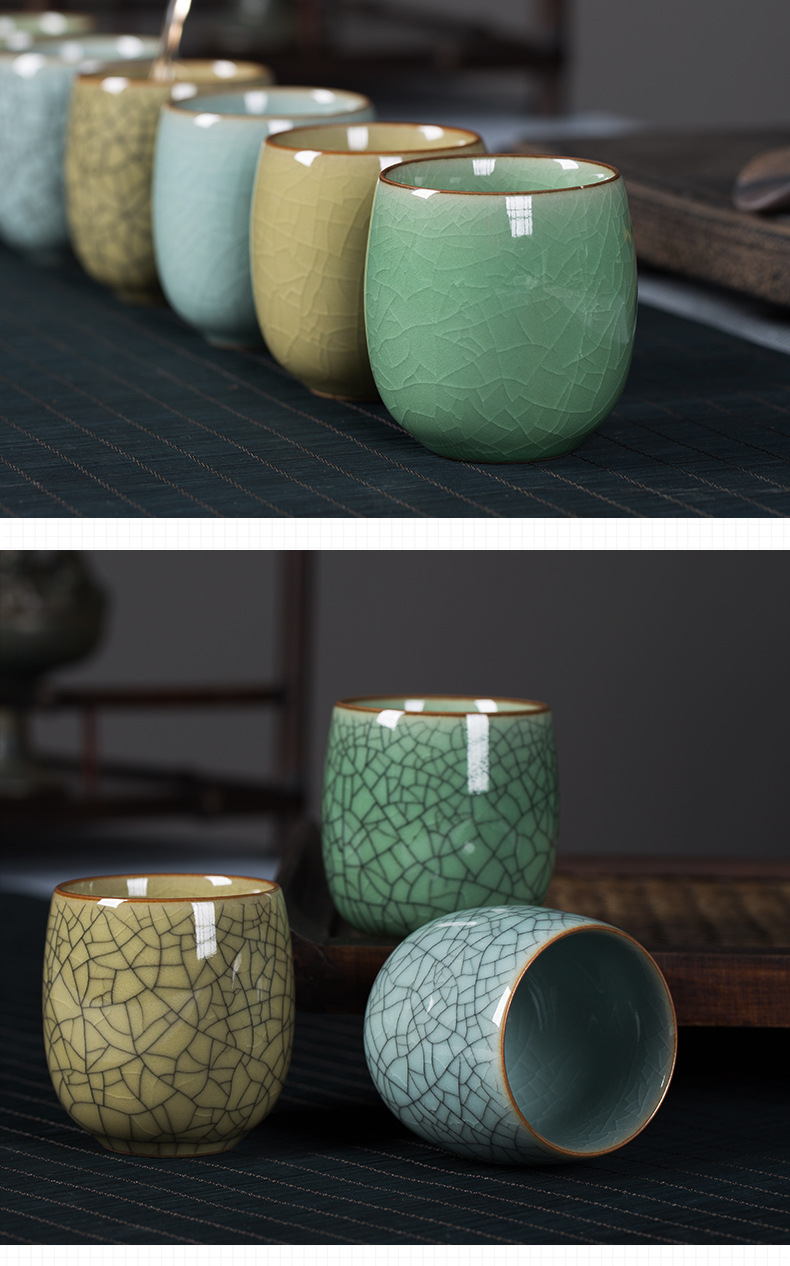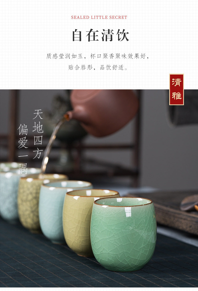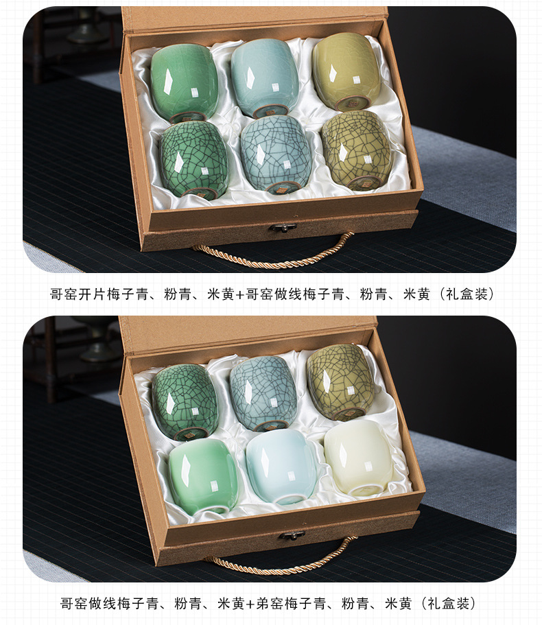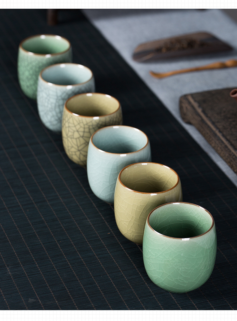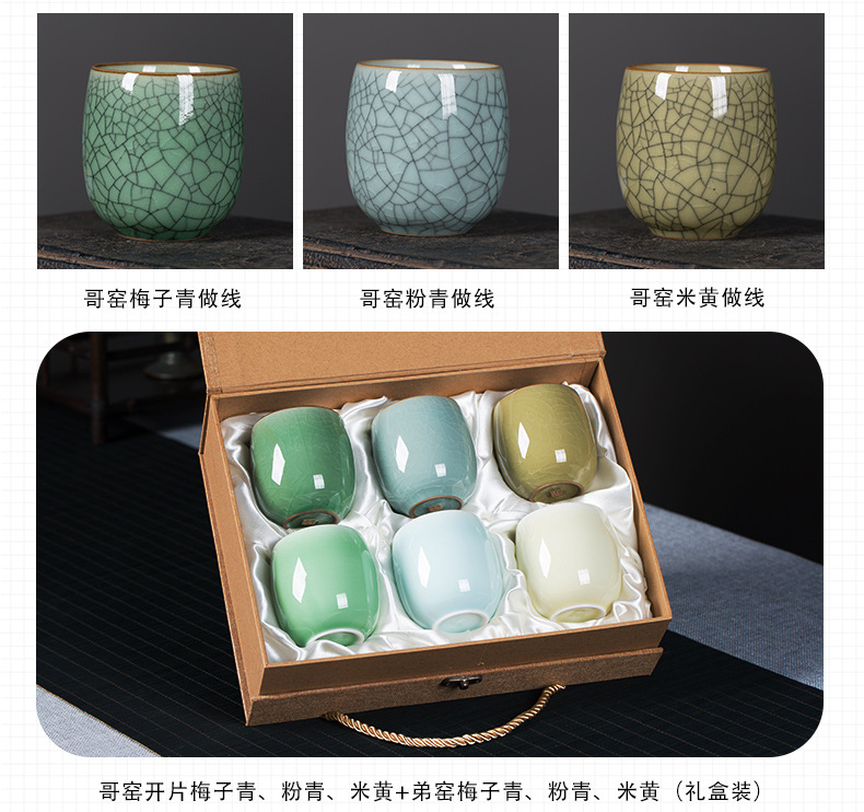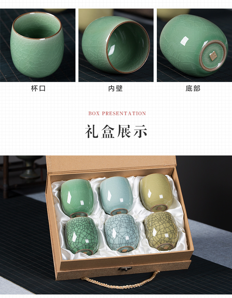 龙泉青瓷 家用陶瓷六色水杯礼品套装大号泡茶杯子 商务节日礼品盒