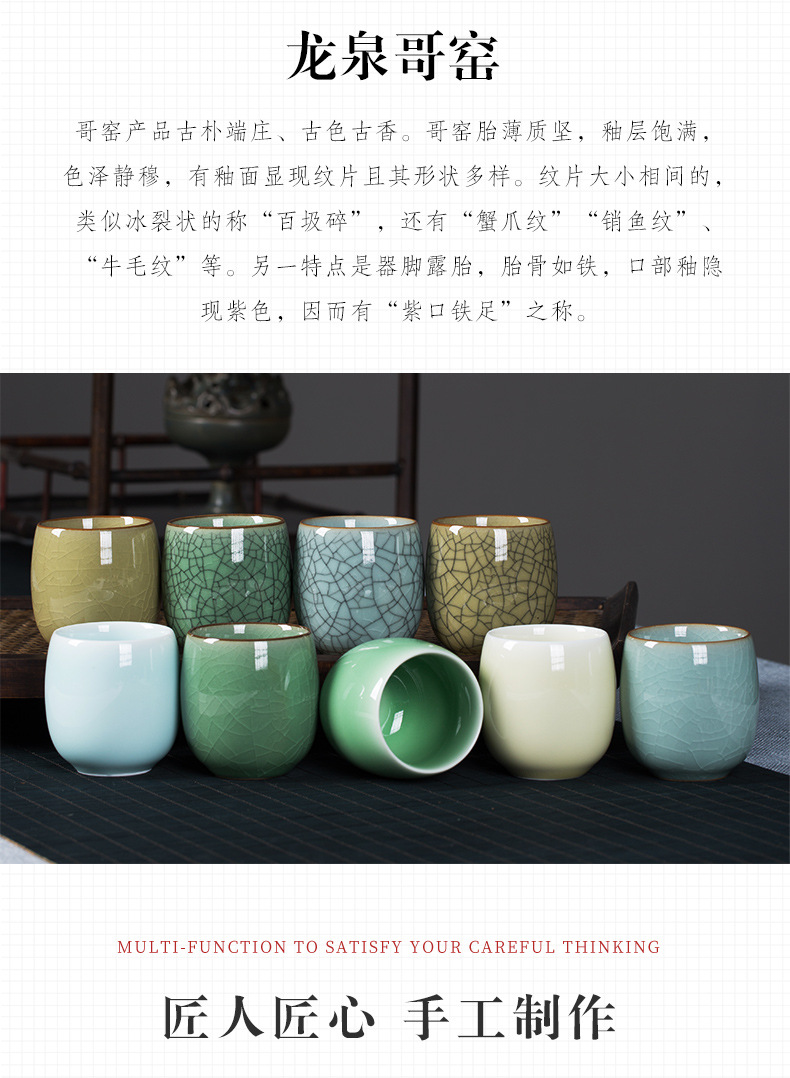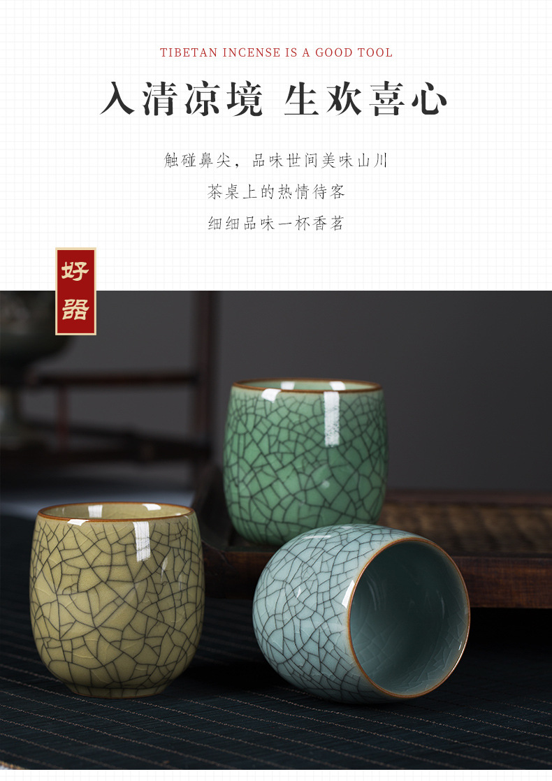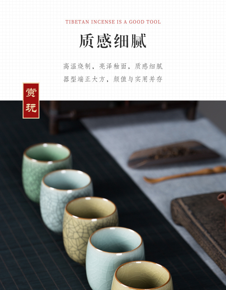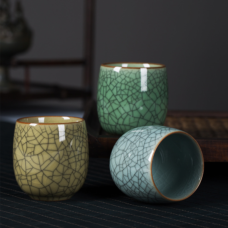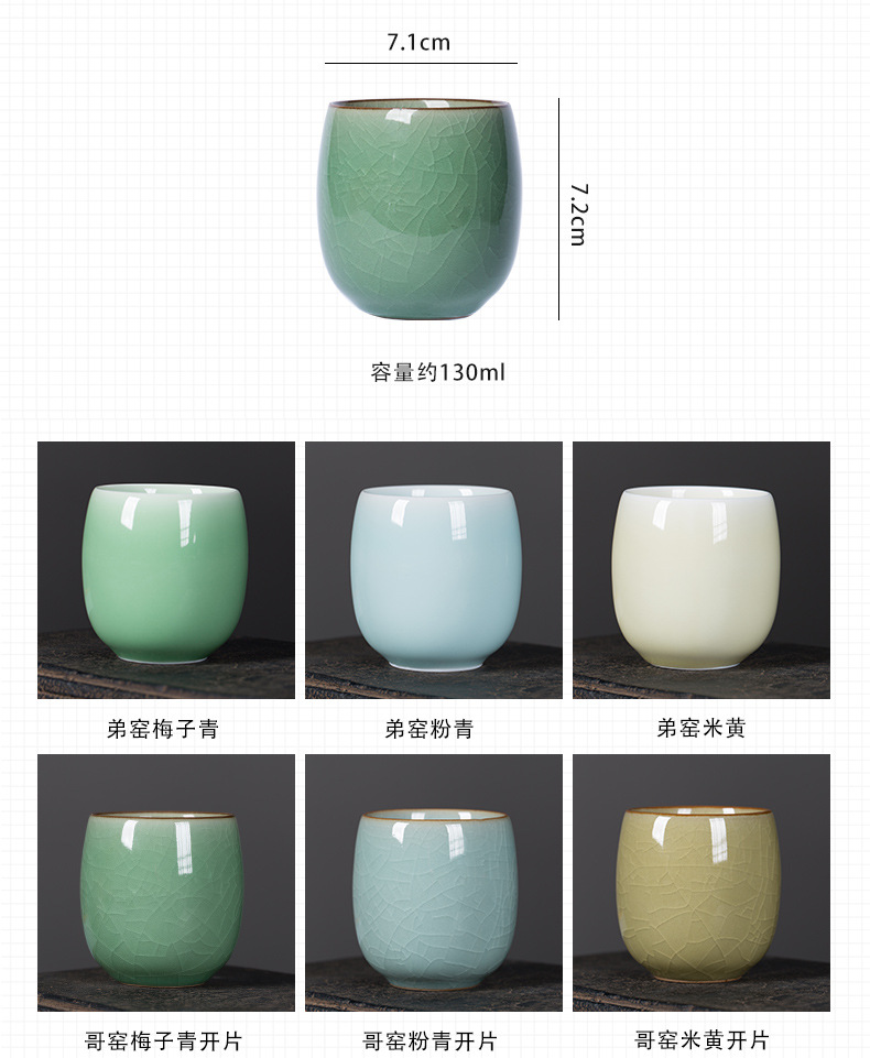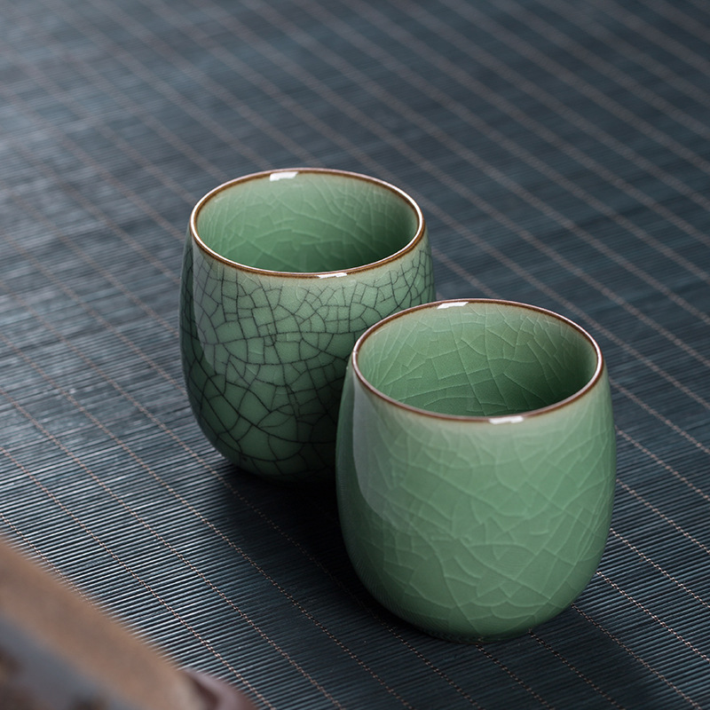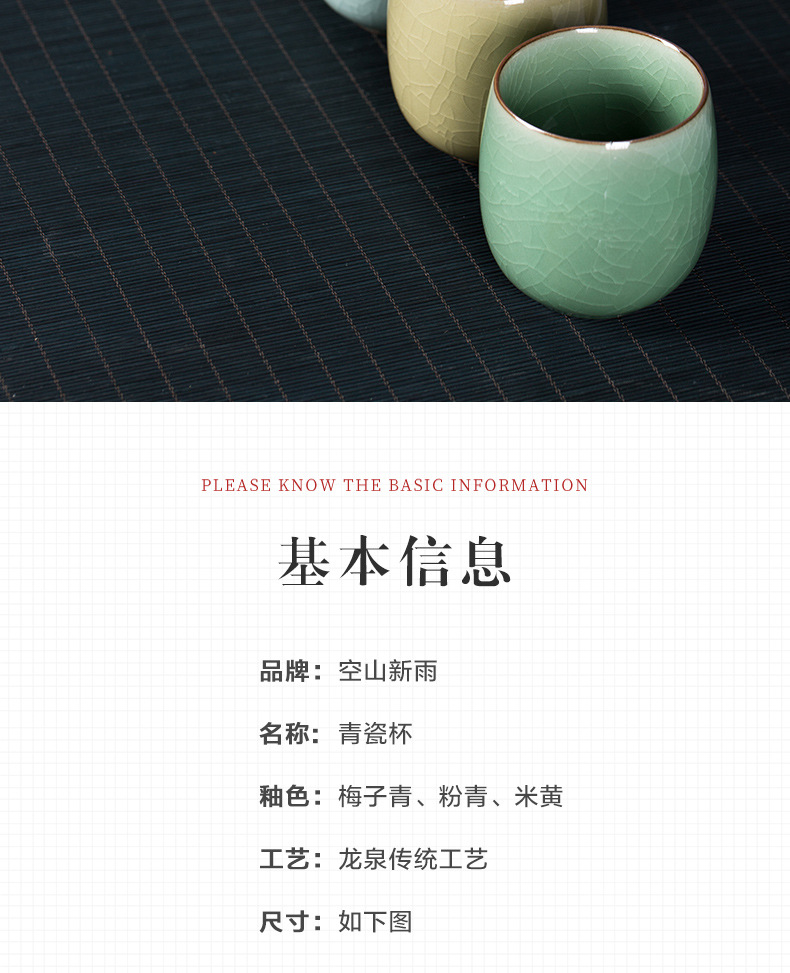 龙泉青瓷 家用陶瓷六色水杯礼品套装大号泡茶杯子 商务节日礼品盒
