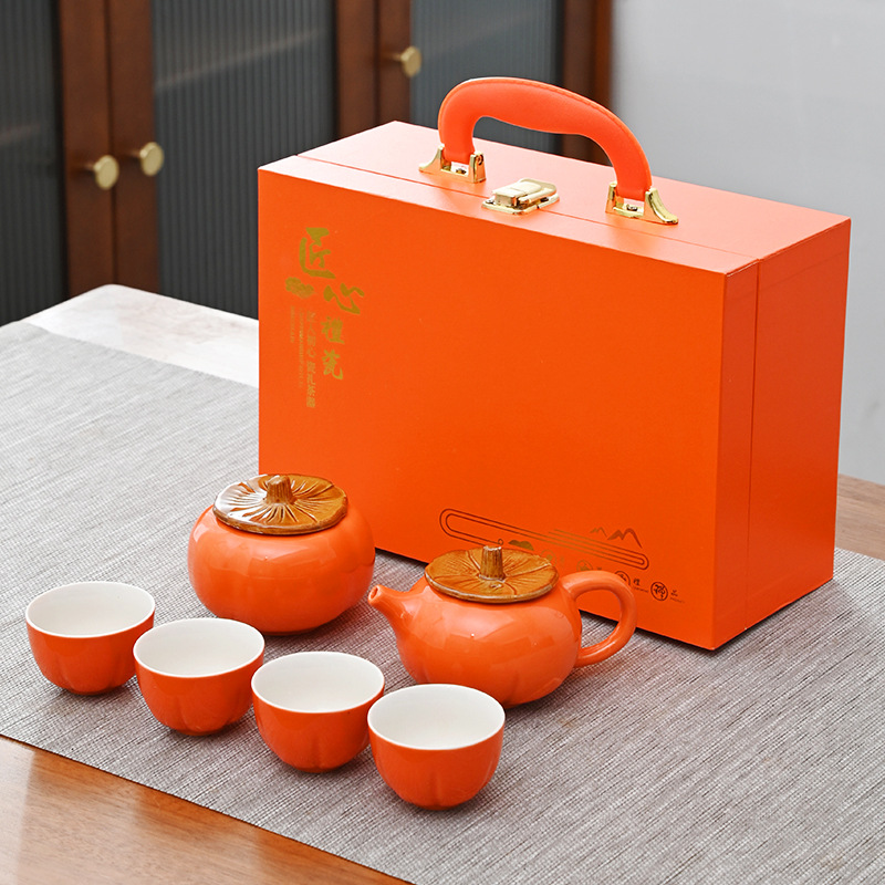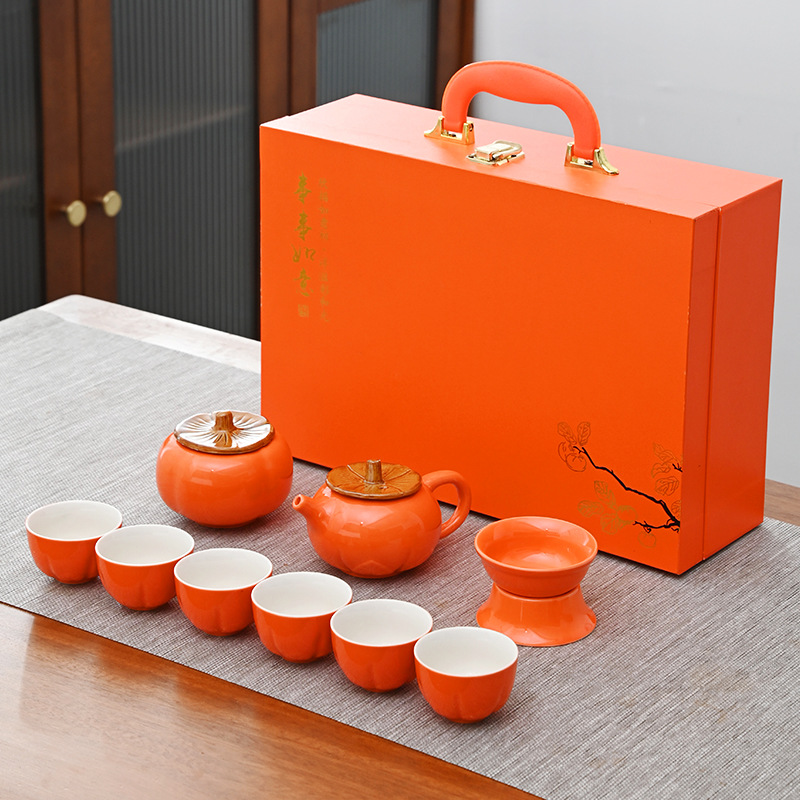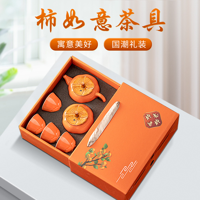 柿子事如意陶瓷茶具套装商务活动银行保险logo定 制伴随手礼品赠