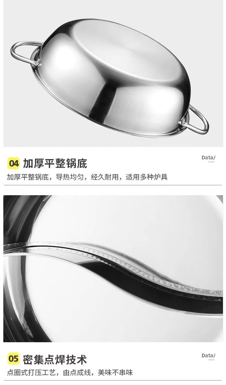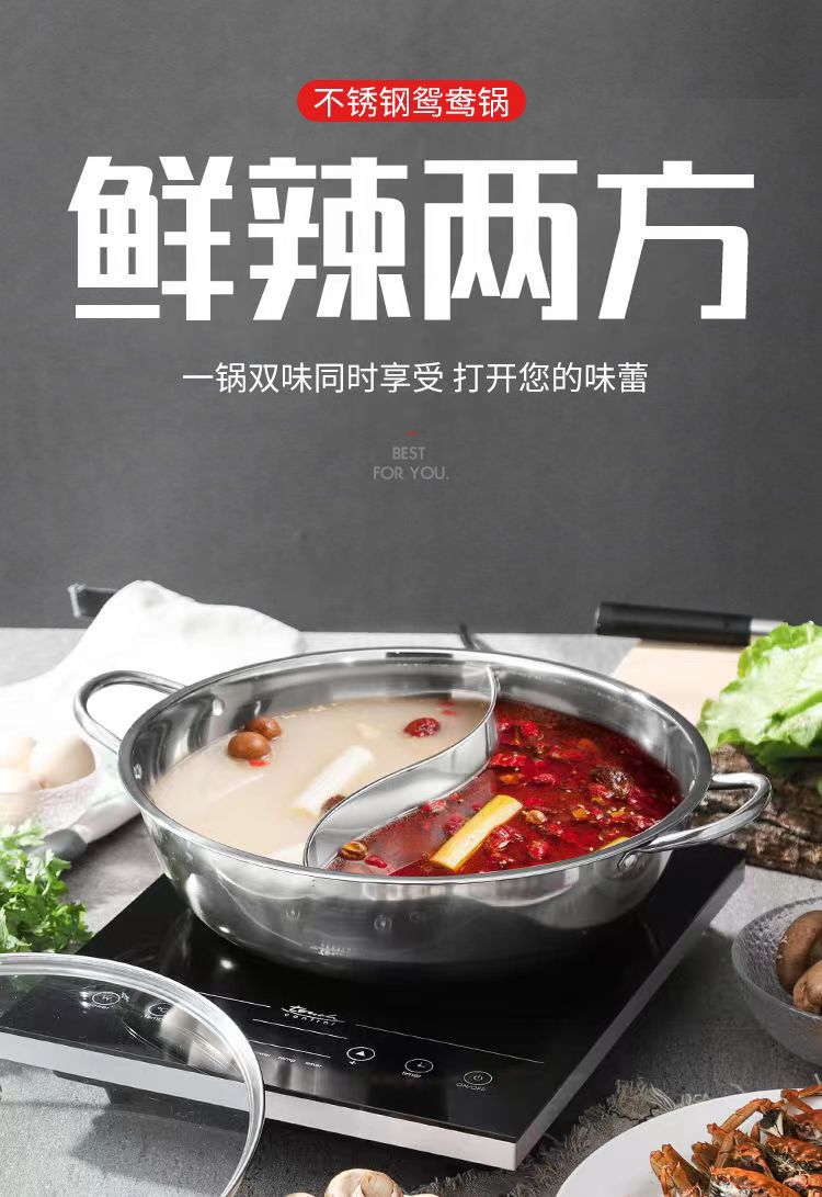 不锈钢火锅小肥羊鸳鸯锅特厚清汤锅二味隔锅双耳带盖汤锅家用商用