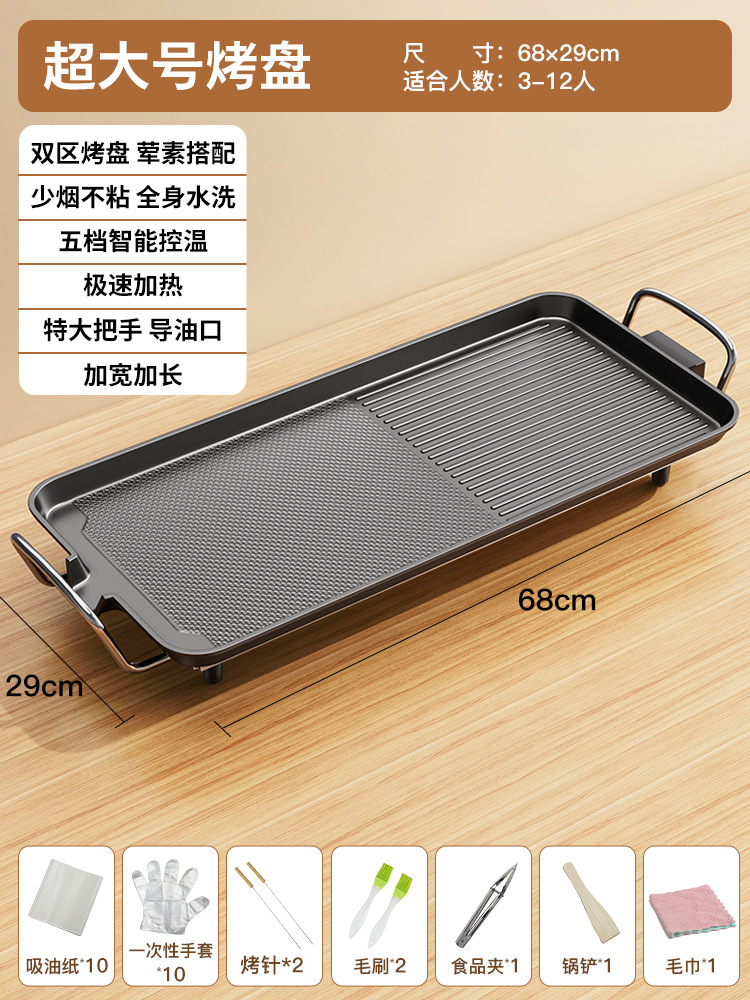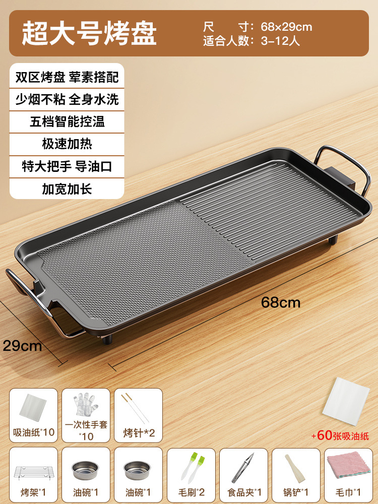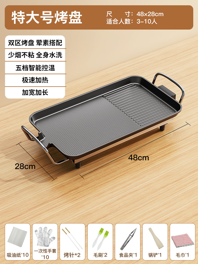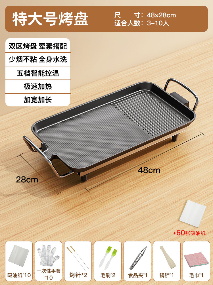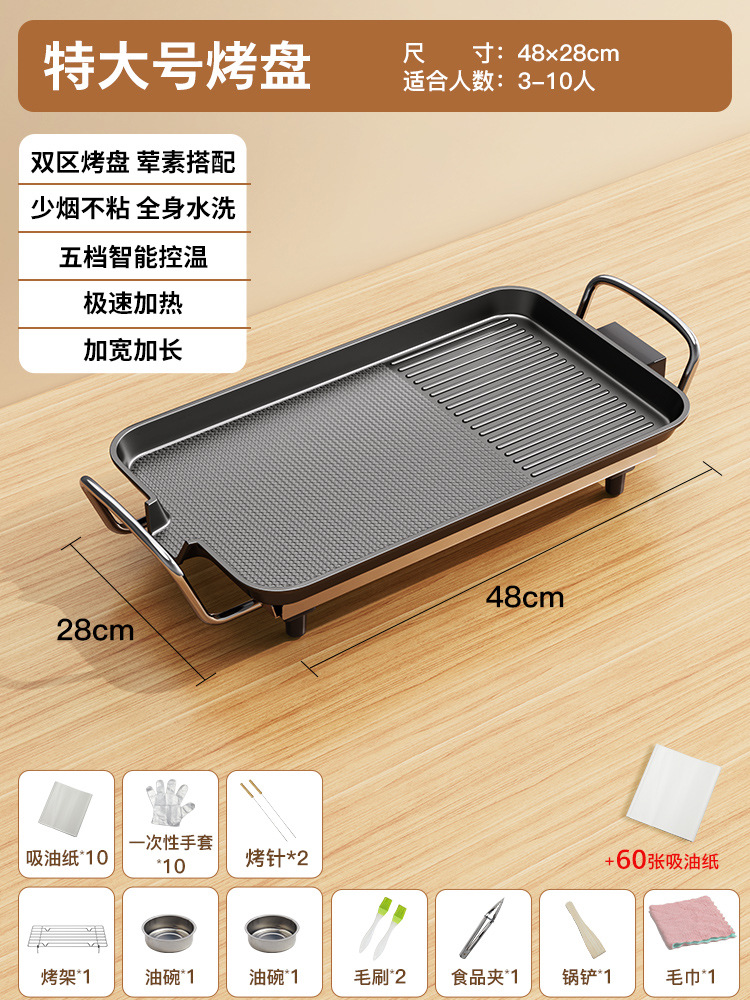 多功能韩式电烤盘室内电烤炉烤肉烧烤涮烤一体锅无烟不粘烤盘烙锅