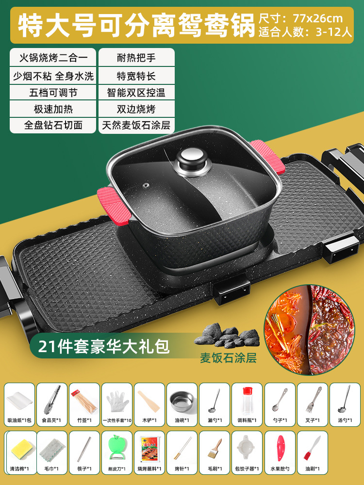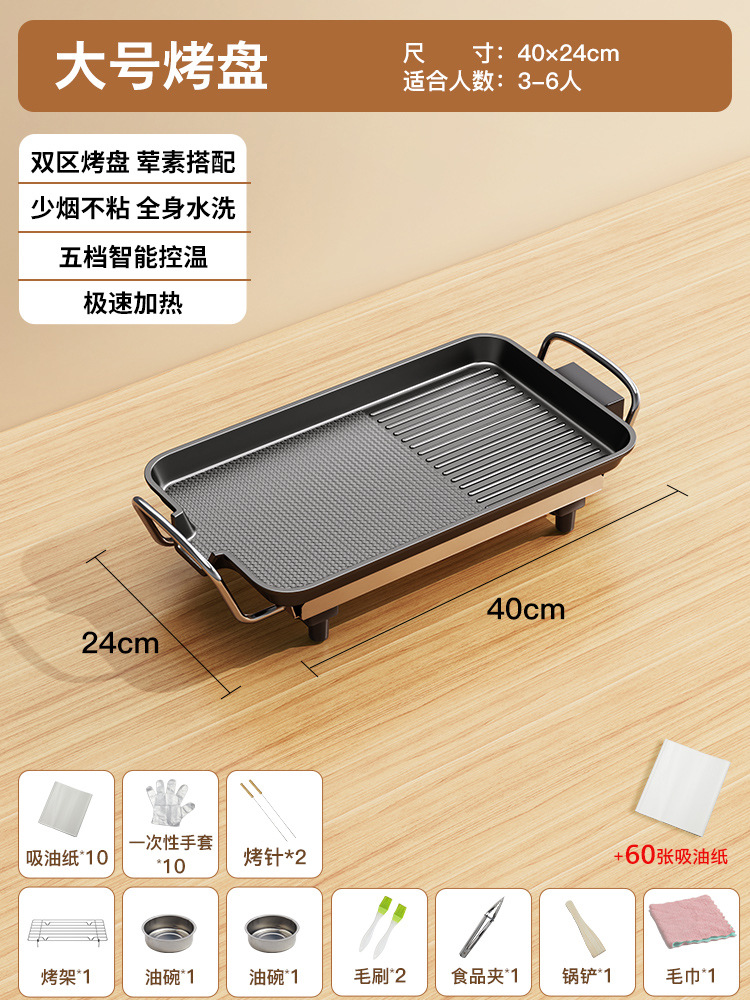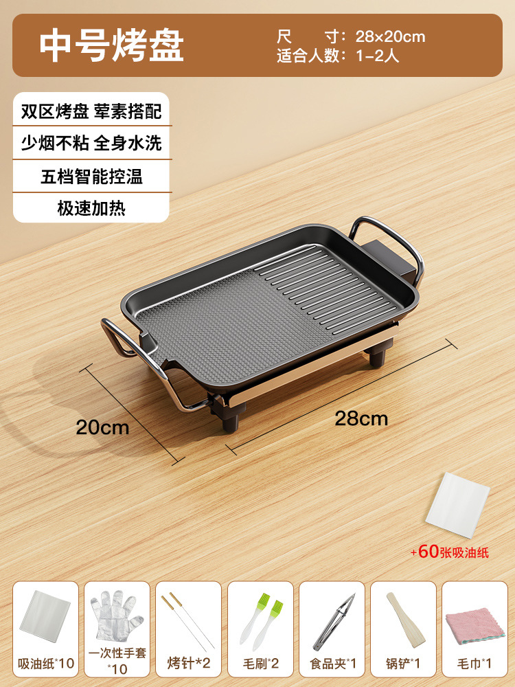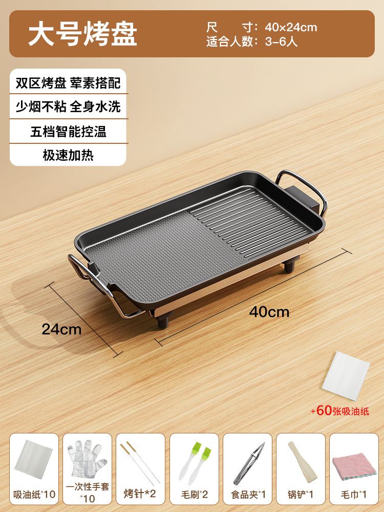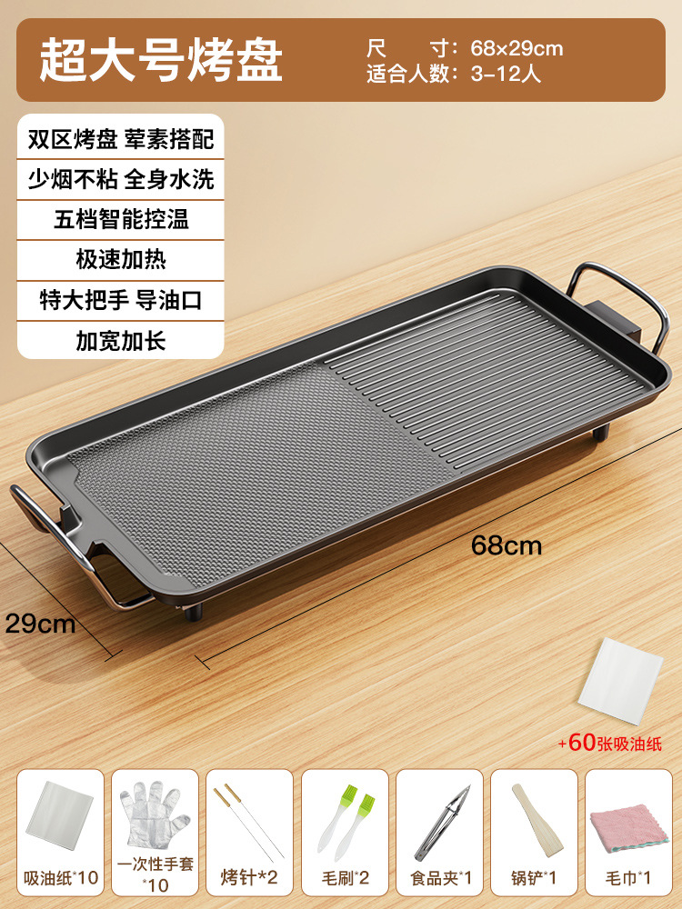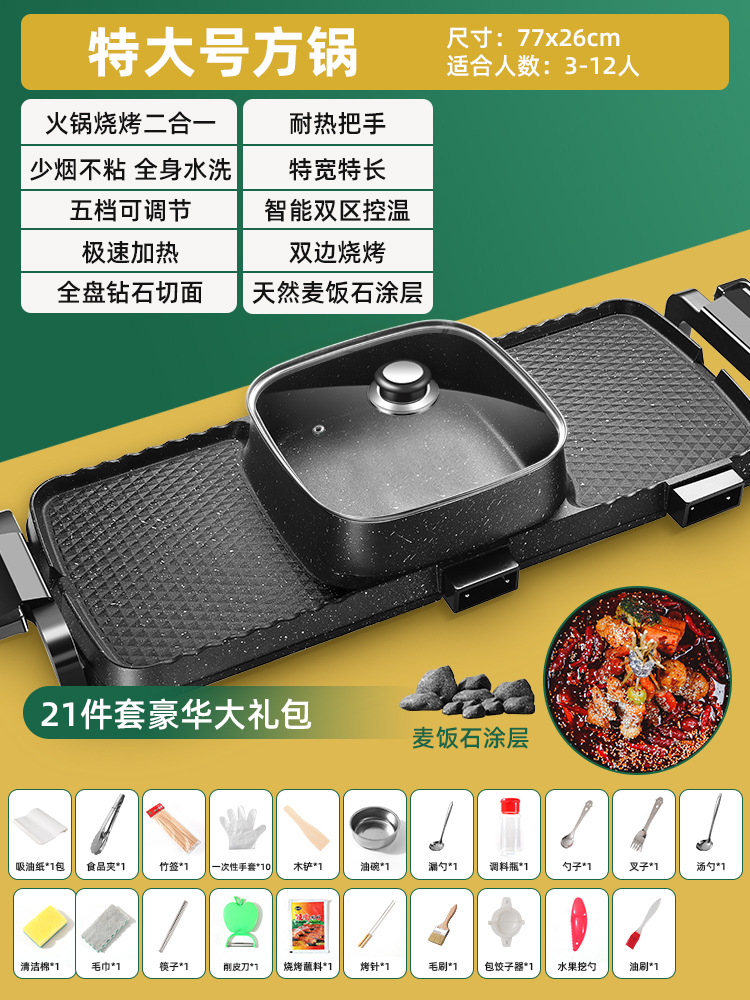 多功能韩式电烤盘室内电烤炉烤肉烧烤涮烤一体锅无烟不粘烤盘烙锅