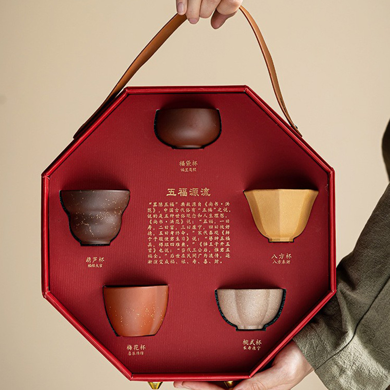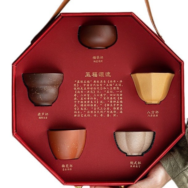 文创礼品紫砂五福杯主人茶杯礼盒装高档实用送领导伴手礼logo
