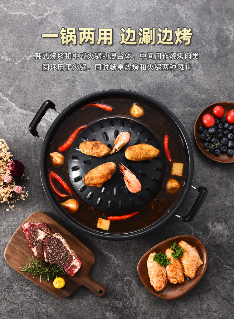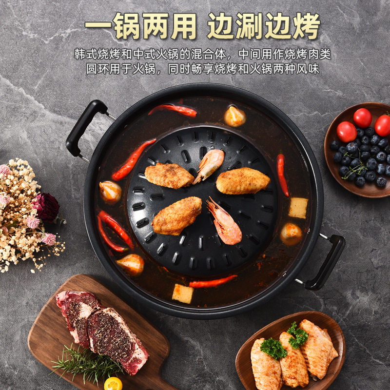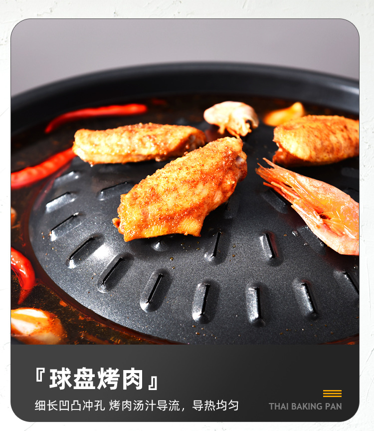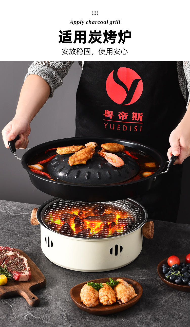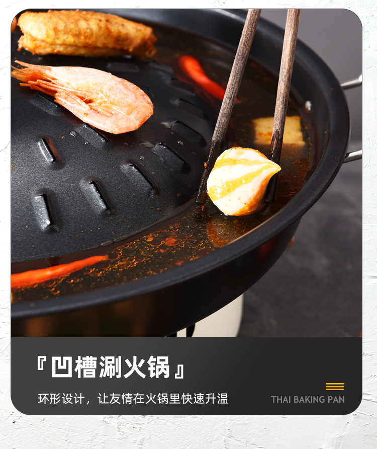 粤帝斯直供专用不粘锅泰国火锅烤涮炭烤烤肉锅圆形火锅烧烤一体锅