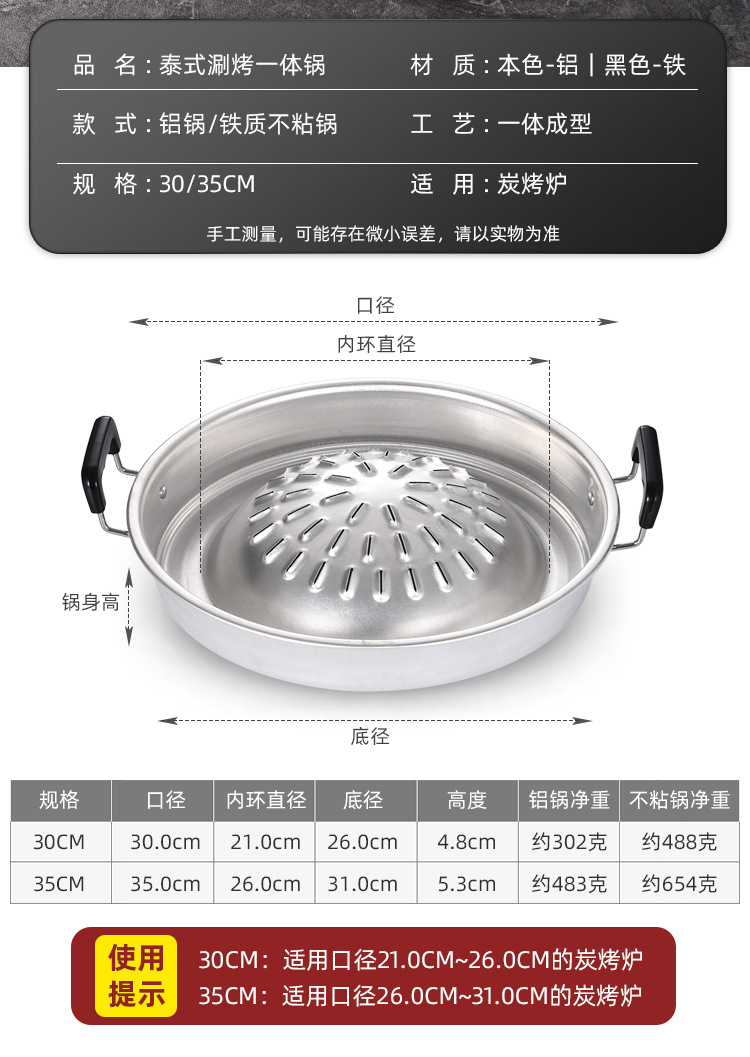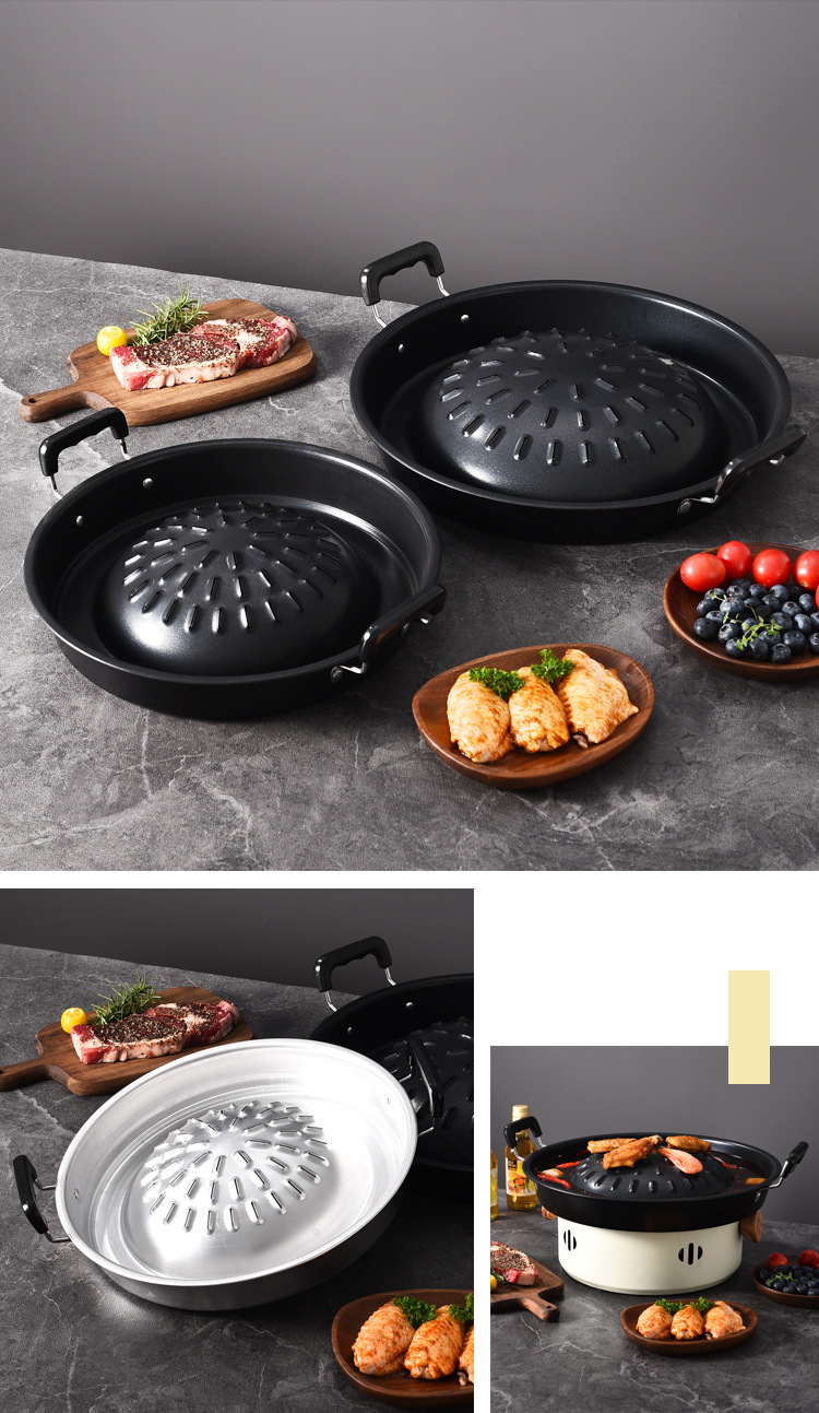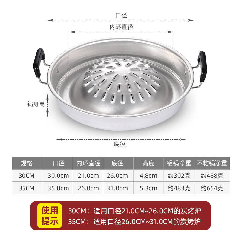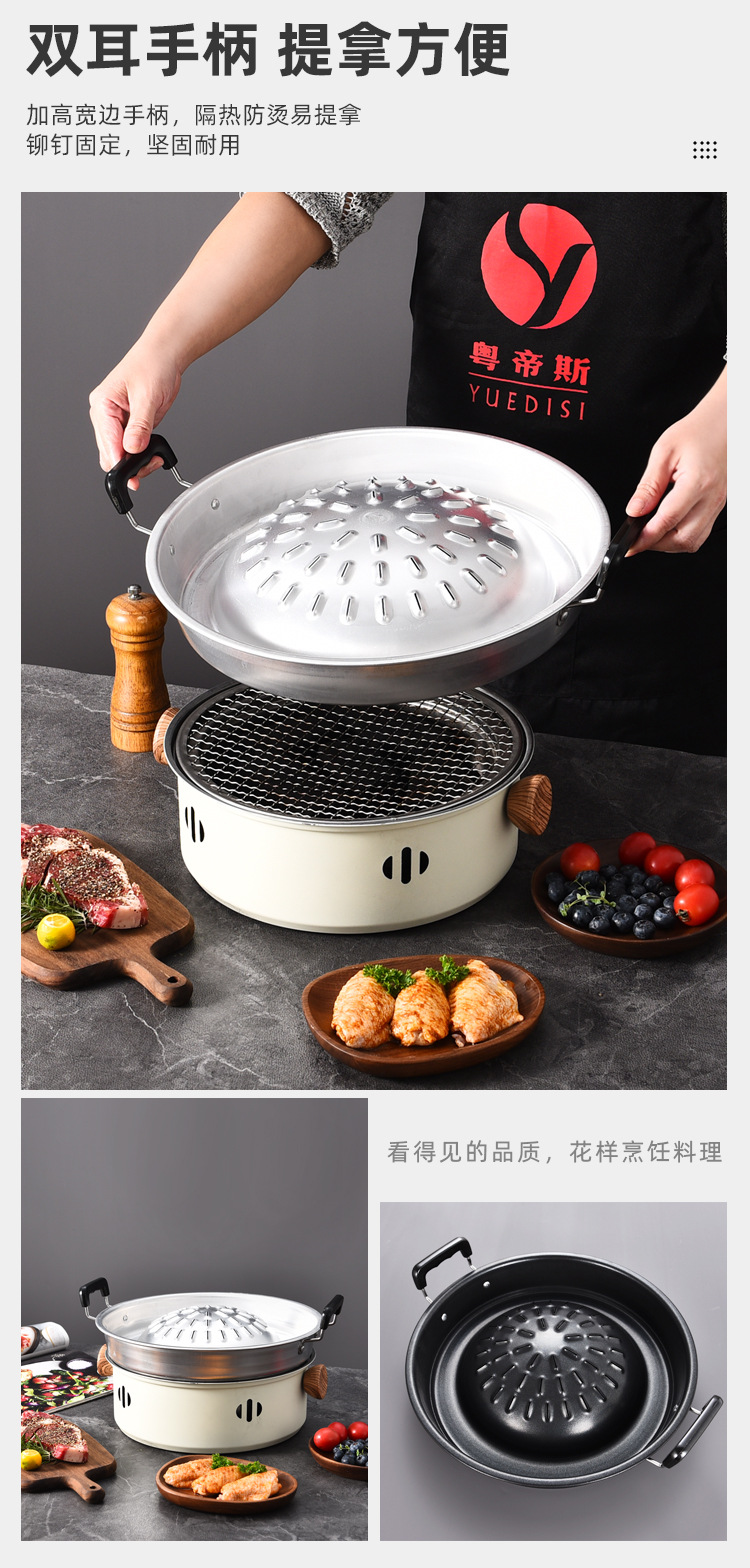 粤帝斯直供专用不粘锅泰国火锅烤涮炭烤烤肉锅圆形火锅烧烤一体锅