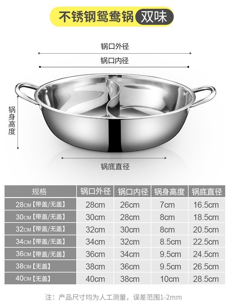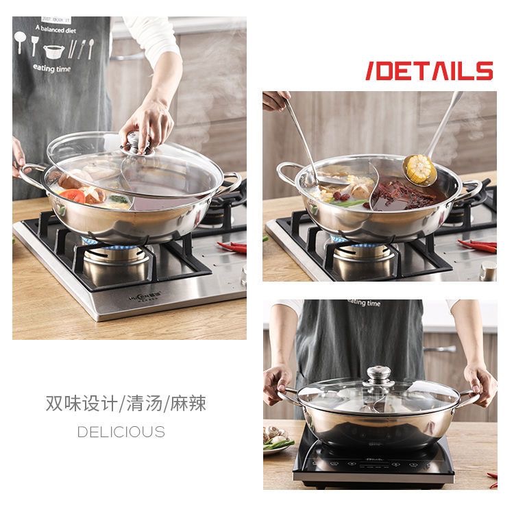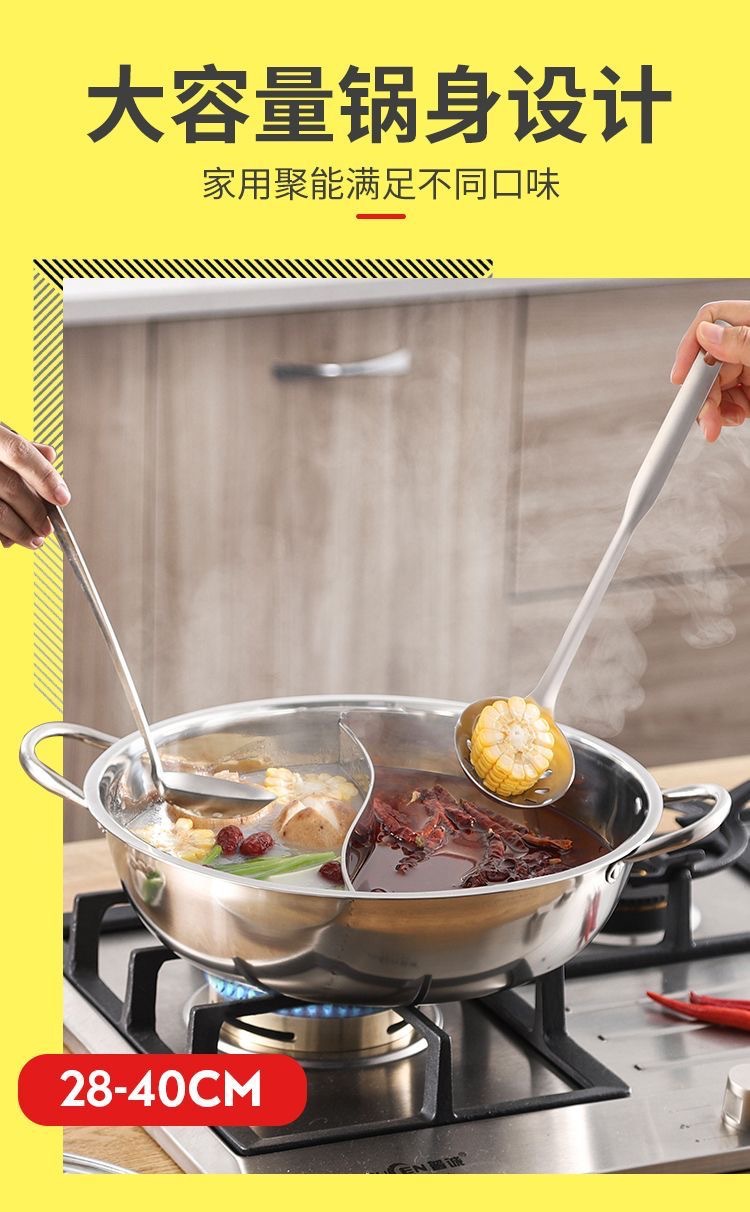 加厚鸳鸯锅火锅盆不锈钢鸳鸯锅电磁炉专用火锅锅家用鸳鸯清汤火锅