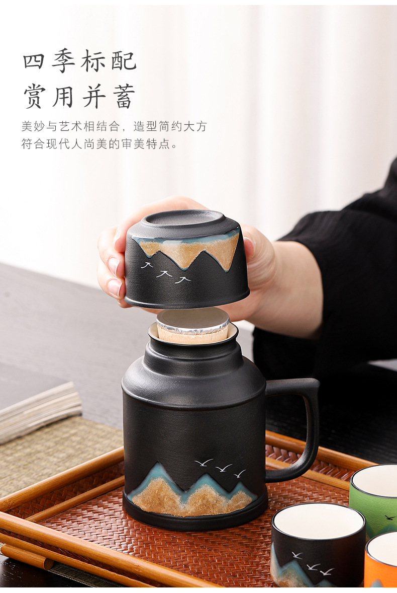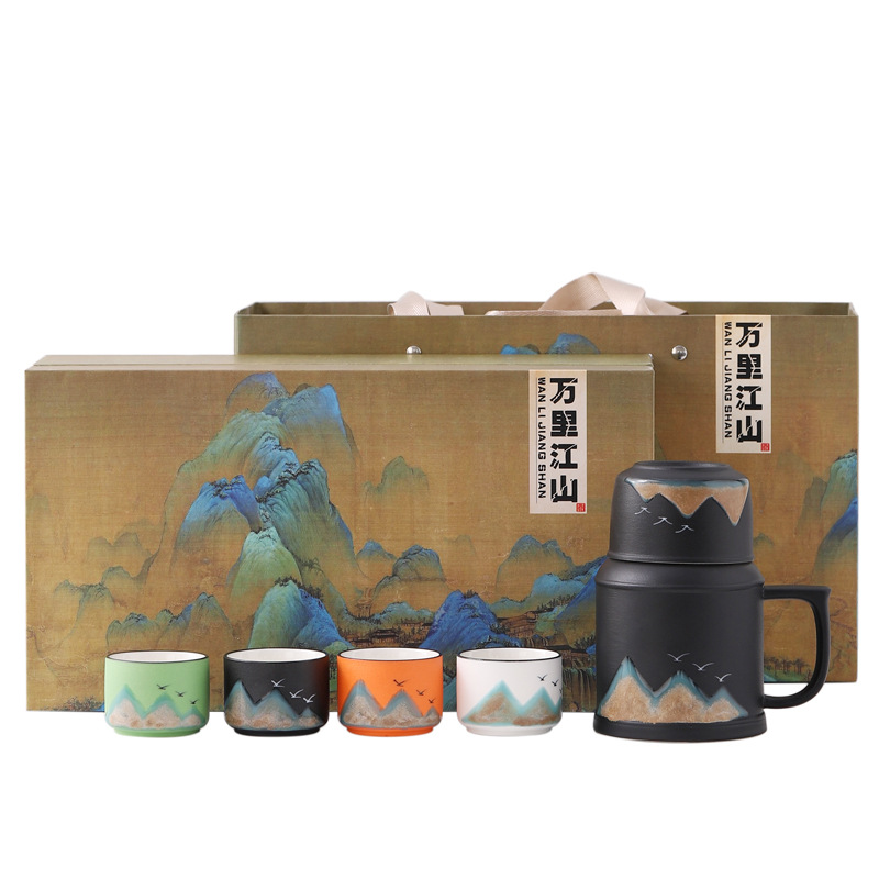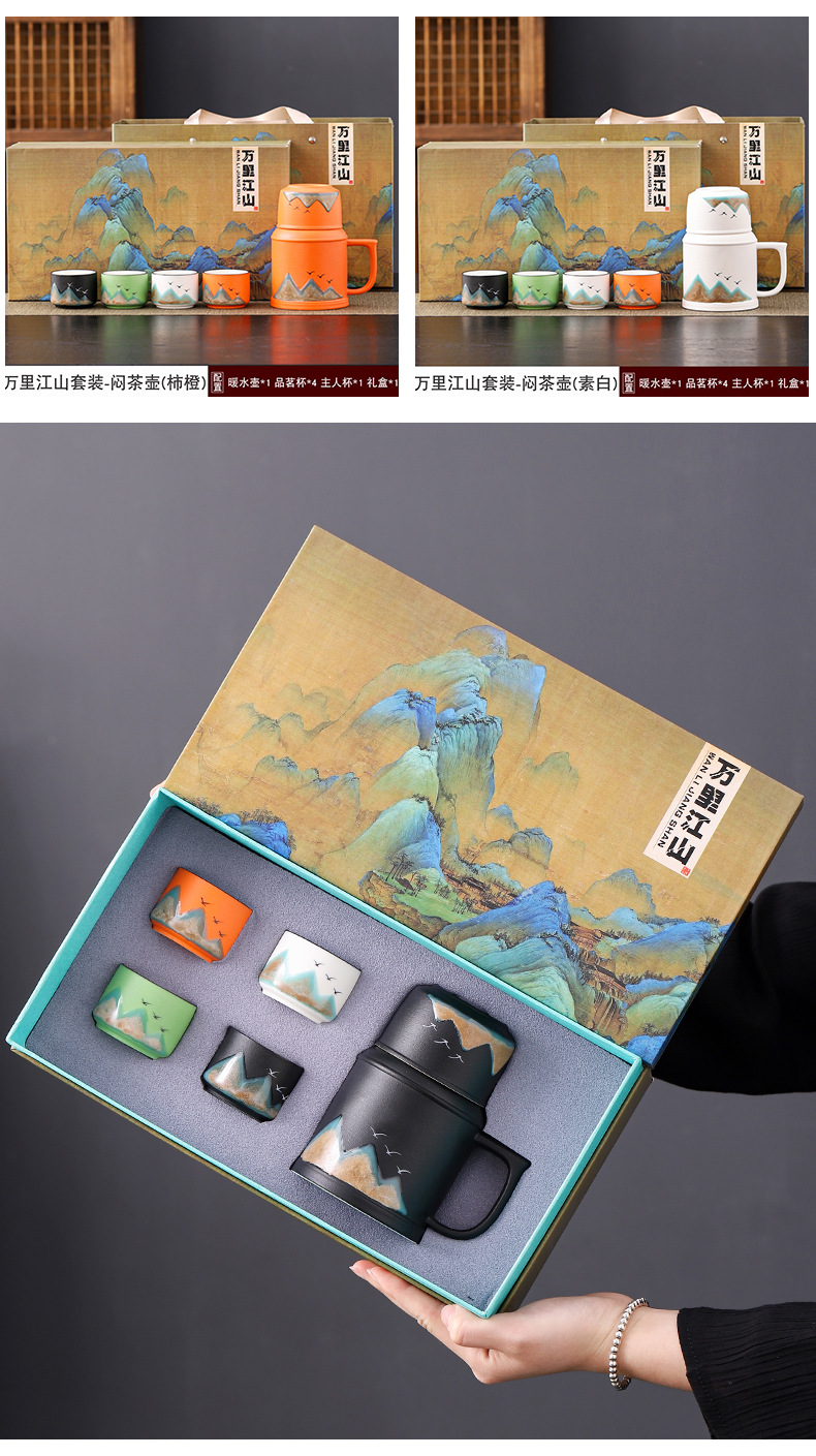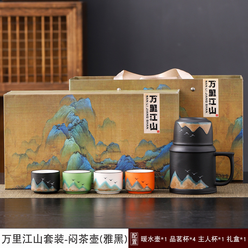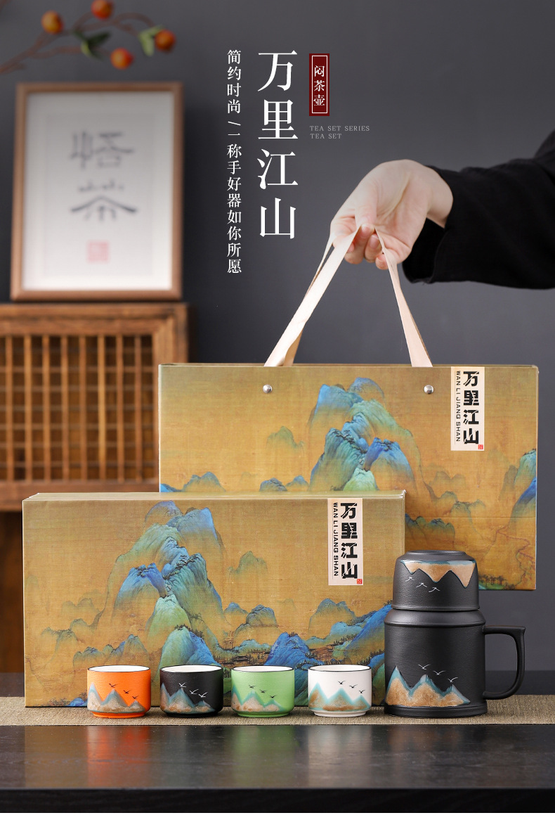 远山保温闷茶壶中国风户外办公室带盖泡茶杯大容量茶壶马克杯礼盒