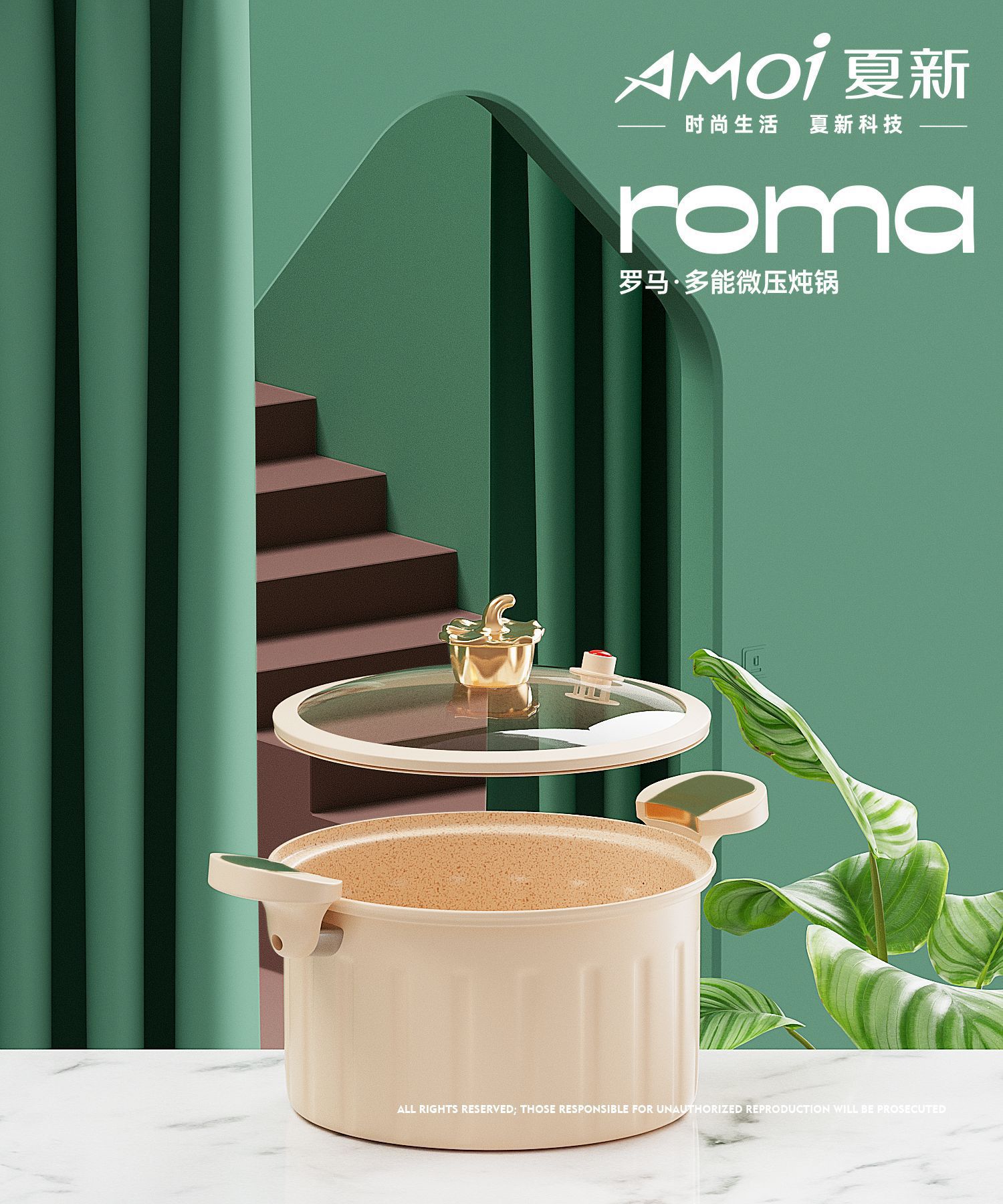 夏新罗马微压锅家用高颜值大容量微压汤锅多功能不粘料理炖锅批发