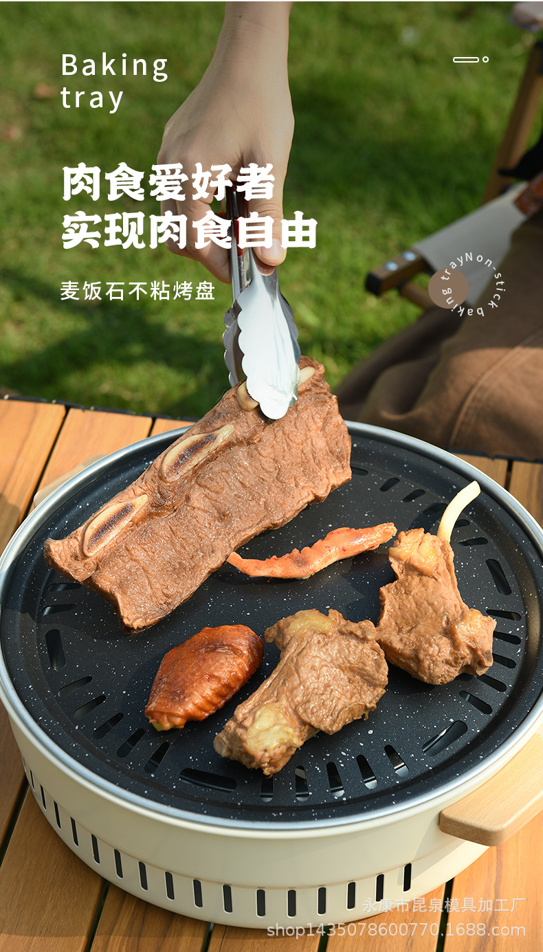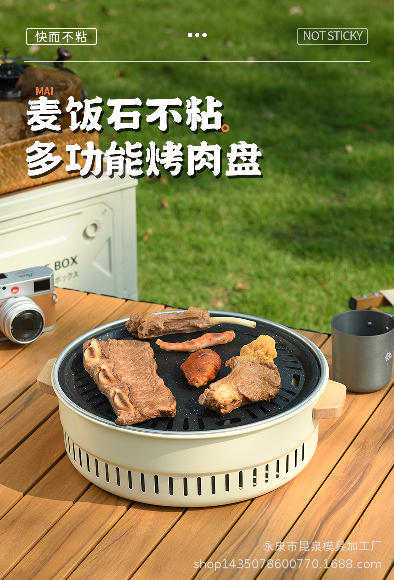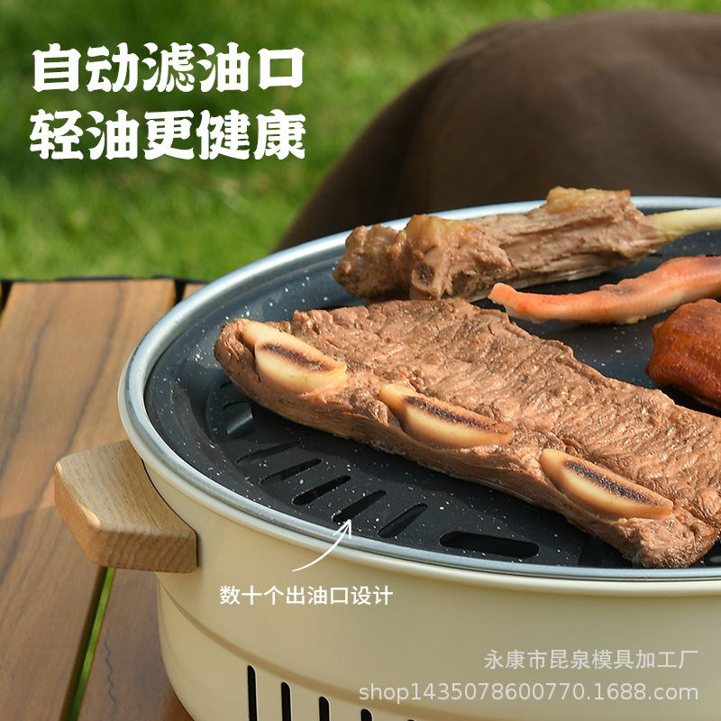 厂家直营烤肉锅不粘韩式烤肉盘户外烧烤炉煎肉盘碳烤围炉煮茶烤盘