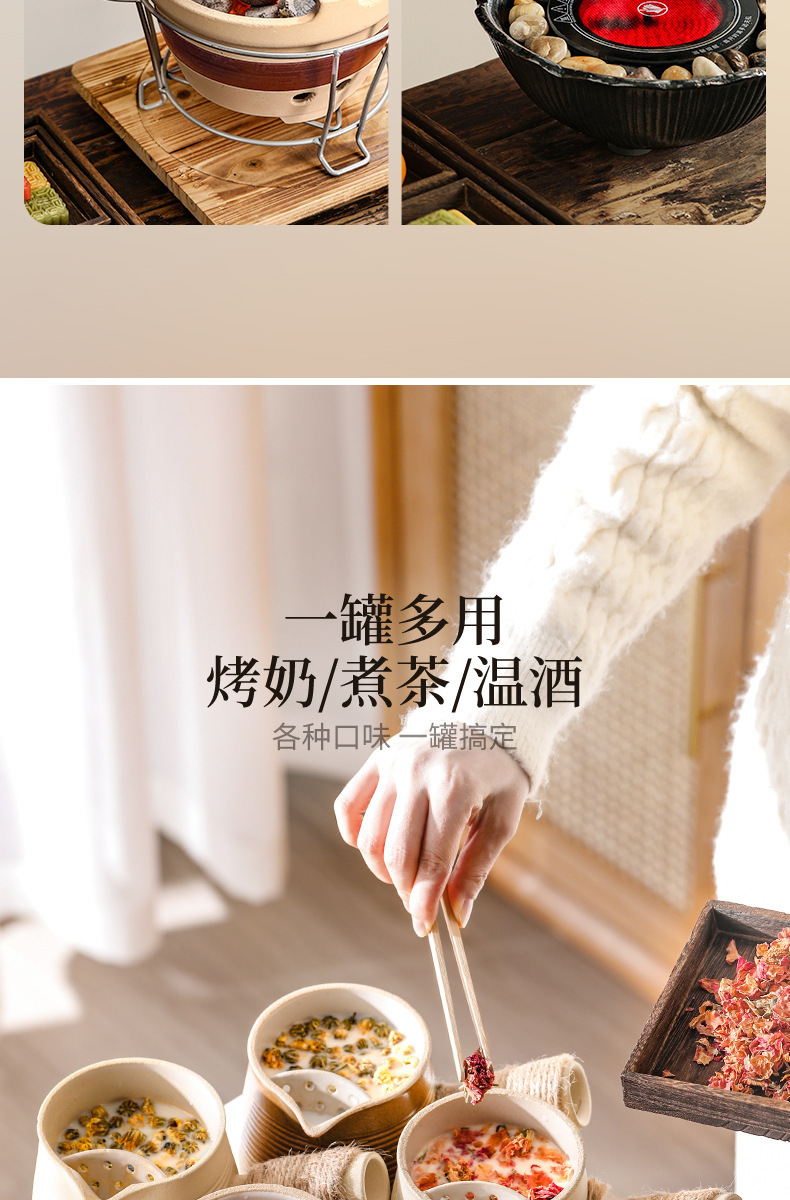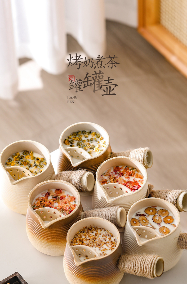 烤奶茶罐陶壶罐罐壶网红家用配件户外围炉煮茶器具围炉煮茶侧把壶