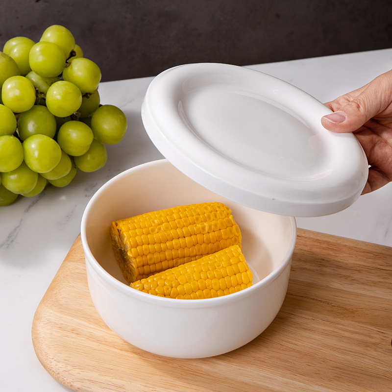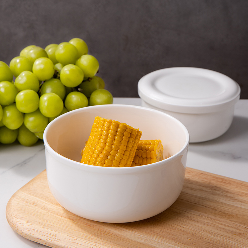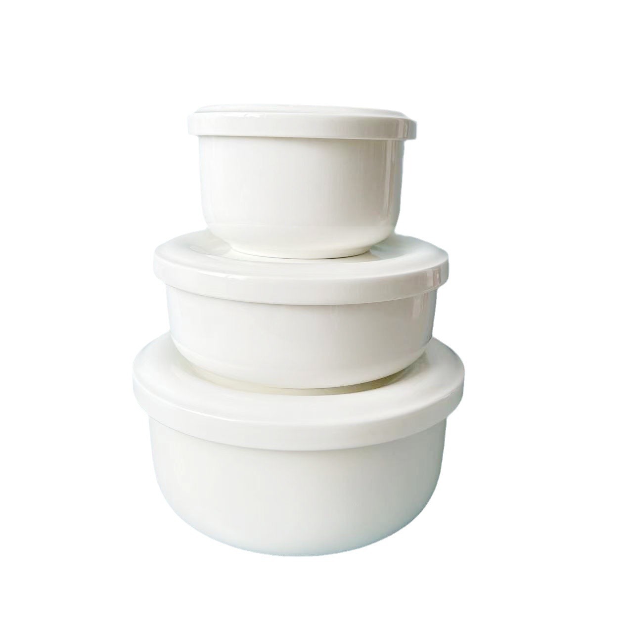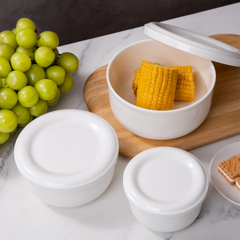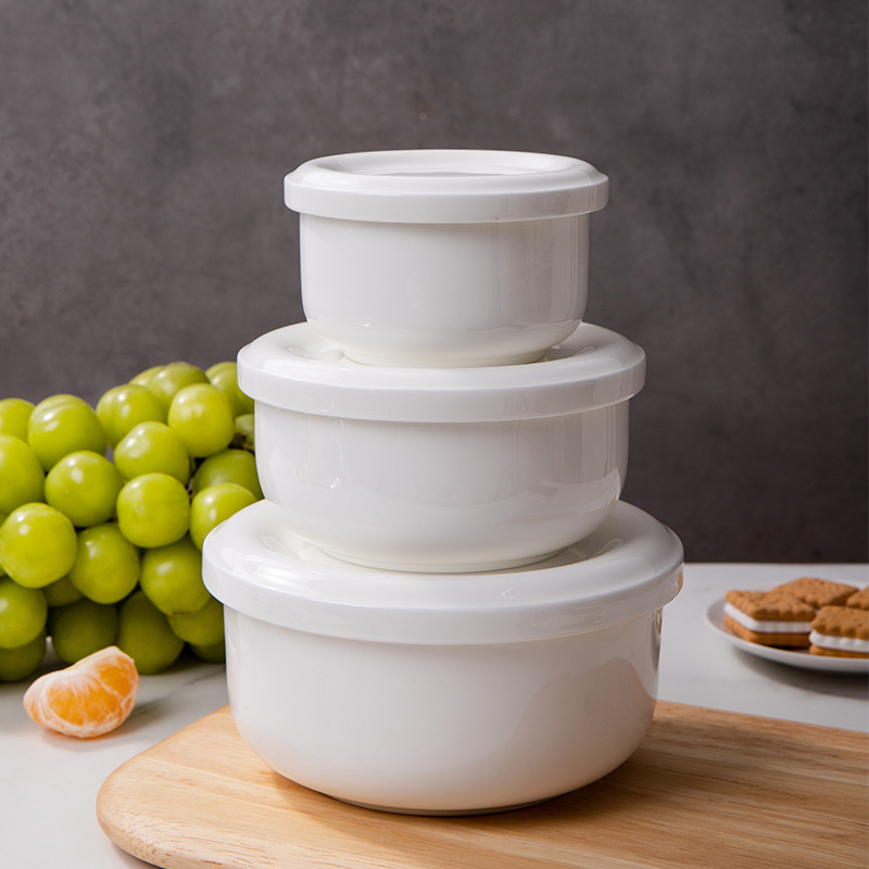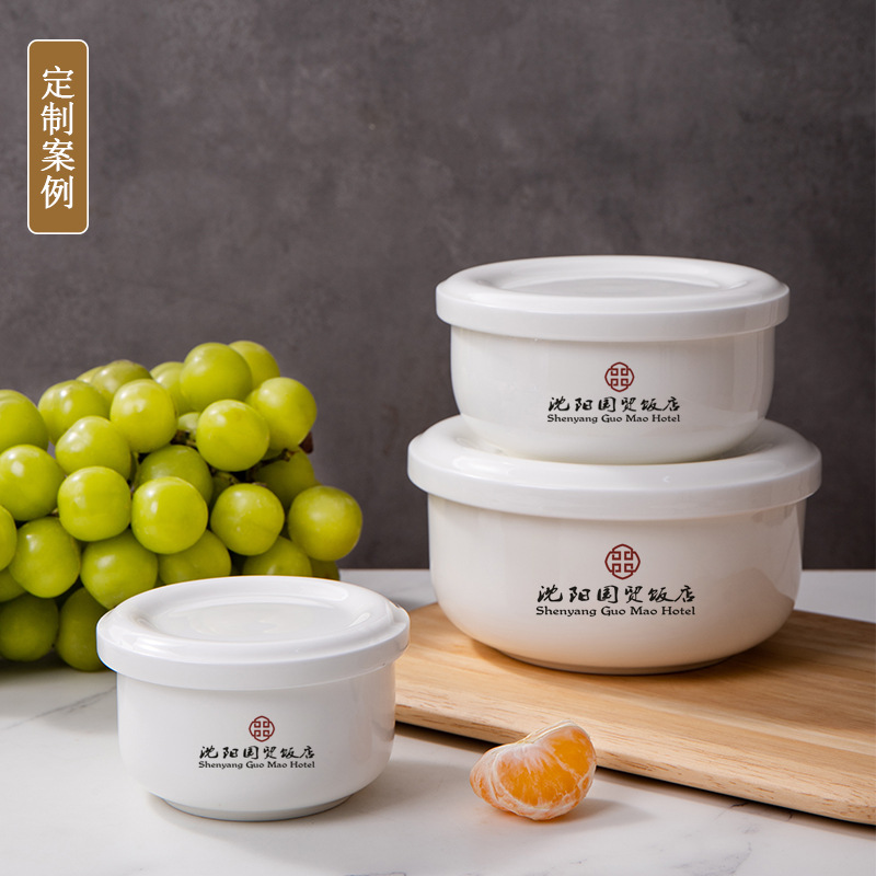 唐山陶瓷家用带盖三件套冰箱储存密封碗微波炉适用礼品骨瓷保鲜碗