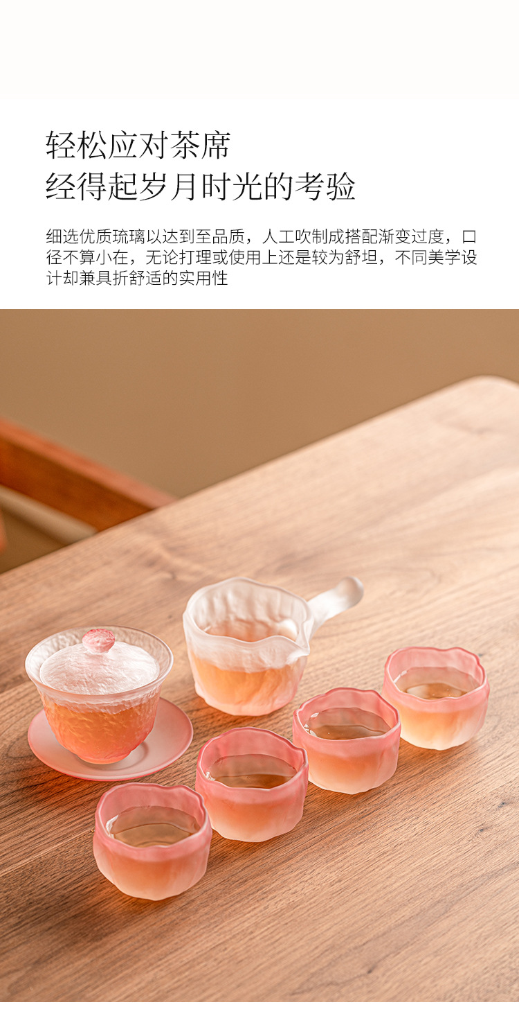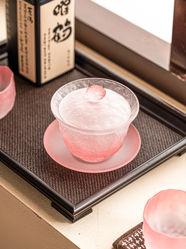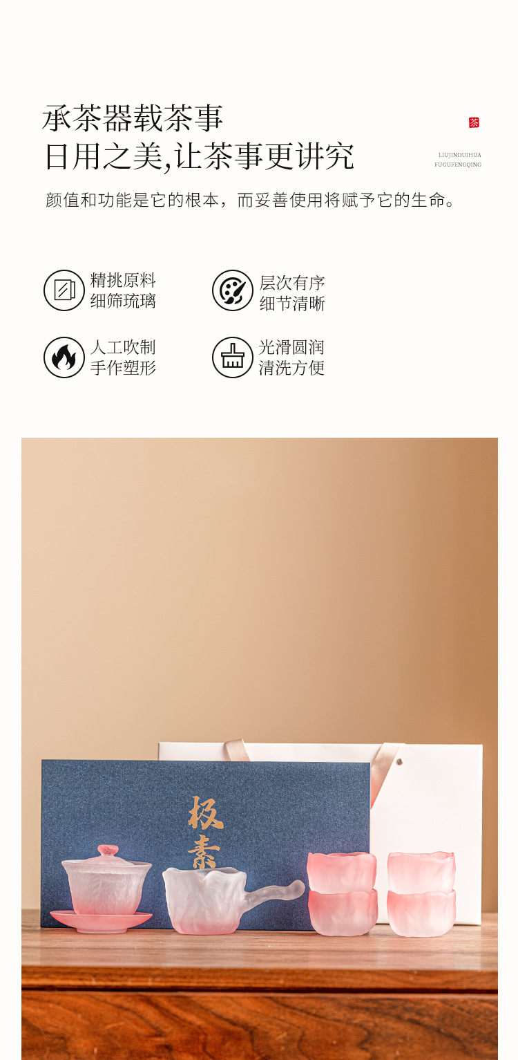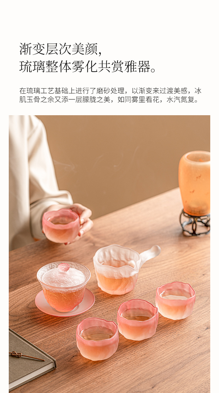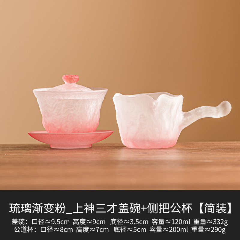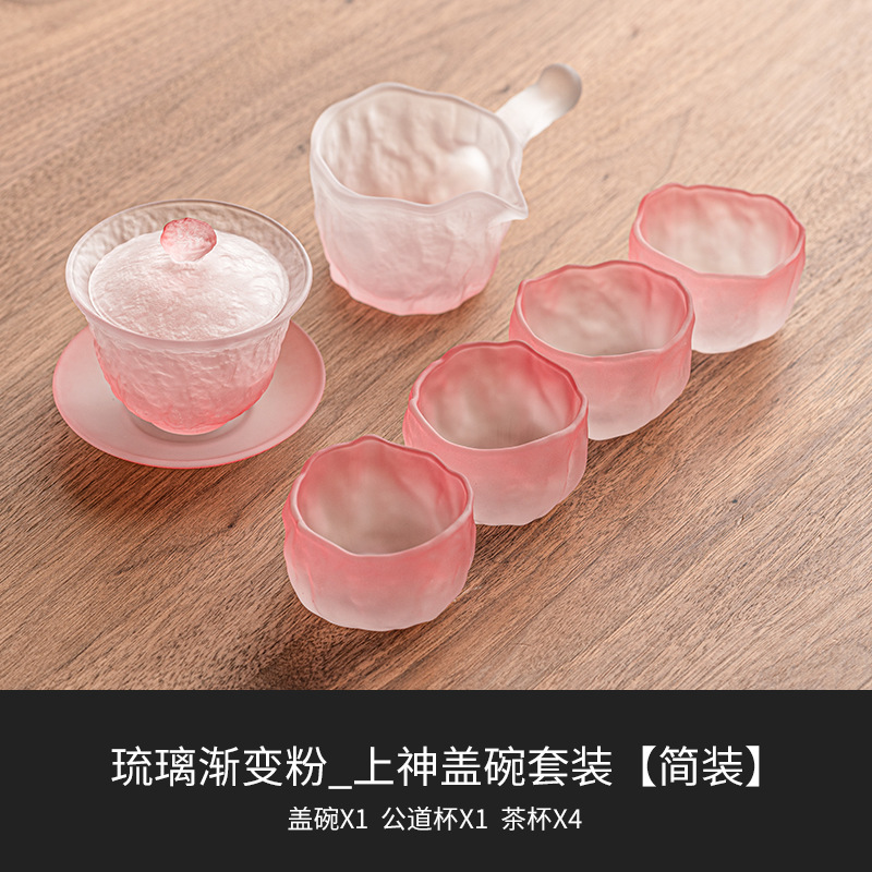 厂家上神琉璃功夫茶具套装渐变粉女士盖碗茶杯不烫手磨砂泡茶整套