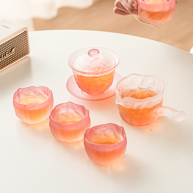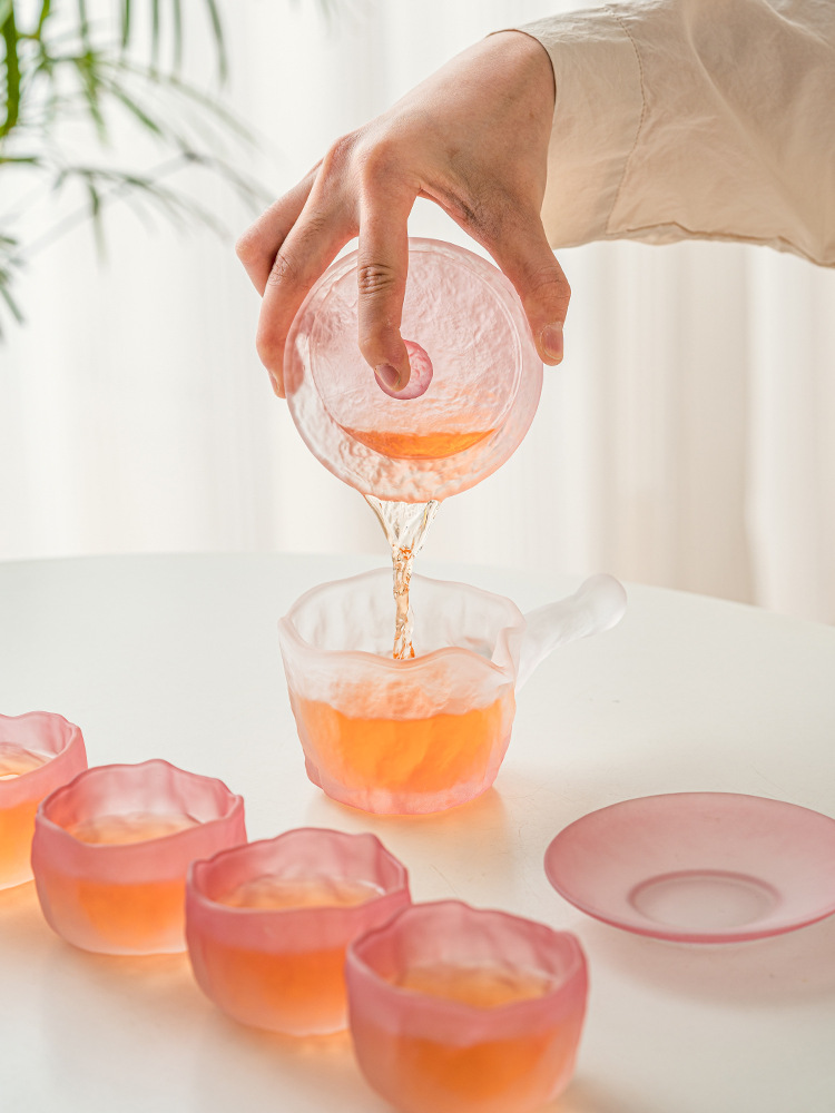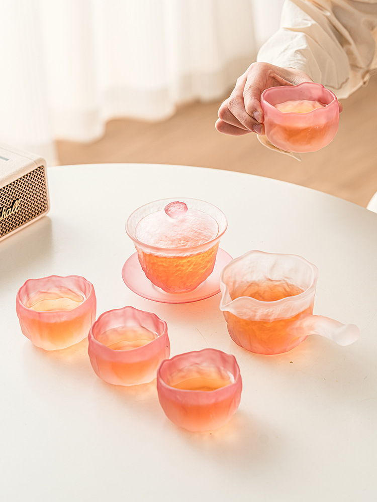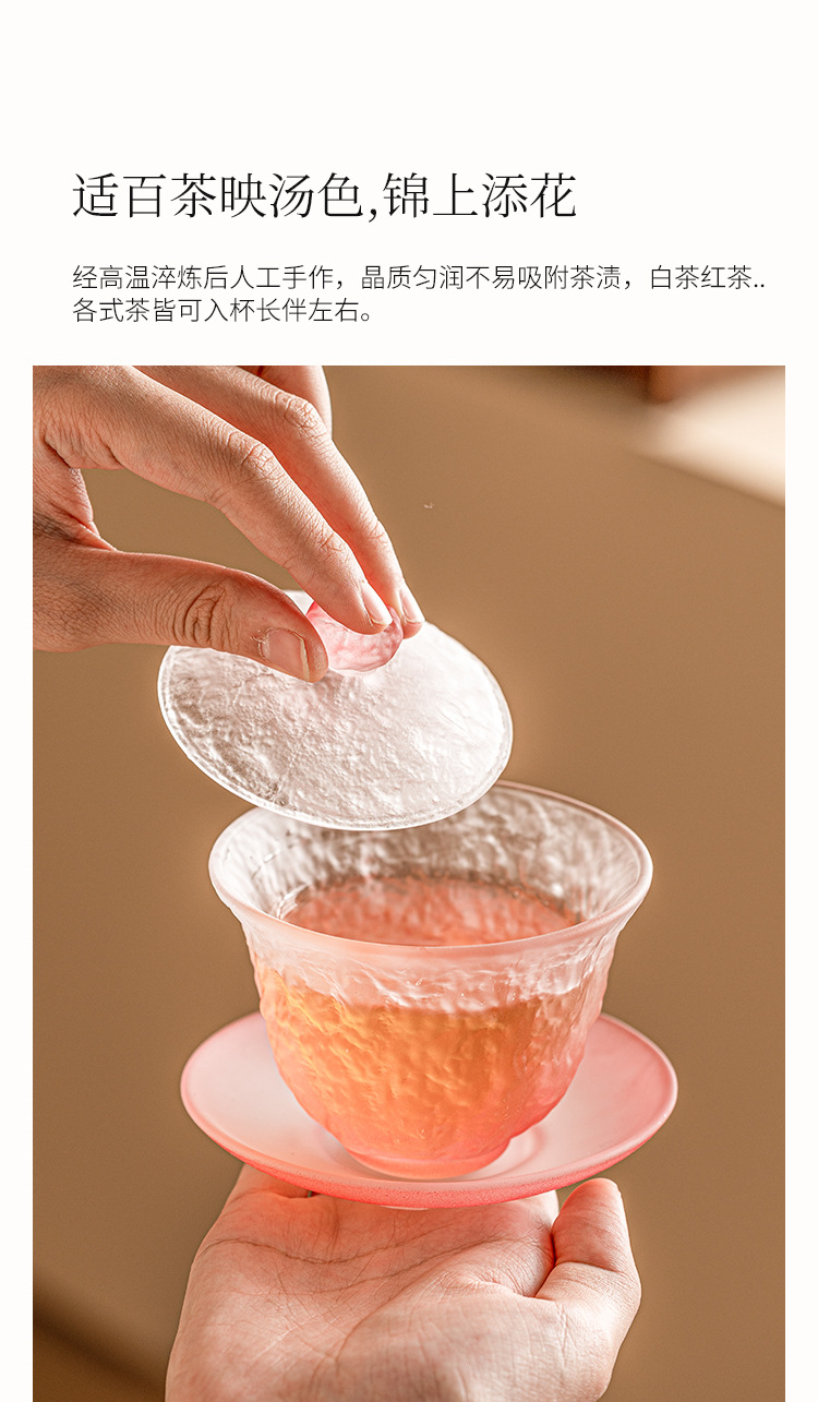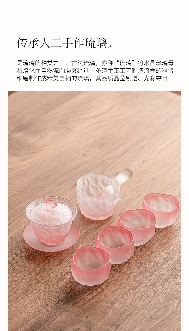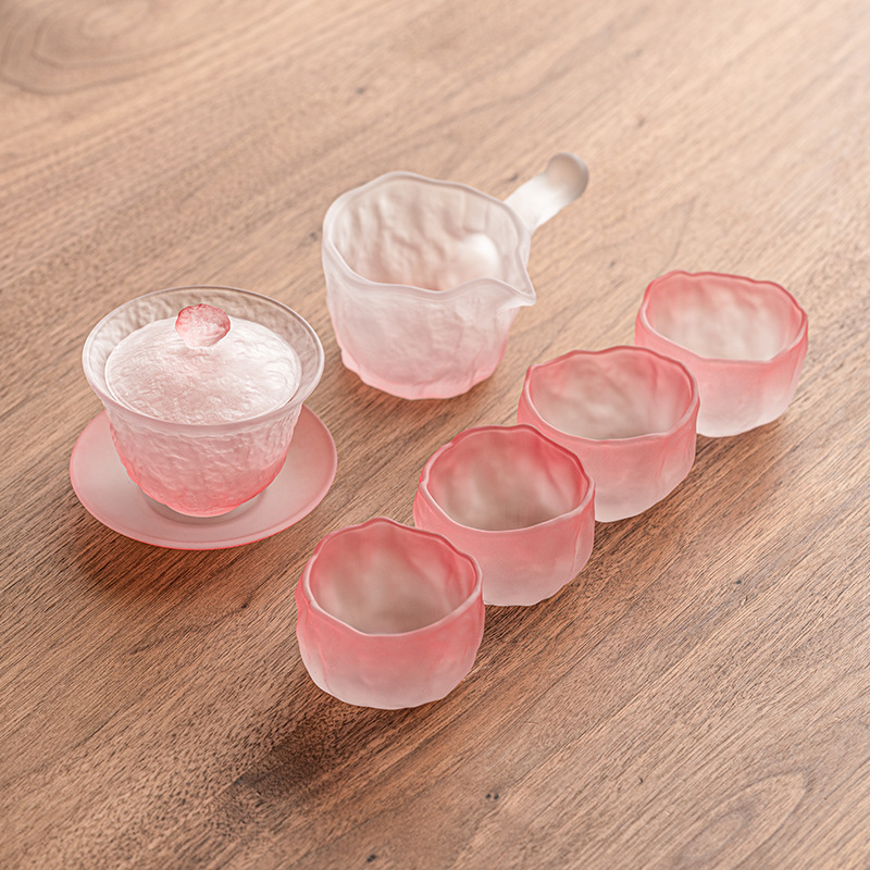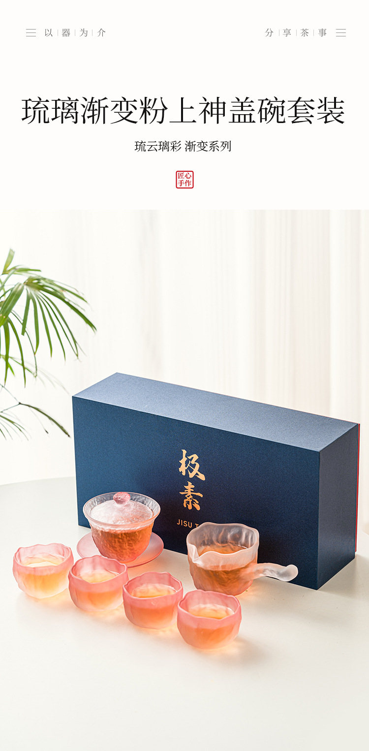 厂家上神琉璃功夫茶具套装渐变粉女士盖碗茶杯不烫手磨砂泡茶整套