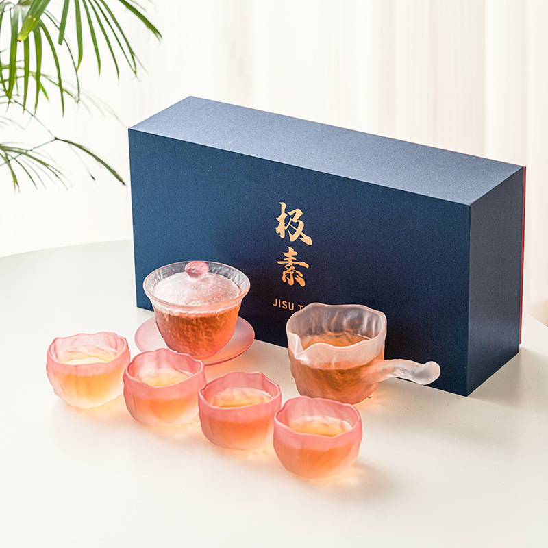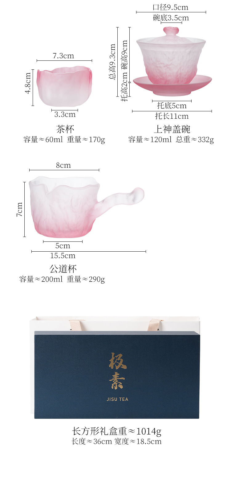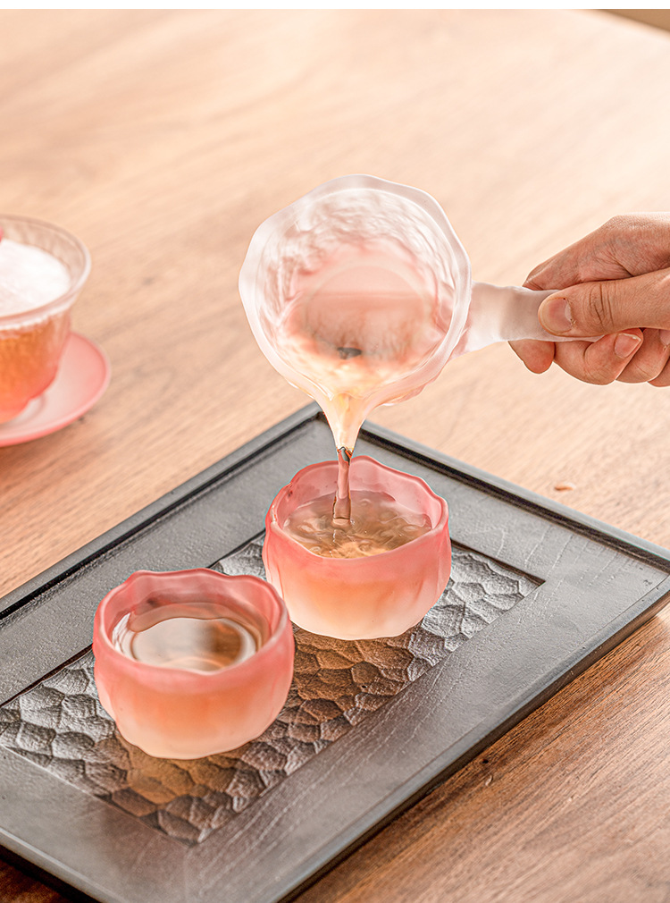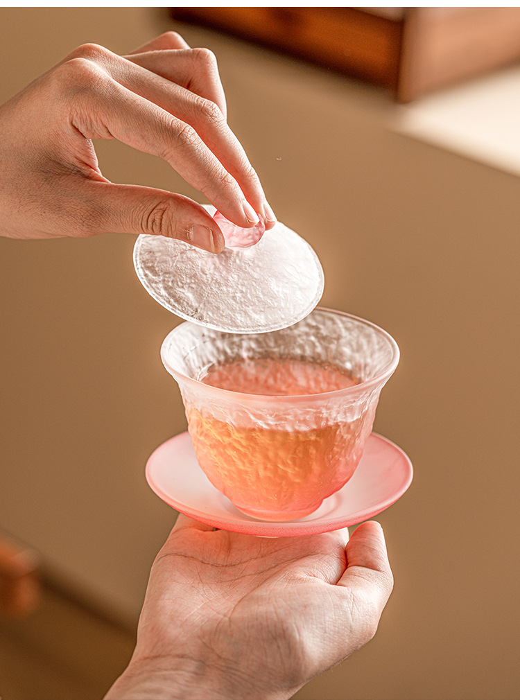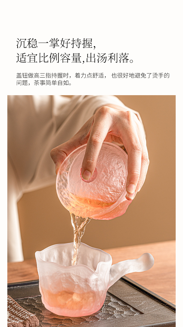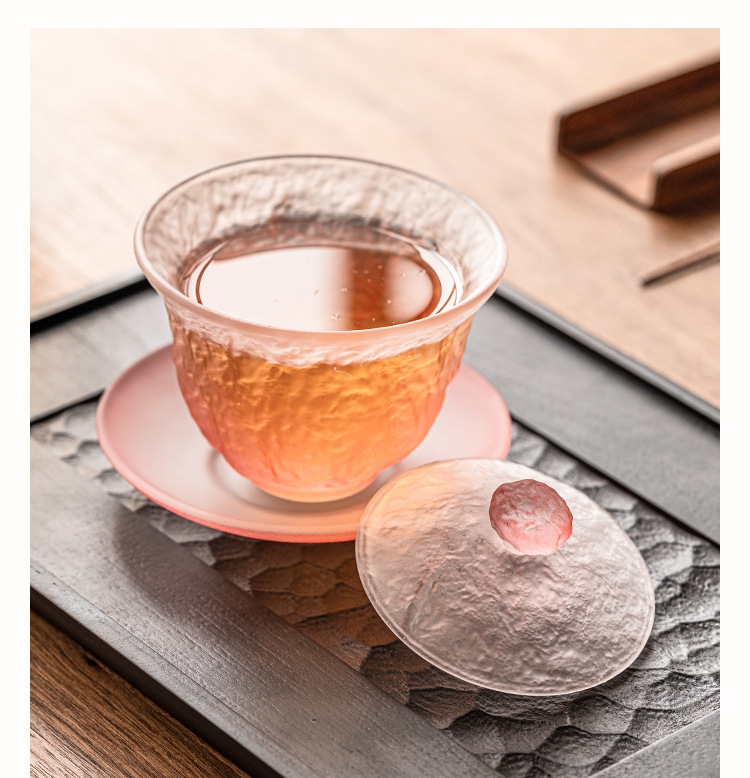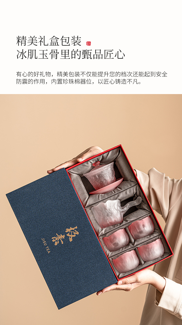 厂家上神琉璃功夫茶具套装渐变粉女士盖碗茶杯不烫手磨砂泡茶整套