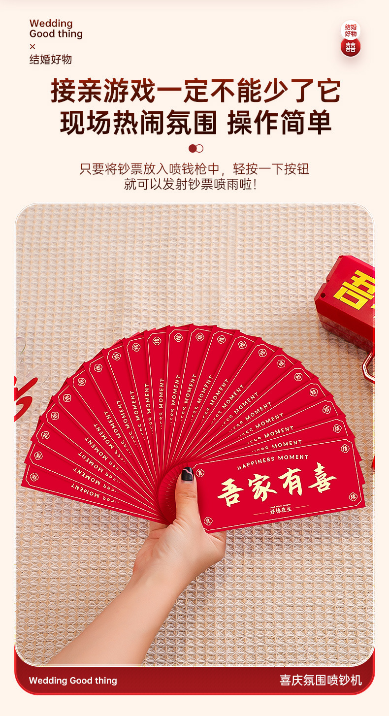 接亲游戏道具喷钱枪创意婚房拦门堵门婚礼氛围结婚伴娘拍照喷钞器