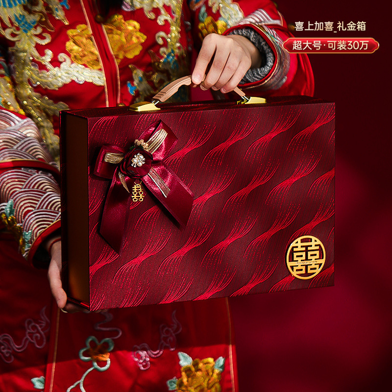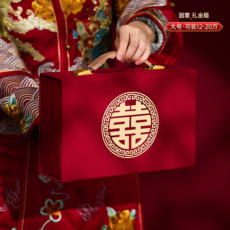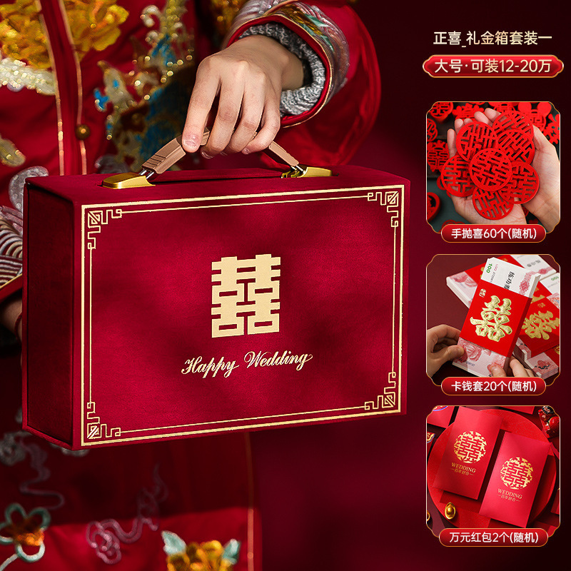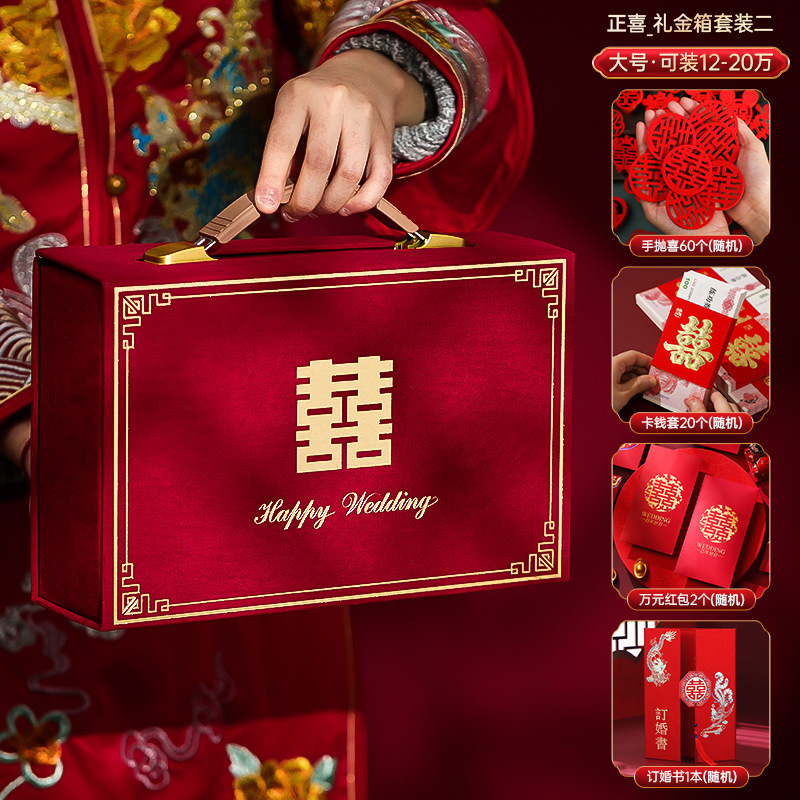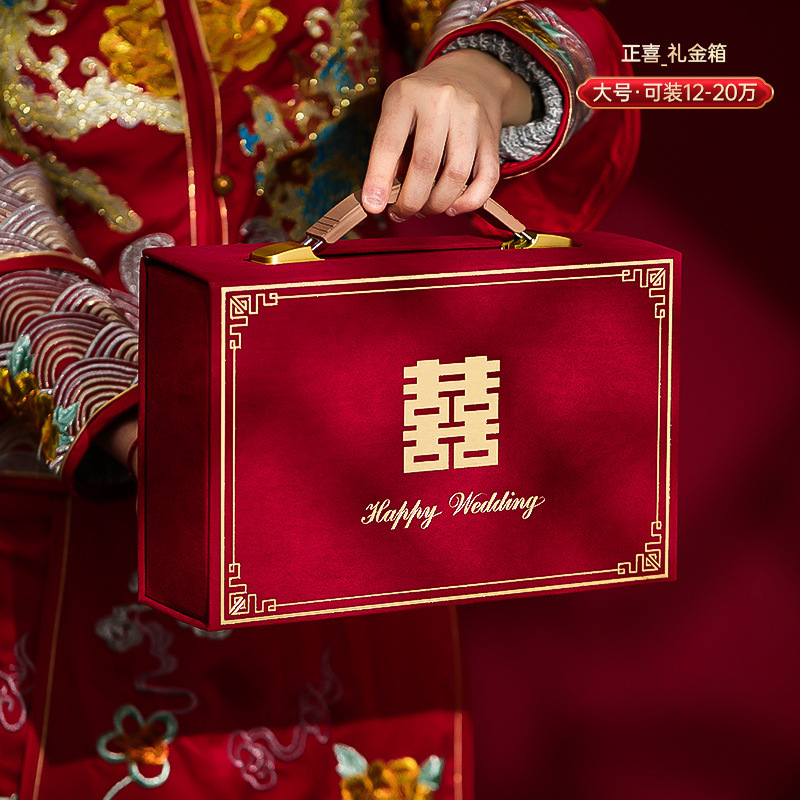 结婚订婚礼金盒聘金盒聘礼盒提亲现金礼盒五金礼金箱彩礼盒子10万