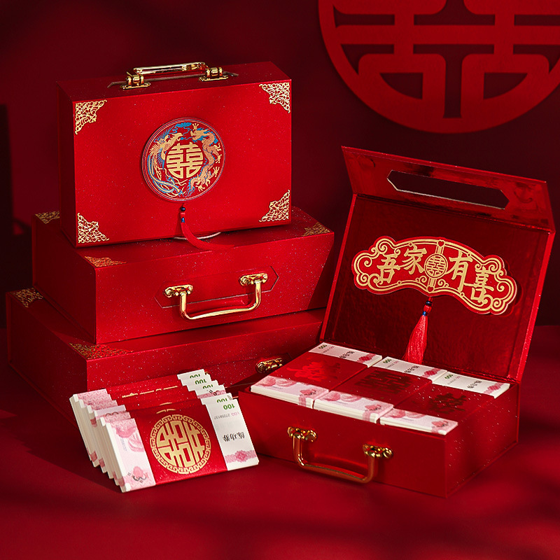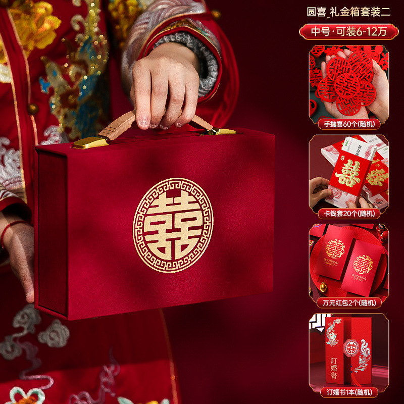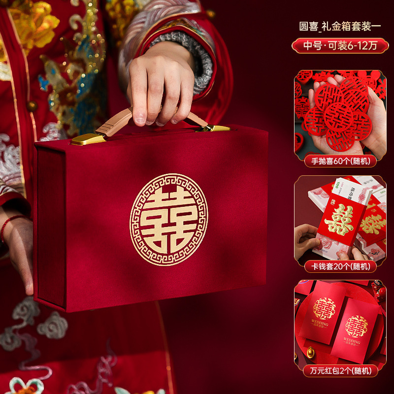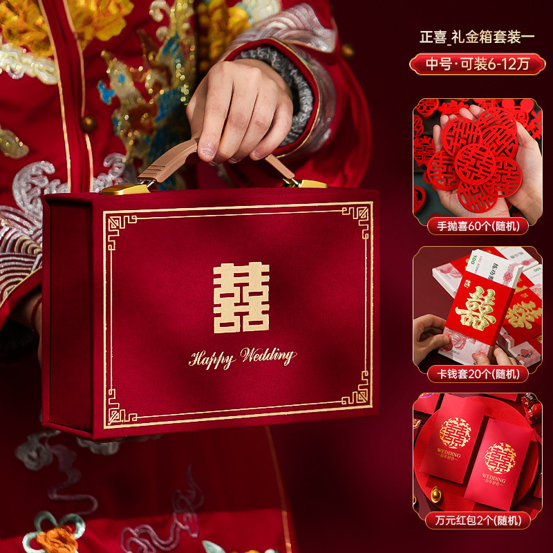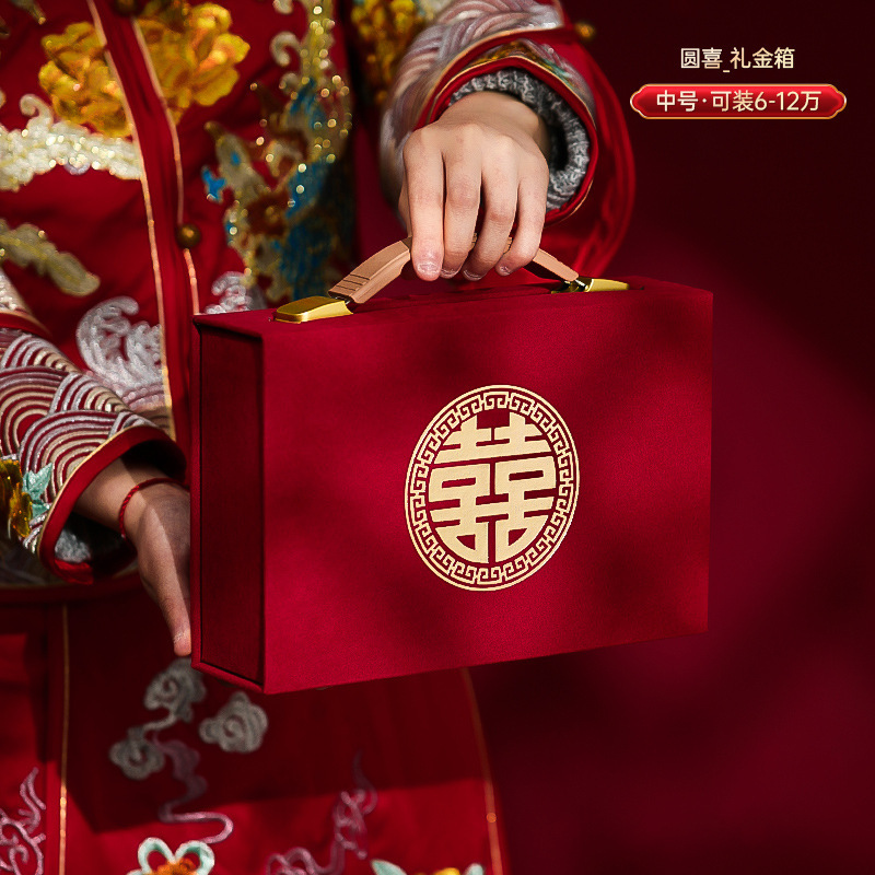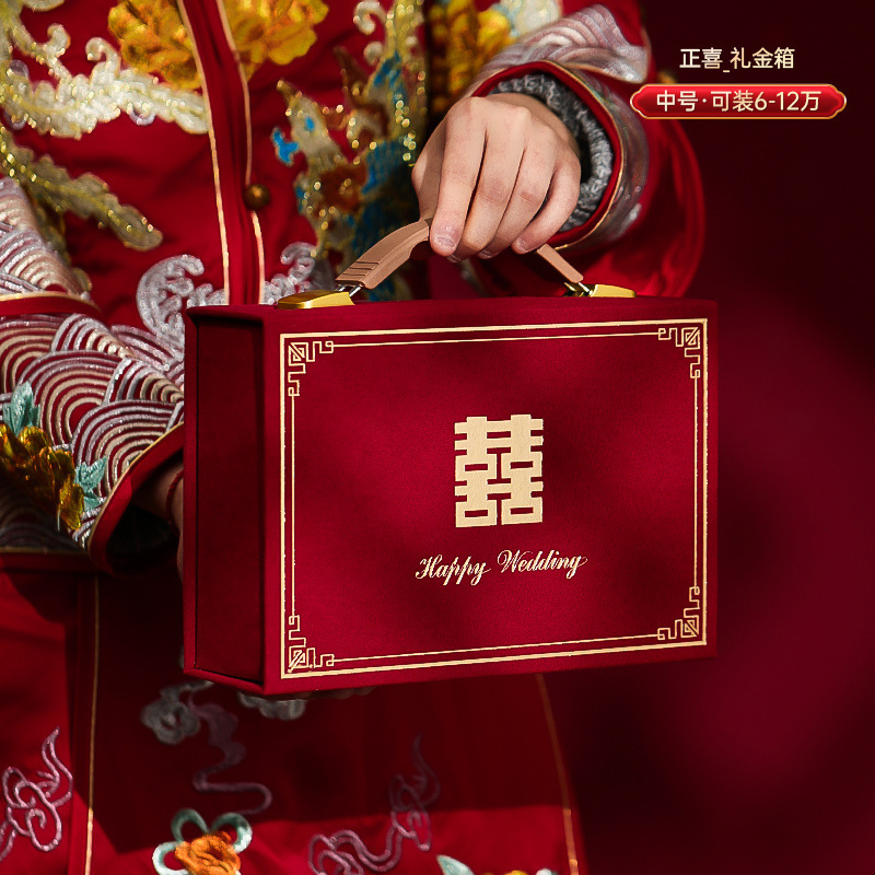 结婚订婚礼金盒聘金盒聘礼盒提亲现金礼盒五金礼金箱彩礼盒子10万