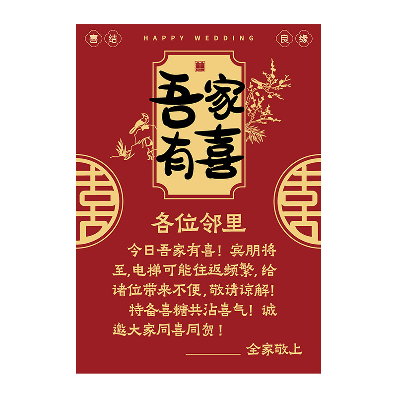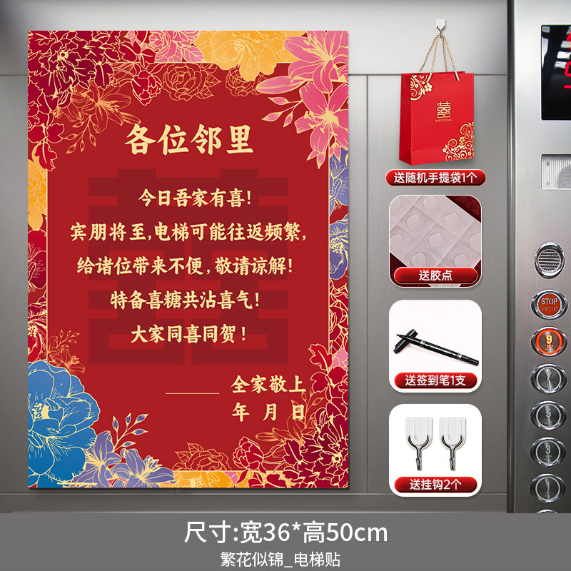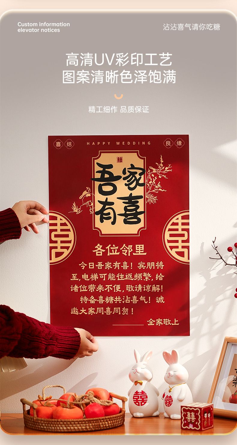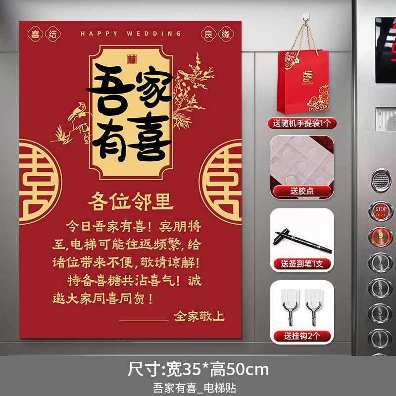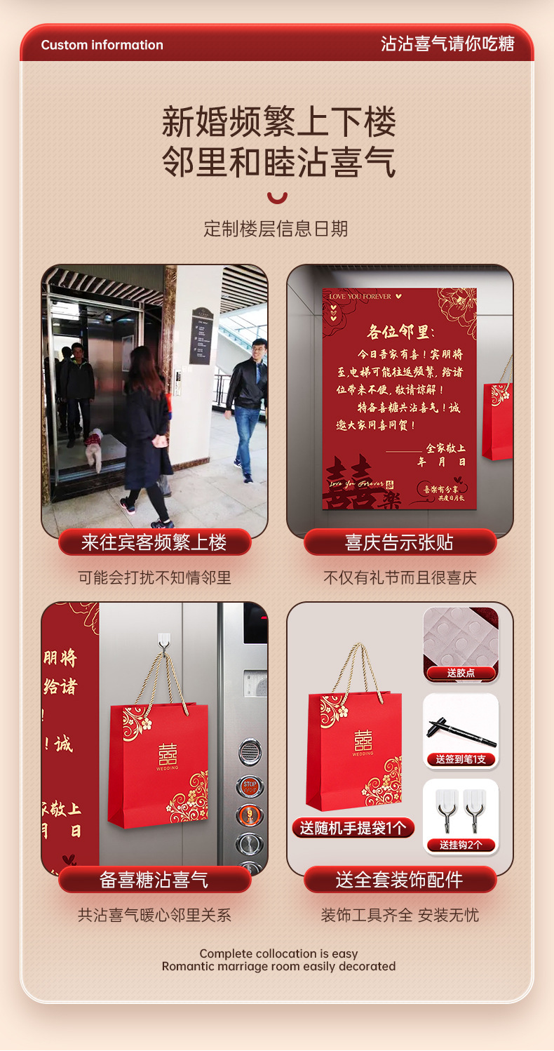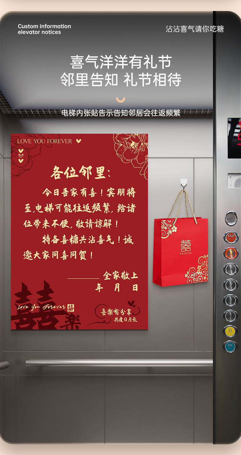 结婚电梯喜字告示贴订婚礼布置装饰专用囍字贴纸喜事婚庆用品大全