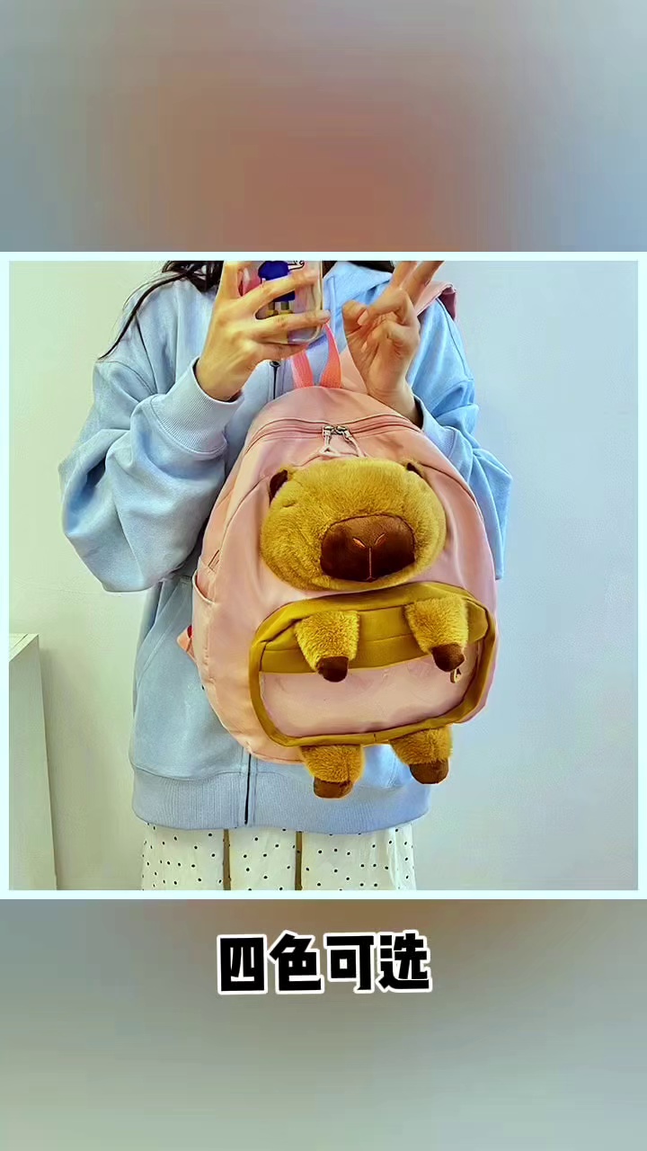 卡通儿童卡皮巴拉毛绒双肩包少女大容量可爱书包水豚百搭休闲背包