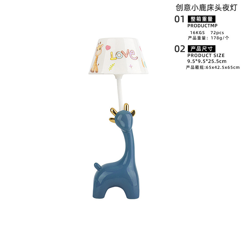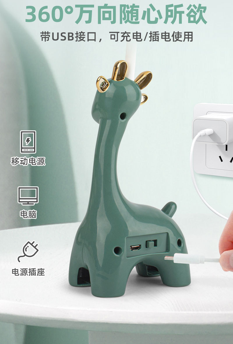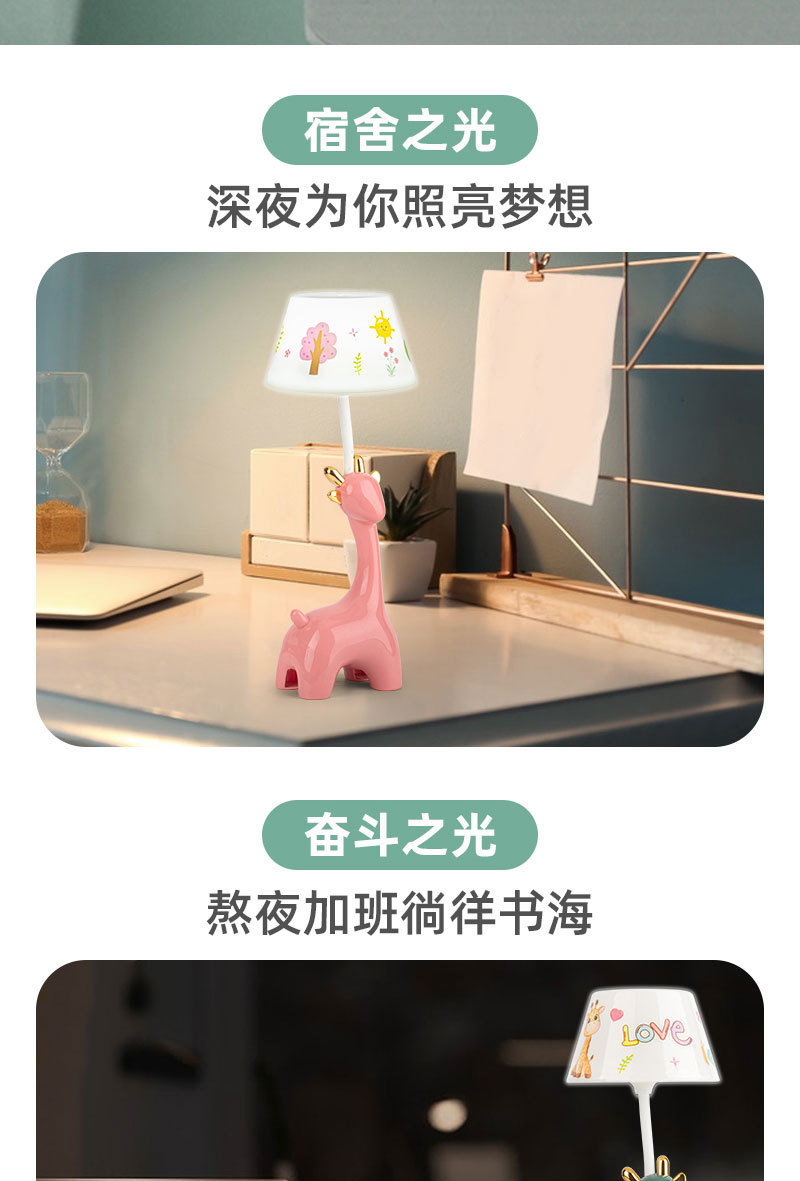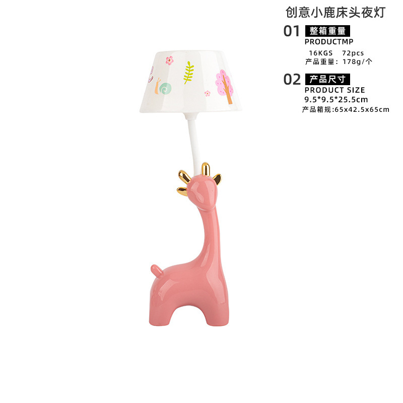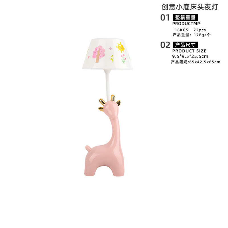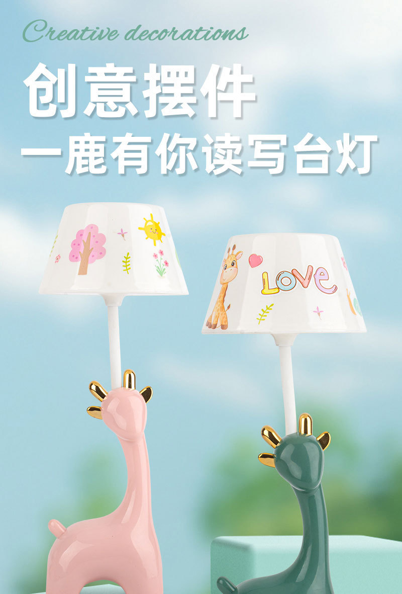 创意ing新款卡通小鹿桌面小夜灯亮度可调节可弯曲学生床头阅读灯