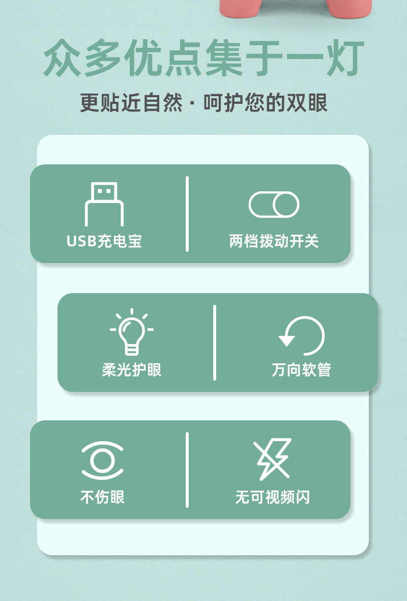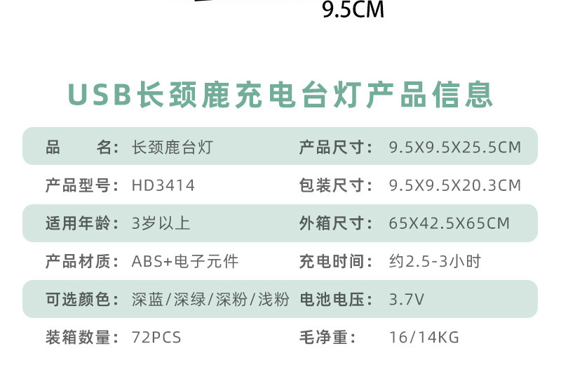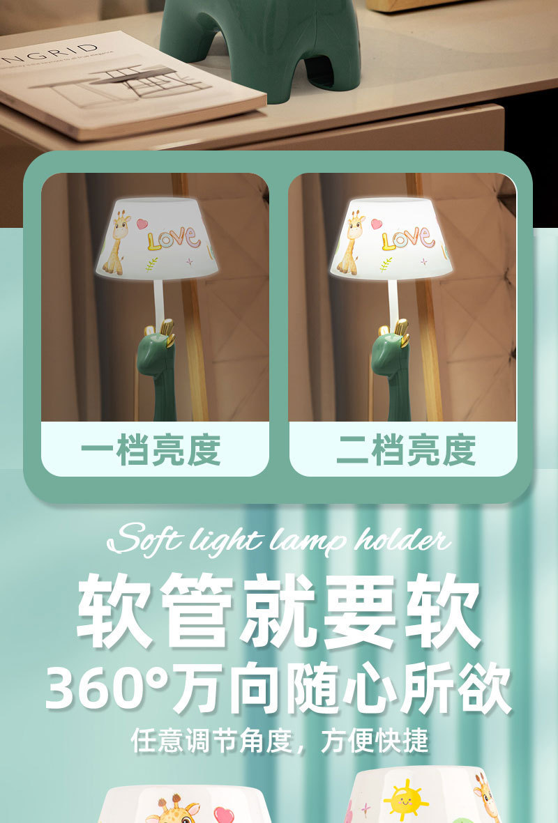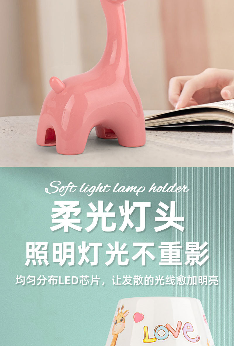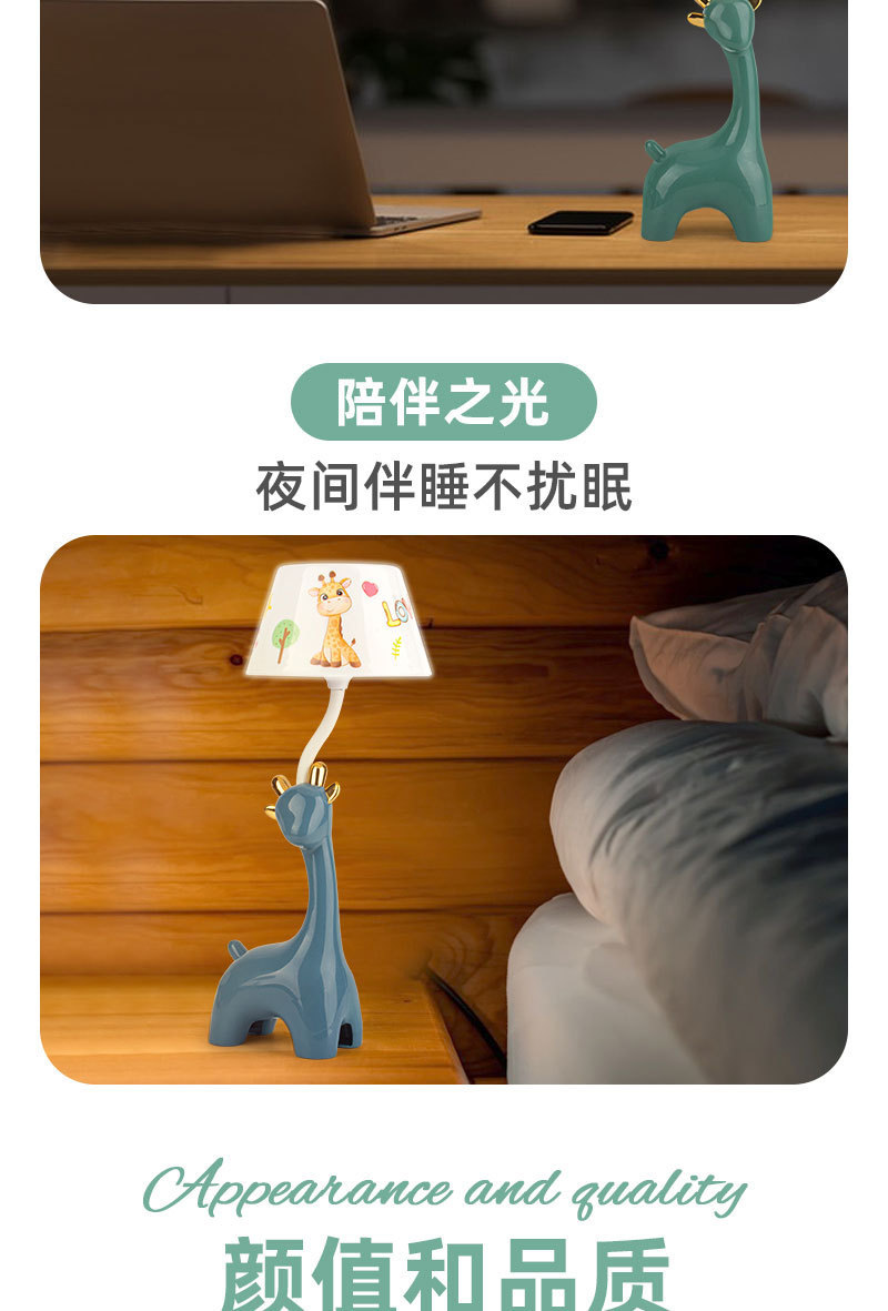 创意ing新款卡通小鹿桌面小夜灯亮度可调节可弯曲学生床头阅读灯
