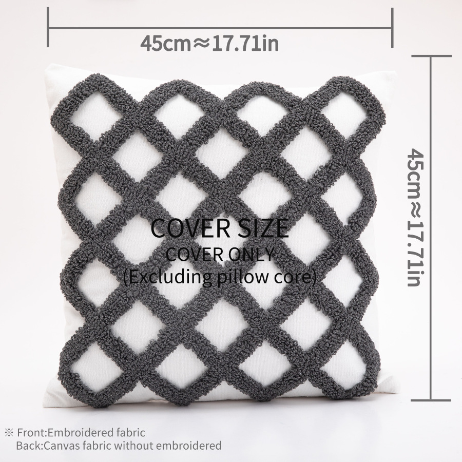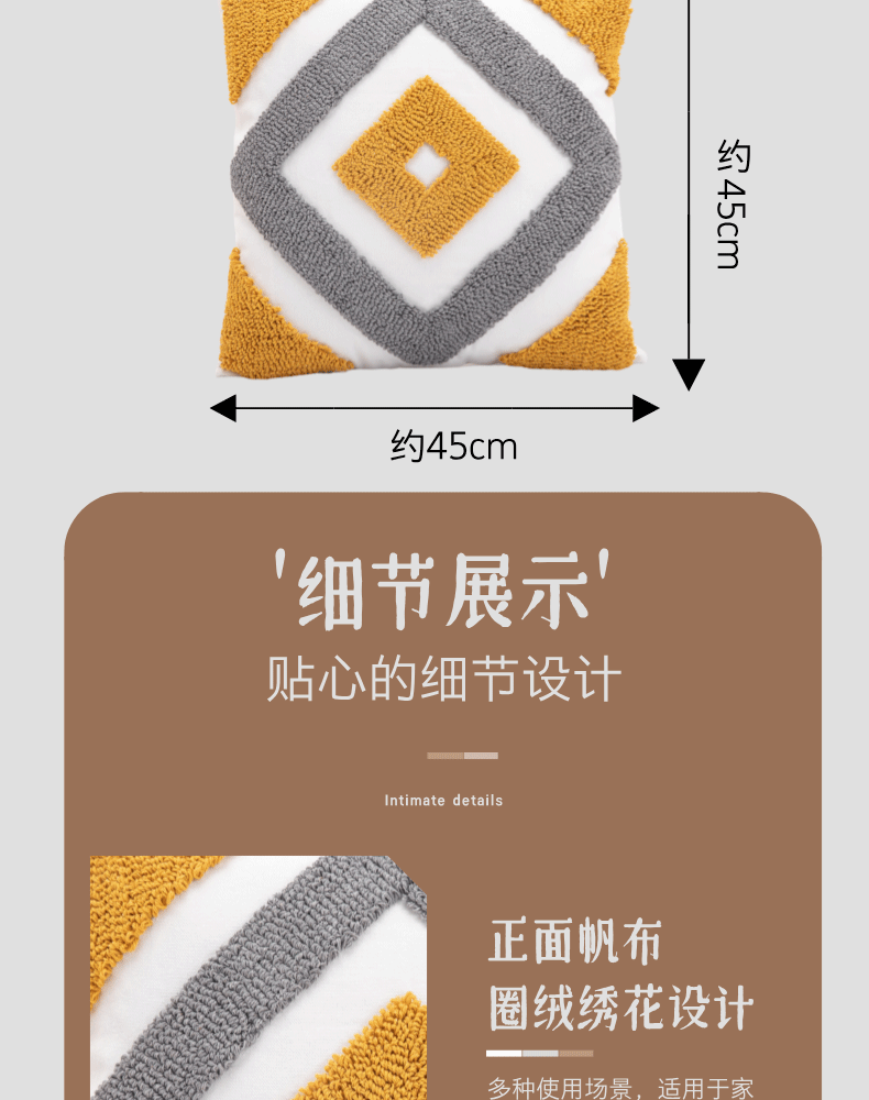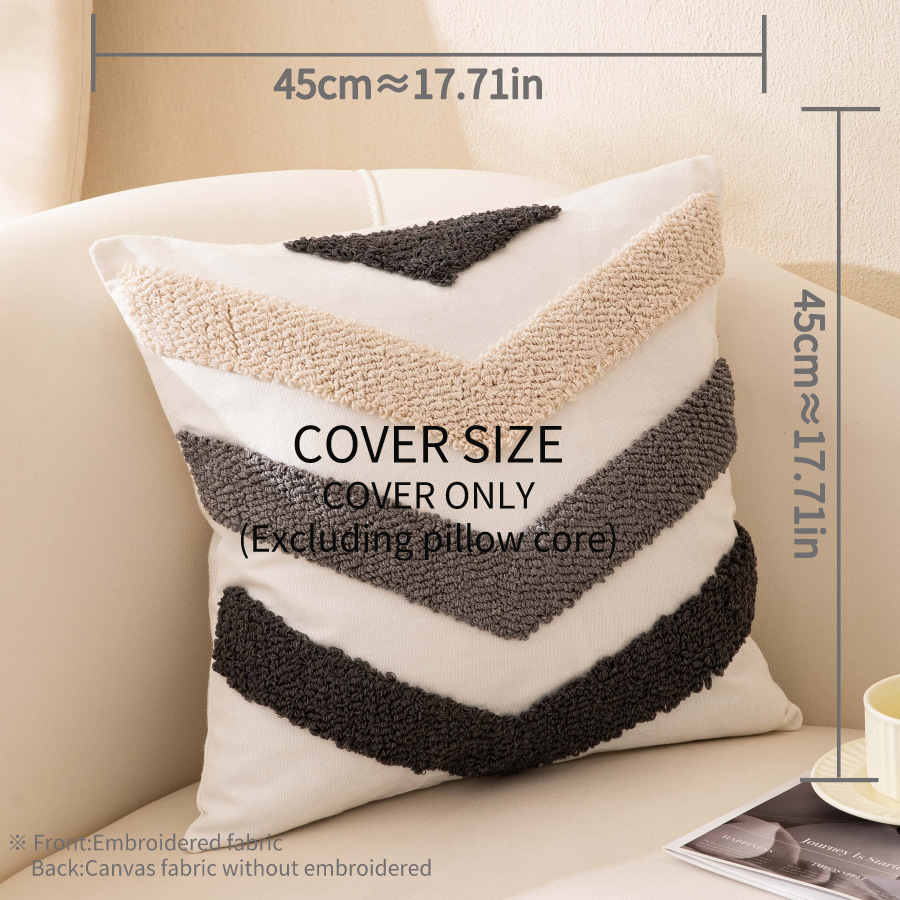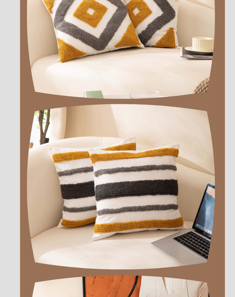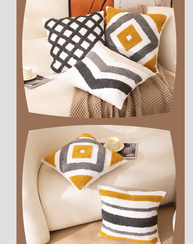 新款北欧风几何抽象单面圈绒簇绒绣花帆布抱枕套家居装饰靠垫套