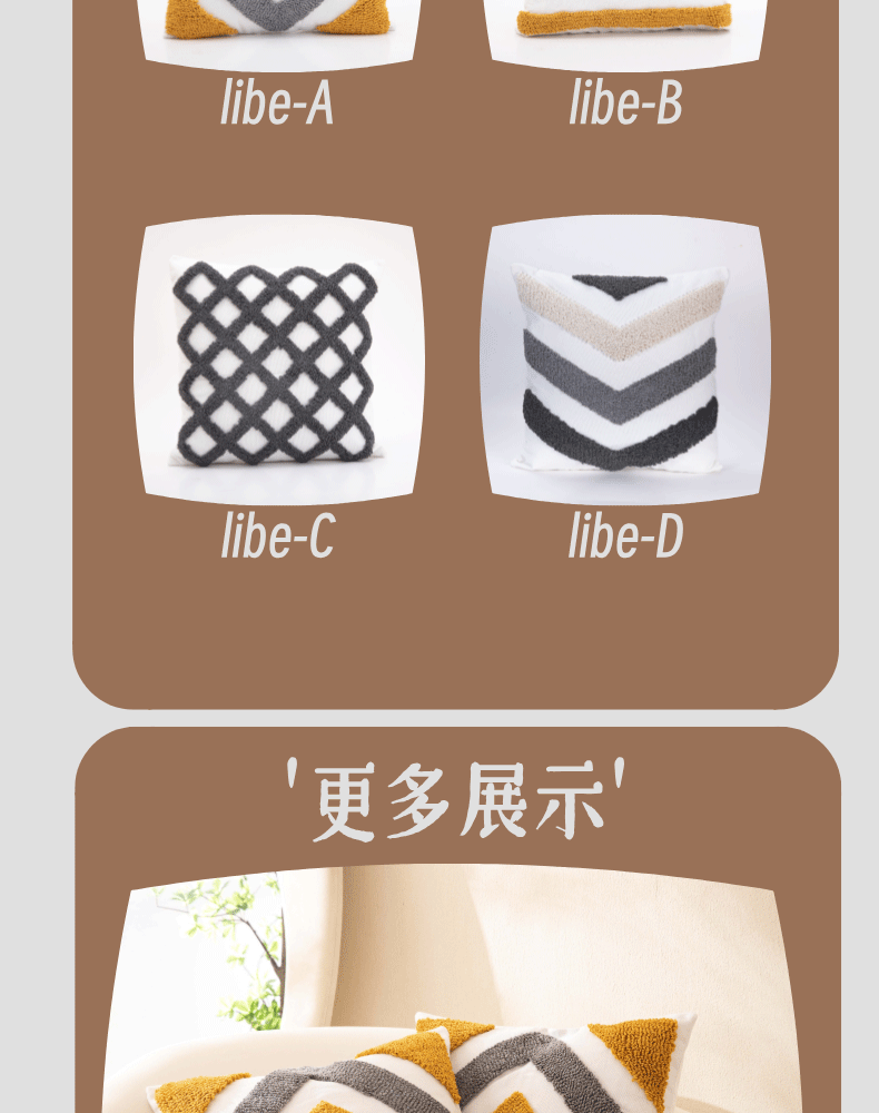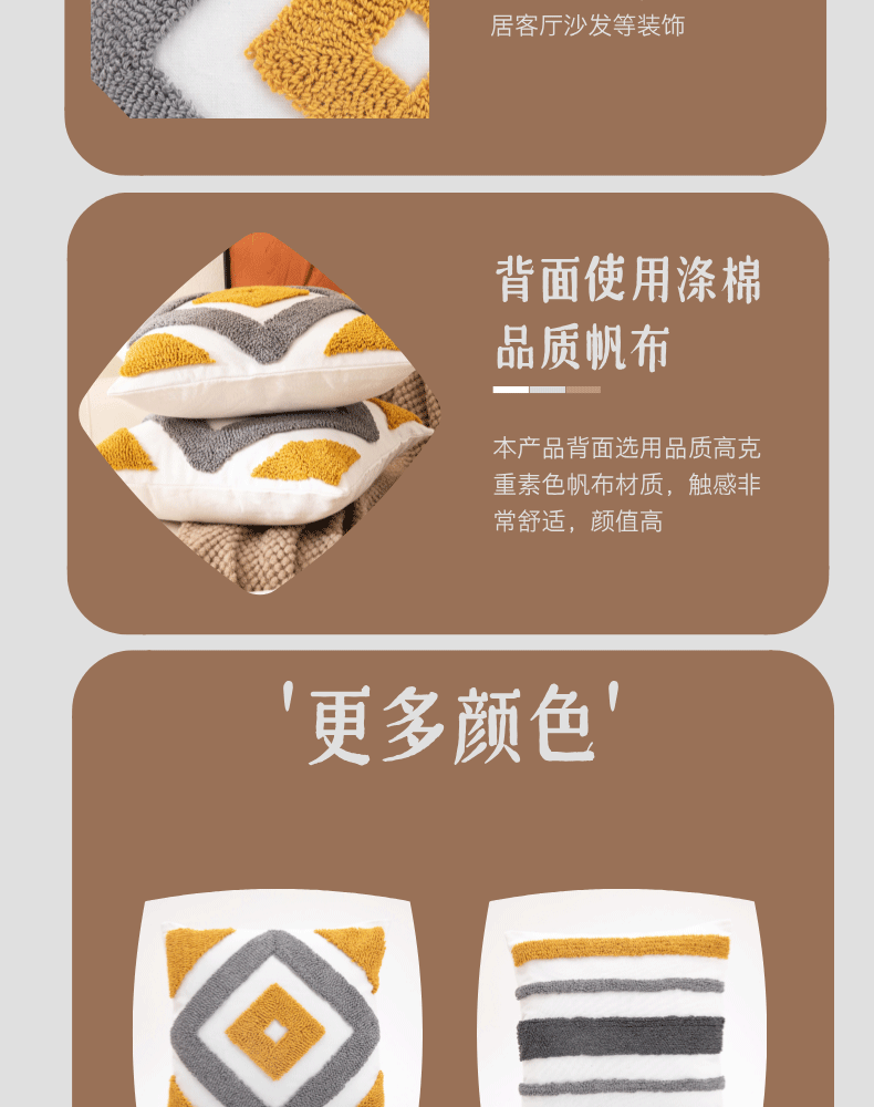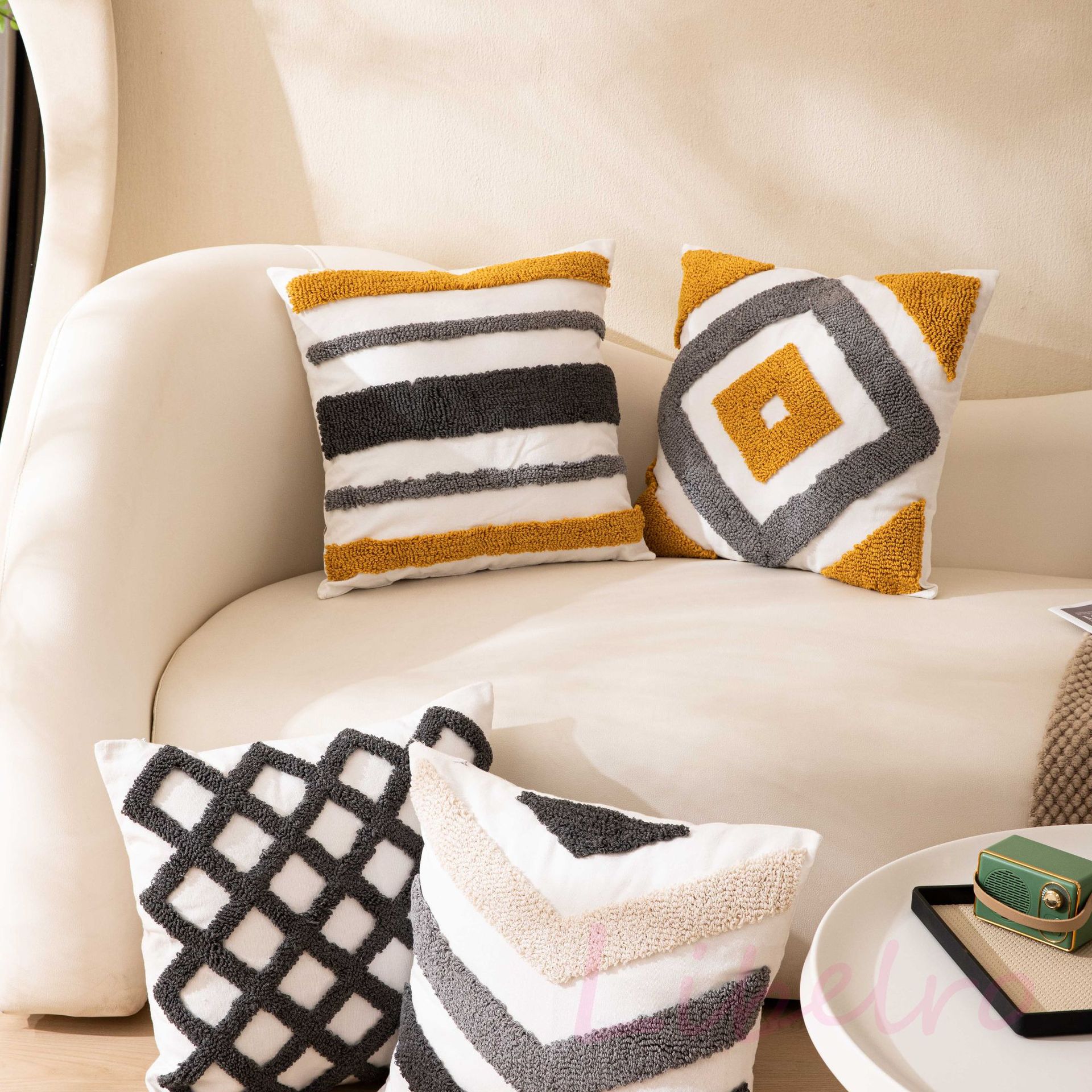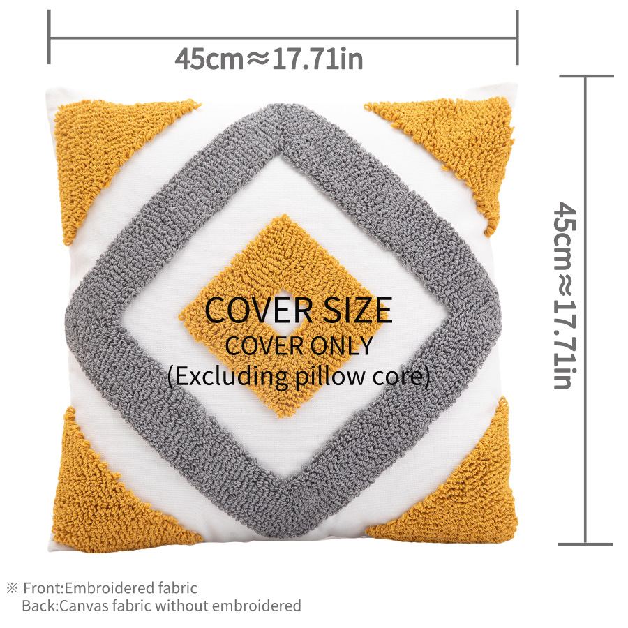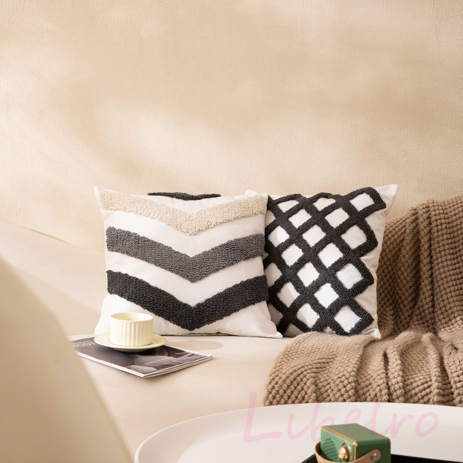 新款北欧风几何抽象单面圈绒簇绒绣花帆布抱枕套家居装饰靠垫套